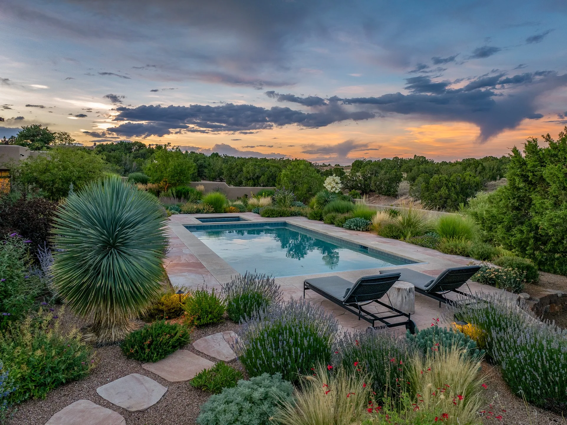 Rarely does a home achieve such a perfect balance of style, quality, natural beauty, and thoughtful designābut 20 Picacho Peak does so with ease. Set on five+ private acres off Wildhorse, this 4,800-square-foot masterpiece by Woods Design Builders offers 3 spacious, private bedrooms, five bathrooms, two dedicated offices, and exceptional indoor-outdoor living. From the primary suite and main living areas, panoramic Sangre de Cristo views create a constant backdrop, while the resort-style backyardāwith its stunning in-ground pool, spa, and lush landscapingāinvites year-round enjoyment.