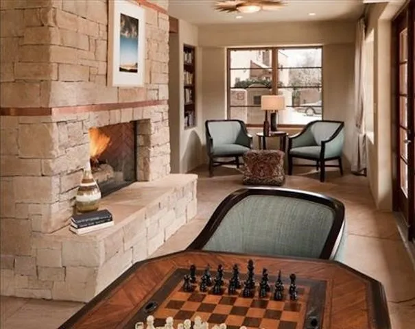 Unit 60, a spacious and stylish Montana model, spans 1,750 square feet across two levels. With 2 bedrooms, 2.5 bathrooms, and elegant Santa Fe-inspired architecture, the home features authentic touches like vigas, a cozy kiva fireplace, and hand-selected furnishings. The gourmet kitchen is fully equipped with premium appliances and cookware, ready for a quiet dinner at home or entertaining guests.