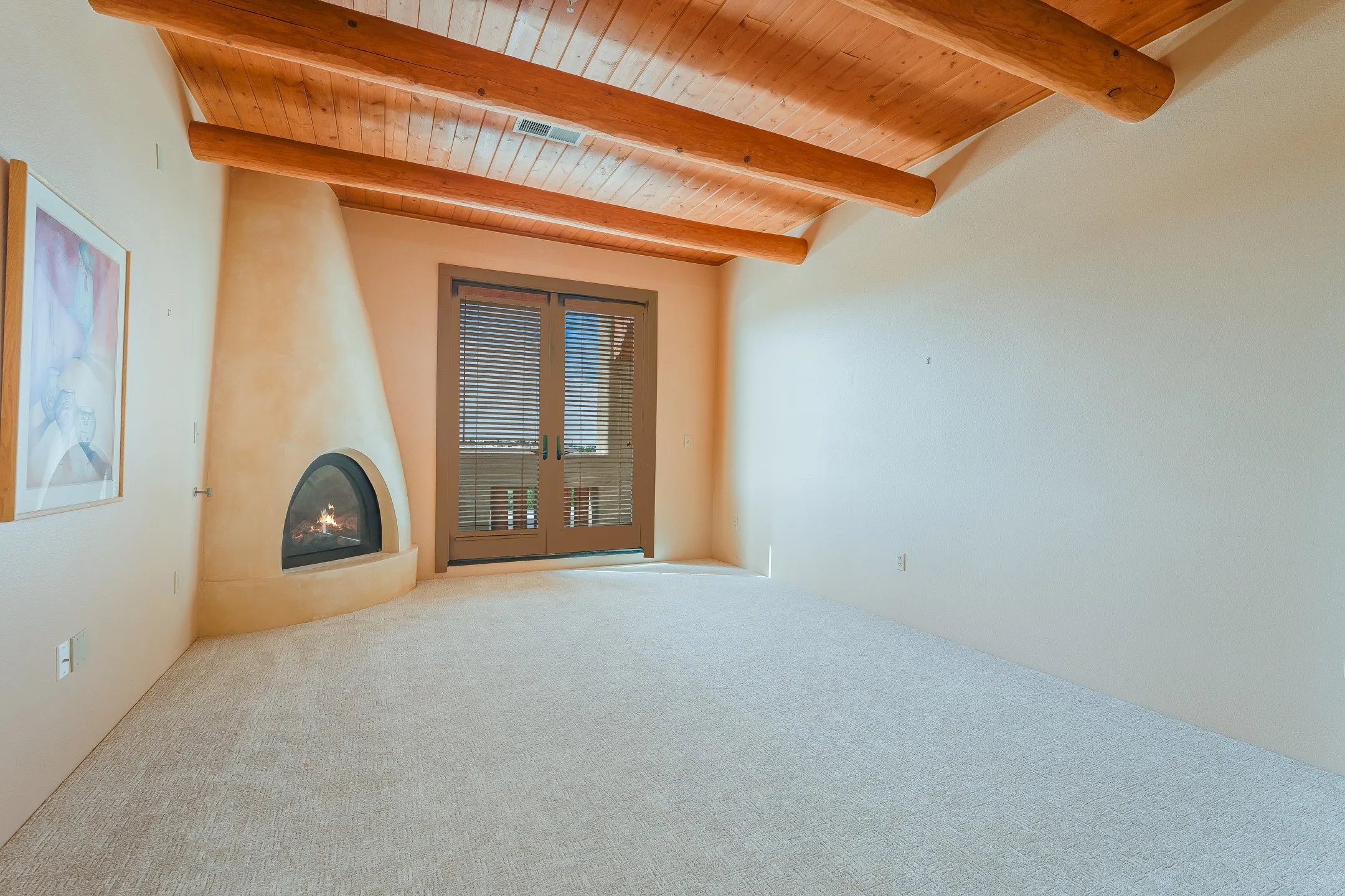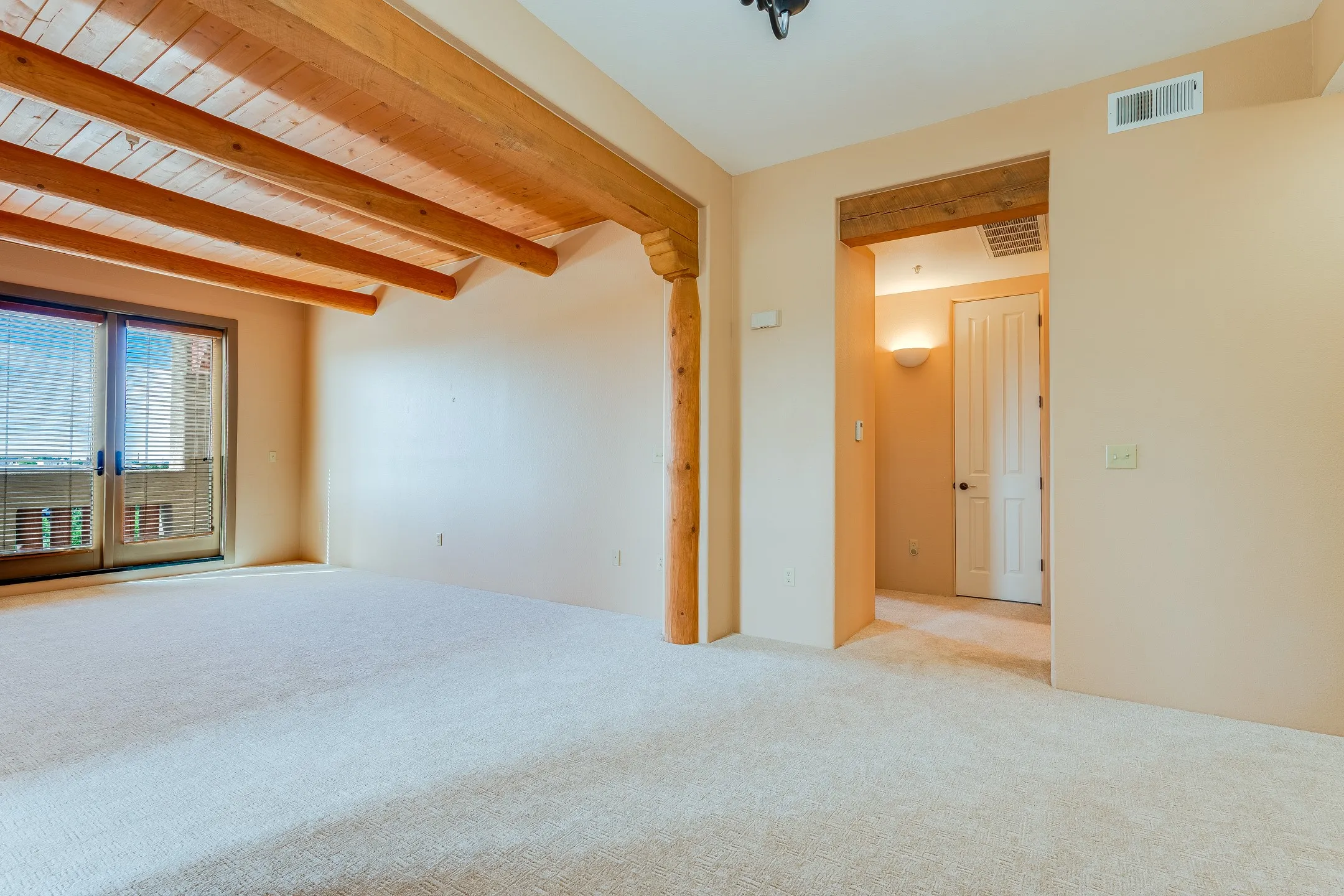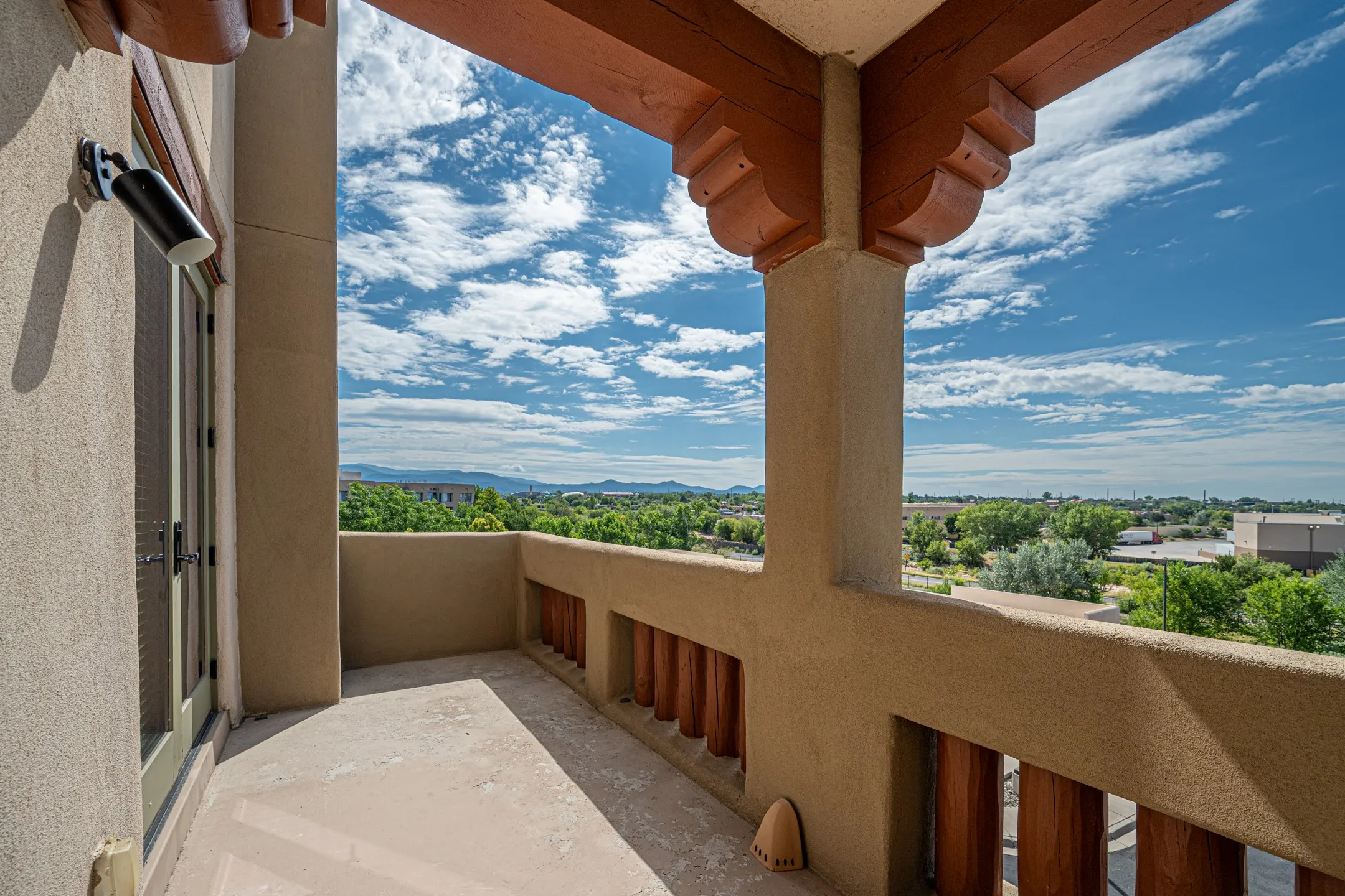 Southwest charm meets modern convenience in this beautifully maintained 2-bedroom, 2-bath corner condo in Santa Feās sought-after gated Alameda community. This light-filled second-floor unit offers both sunrise and sunset mountain views from multiple windows and a private balcony. Classic Pueblo-style detailsāvigas, corbels, plank ceilings, and a cozy gas-fired Kiva fireplaceācreate a warm and inviting ambiance. The spacious open-concept living and dining area flows into a well-appointed kitchen with granite countertops, wood cabinetry, and pantry storage. Recent updates include new carpet in the bedrooms, complementing the tile flooring throughout the main living spaces. The primary suite boasts generous closet space and an ensuite bath, while the guest bedroom and bath provide comfortable accommodations for family or visitors. A detached one-car garage, a separate storage room, and in-unit laundry add everyday convenience. Enjoy resort-style amenities including a fitness center, outdoor pool, clubhouse, and vibrant community eventsāall just minutes from shopping, dining, and major roadways.