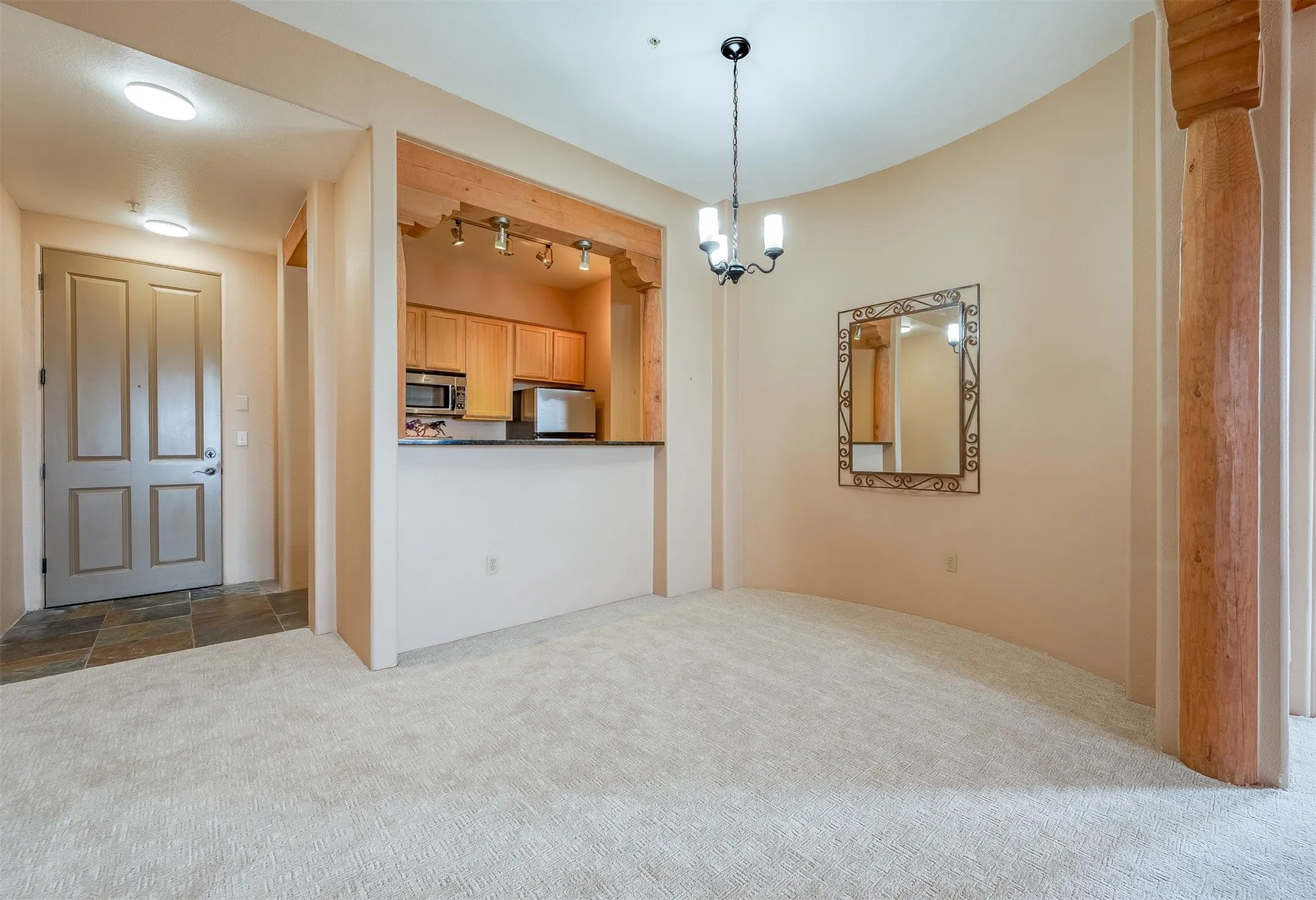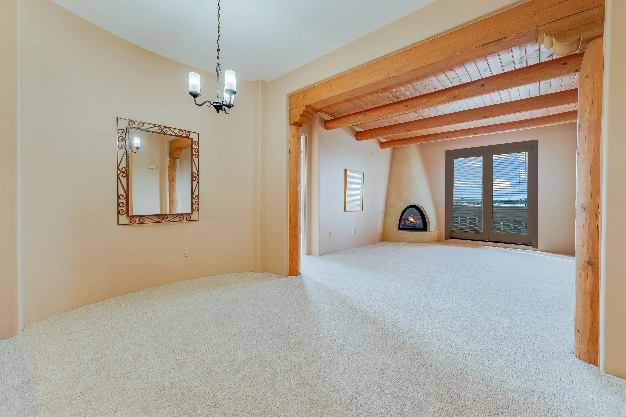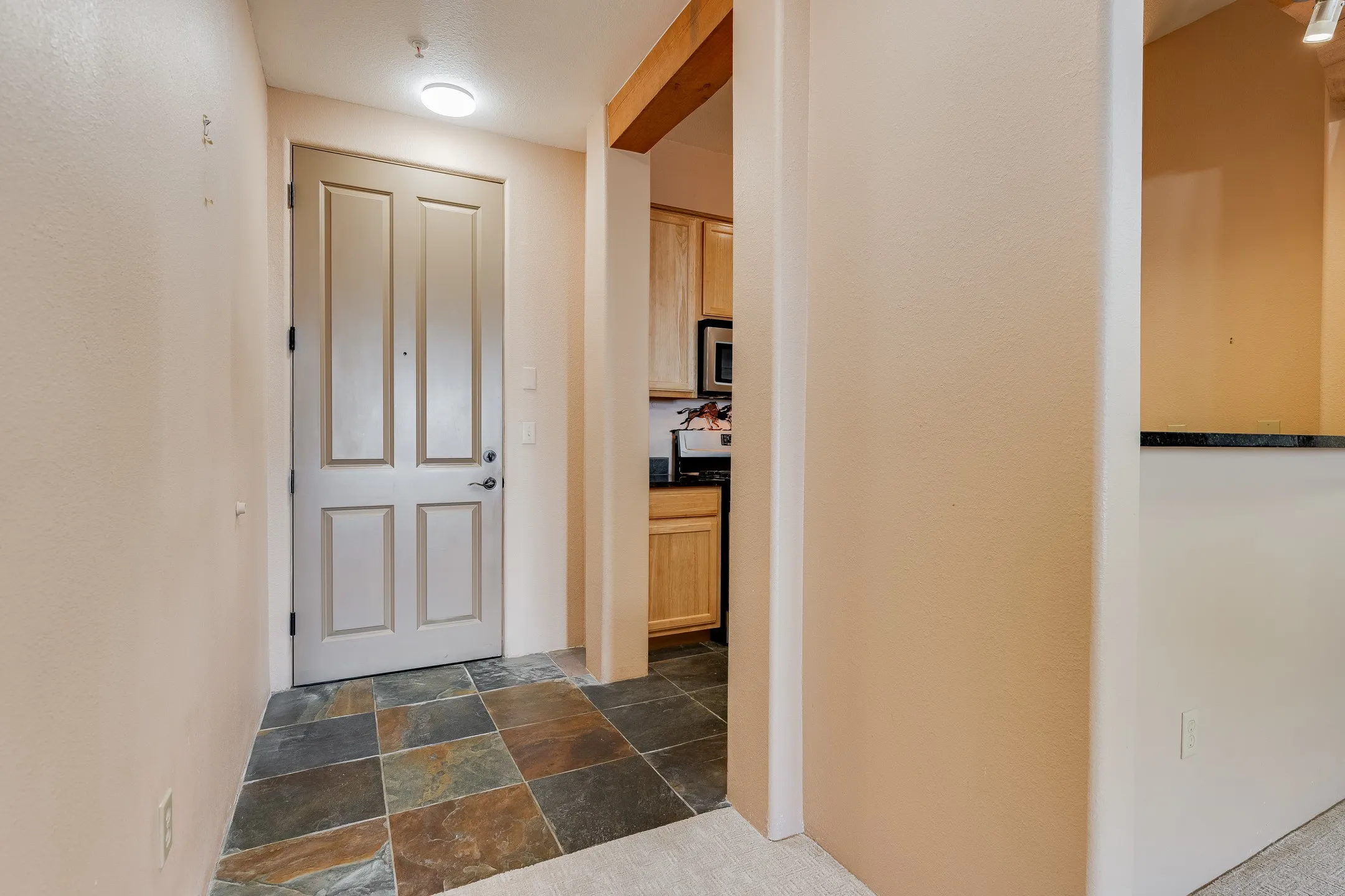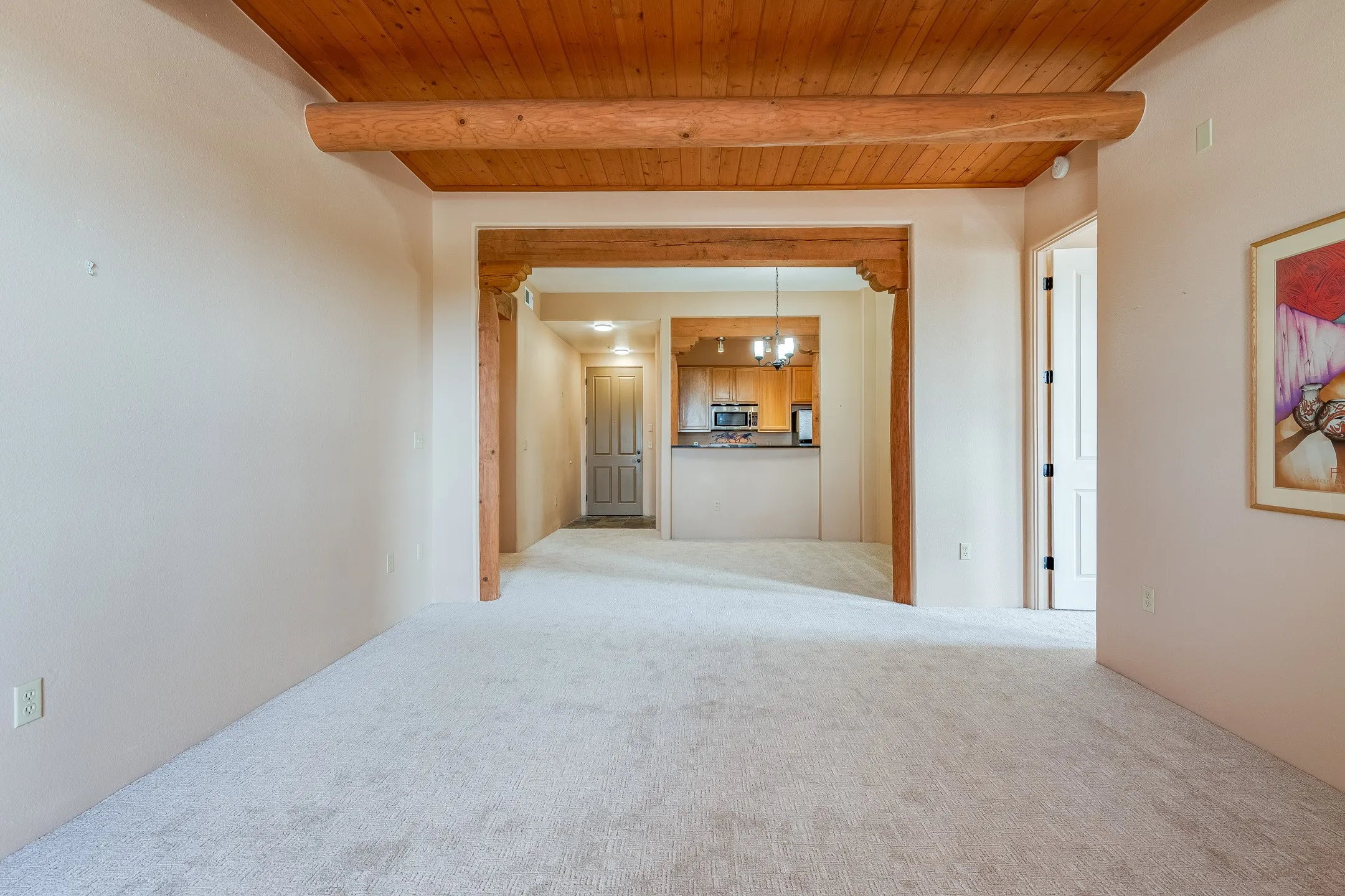 Southwest charm meets modern convenience in this beautifully maintained 2-bedroom, 2-bath corner condo in Santa Feās sought-after gated Alameda community. This light-filled second-floor unit offers both sunrise and sunset mountain views from multiple windows and a private balcony. Classic Pueblo-style detailsāvigas, corbels, plank ceilings, and a cozy gas-fired Kiva fireplaceācreate a warm and inviting ambiance. The spacious open-concept living and dining area flows into a well-appointed kitchen with granite countertops, wood cabinetry, and pantry storage. Recent updates include new carpet in the bedrooms, complementing the tile flooring throughout the main living spaces. The primary suite boasts generous closet space and an ensuite bath, while the guest bedroom and bath provide comfortable accommodations for family or visitors. A detached one-car garage, a separate storage room, and in-unit laundry add everyday convenience. Enjoy resort-style amenities including a fitness center, outdoor pool, clubhouse, and vibrant community eventsāall just minutes from shopping, dining, and major roadways.