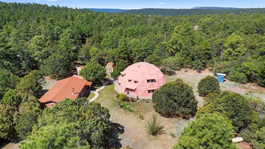 UNLIKE ANYTHING ELSE IN THE EAST MOUNTAINS, THIS EXPANSIVE TIJERAS HORSE PROPERTY IS A WORLD OF ITS OWN. Tucked into over four wooded and meadowed acres, it offers a rare blend of space, privacy, and versatility with three distinct residences. The 2-story dome house features exposed beams, tile floors, two fireplaces, and a charming country kitchen. Imagine sitting out on the open patio with 360 degrees of nature. The cozy casita is a perfect studio or guest house, while the spacious cottageāwith its open layout, concrete floors, wood stove, and walk-in closetāadds even more flexibility for multi-generational living. A pole barn, detached garage, workshop, plenty of room of animals and toys. Furniture and tools conveyābring your vision and make this one your perfect mountain retreat!