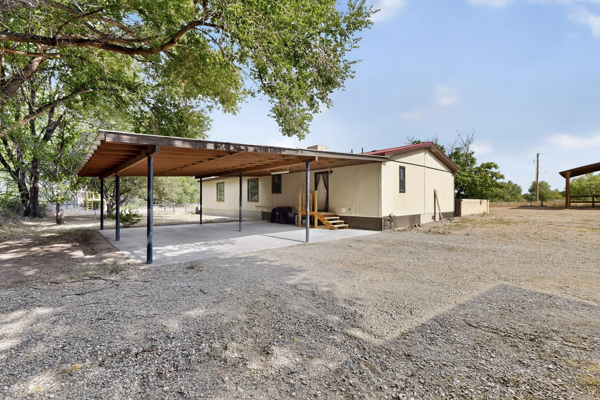 A drive down a private drive will take you to a home that not only offers privacy but offers much more. The home appears to be set in the middle of the lot, on the south side there appears to be a corral and a stable. This lot makes Horse back riding something that could be done daily, down at least two dirt roads. On the north side of the house is a two car carport that is accessed from the laundry room. On the east side is vacant land that could be used for many things, the current owners made a zip line for the kids. The west side of the lot offers a large two car garage. Headed back to the front of the house, the north side, is a small enclosed courtyard, currently filled with kids play equipment but could easily be landscaped as a courtyard. The entrance from this front door opens to a home with a large open concept floor plan. A walk through the formal living room, takes you to the kitchen, with the nice cabinets, and butcher block counter tops. Throughout the house one will be walking on vinyl, wood like, plank flooring, that interlock together, providing an easy floor to maintain. From the kitchen , there is a dining room, and family room. On this same side of the home, to the right are two bedrooms and a bath. Headed back to the kitchen, passed a door, is the laundry room, and an exit door that leads to the carport. From the kitchen to the living room, a quick turn to the right is the entrance to the owner suite, complete with a full garden tub, and separate shower. In short, this house offers all directions of varied opportunities. This house is move in ready and filled with everything a person would want in a home