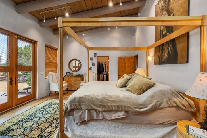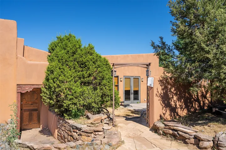 Price Improved below appraisal!!! This home has gorgeous land and NO HOA fees for restrictions!! Lovely Santa Fe estate blends traditional adobe charm with modern comfort. A coyote fence outlines the entry and welcomes you to a light-filled sunroom that seamlessly connects indoor and outdoor spaces. The original adobe home features classic Santa Fe detailsāexposed vigas, rough-sawn ceilings, a kiva fireplace, banco seating, and brick floors. A 2004 addition introduced a barrel-ceiling hallway linking a 5-bedroom, 4-bath layout. The flexible office/5th bedroom with its own bath and fireplace opens to a private courtyard. The primary suite offers a spa-like retreat with dual vanities, a corner tub, and a walk-in closet. Bright, tastefully tiled bathrooms add charm throughout. Outside, mature trees, xeriscaping, and irrigated courtyards provide serene spaces for gathering, gardening, or sunset views. With easy access to town, this home is both a tranquil retreat and a convenient base for enjoying Santa Fe. Your animals are welcome!!!!