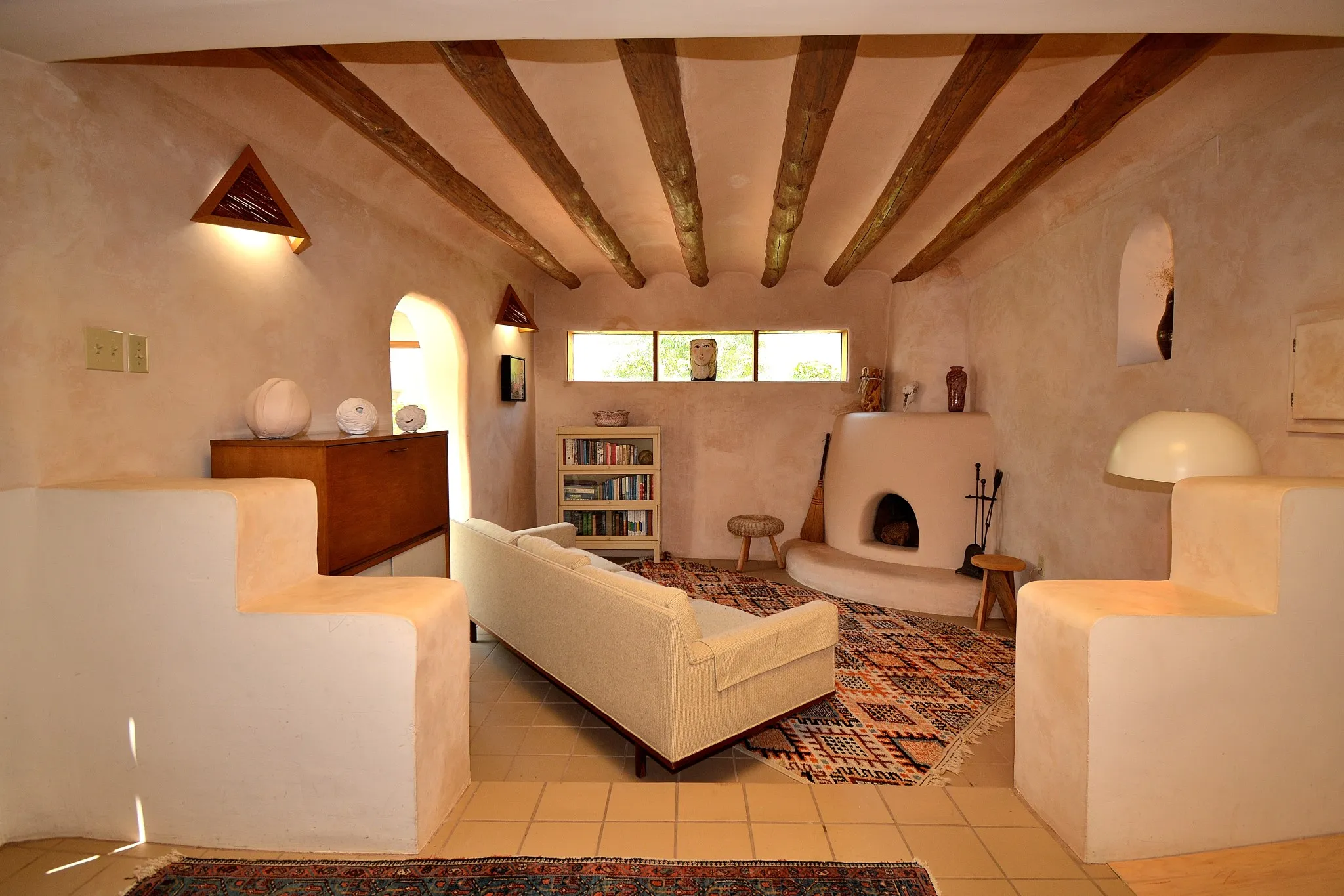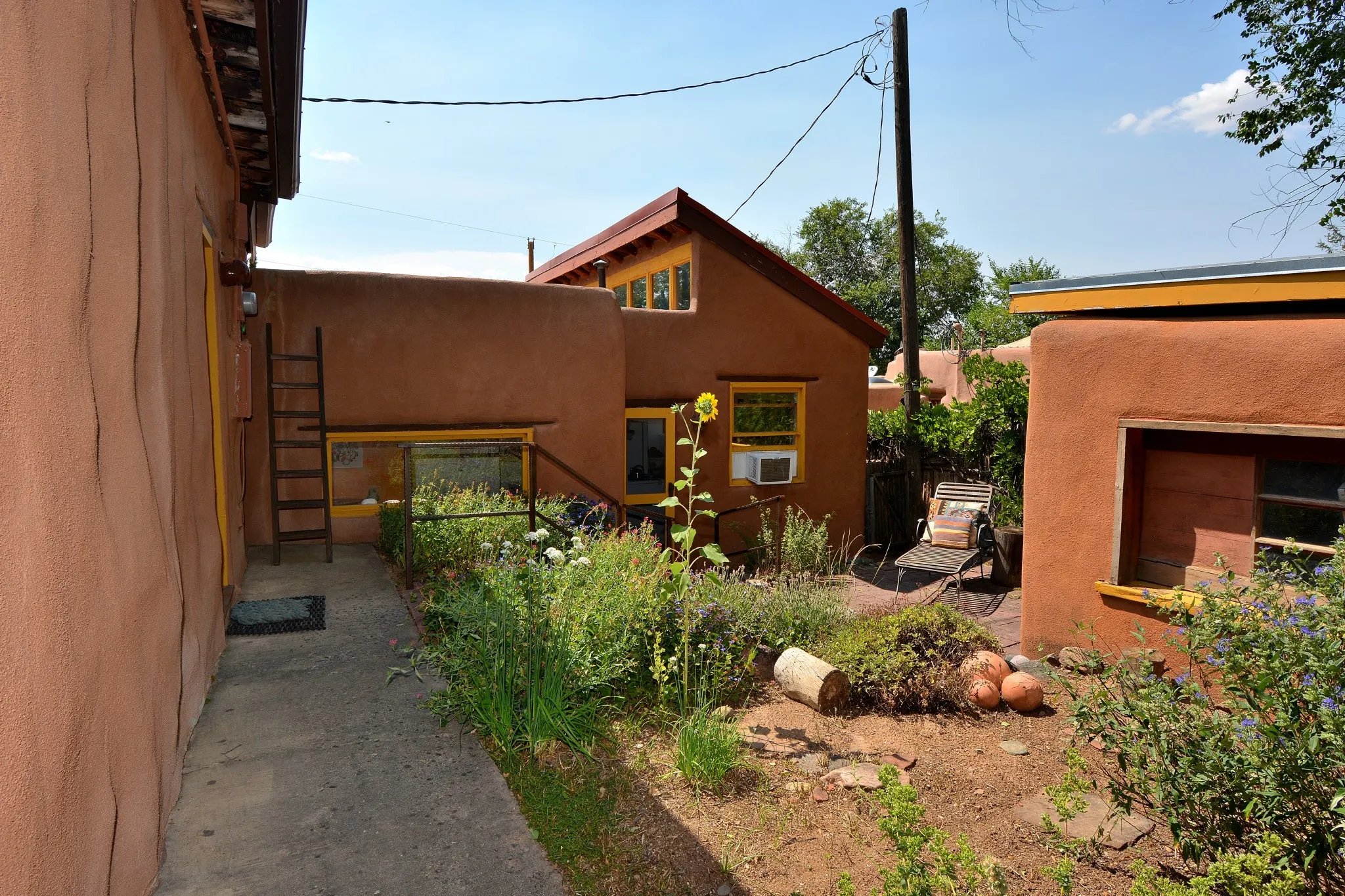 This home is located in the coveted Historic Eastside. The house is nestled in a winding street tucked behind famous Canyon Road. It offers Enchanting gardens and a secret terrace. The main house offers tranquility, gorgeous wood ceilings, 2 cozy wood burning Kiva fireplaces. The Kitchen has warm original wood cabinetry with display glass. and wood countertops. Breakfast area or office space off of the kitchen. There you’ll find the 1/2 bath which doubles as a convenient laundry area. Behind the main house you’ll find a private courtyard and an attached Casita complete with a loft space in the separate sleeping area. There is a kitchenette, and a full bathroom. Or use the casita as an extension of your home or as an office or artist studio.