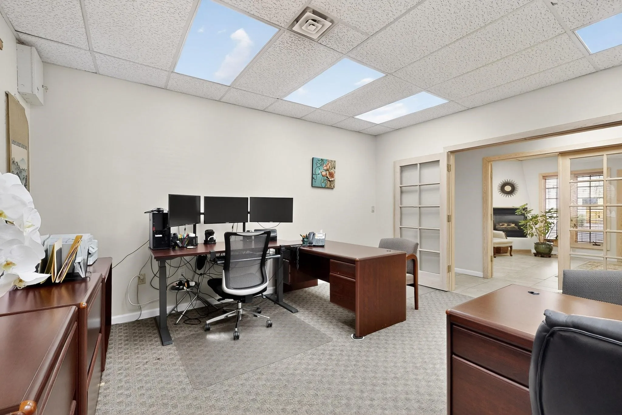 This move-in-ready office condo is perfectly suited to meet your professional needs. Conveniently located just off St. Francis Drive, it offers easy access to both downtown and midtown Santa Fe. A charming, tree-covered courtyard provides a welcoming entrance for your clients and staff. Inside, you’ll find a spacious and nicely appointed reception/waiting area, adjacent to a large conference room that can comfortably accommodate group meetings.