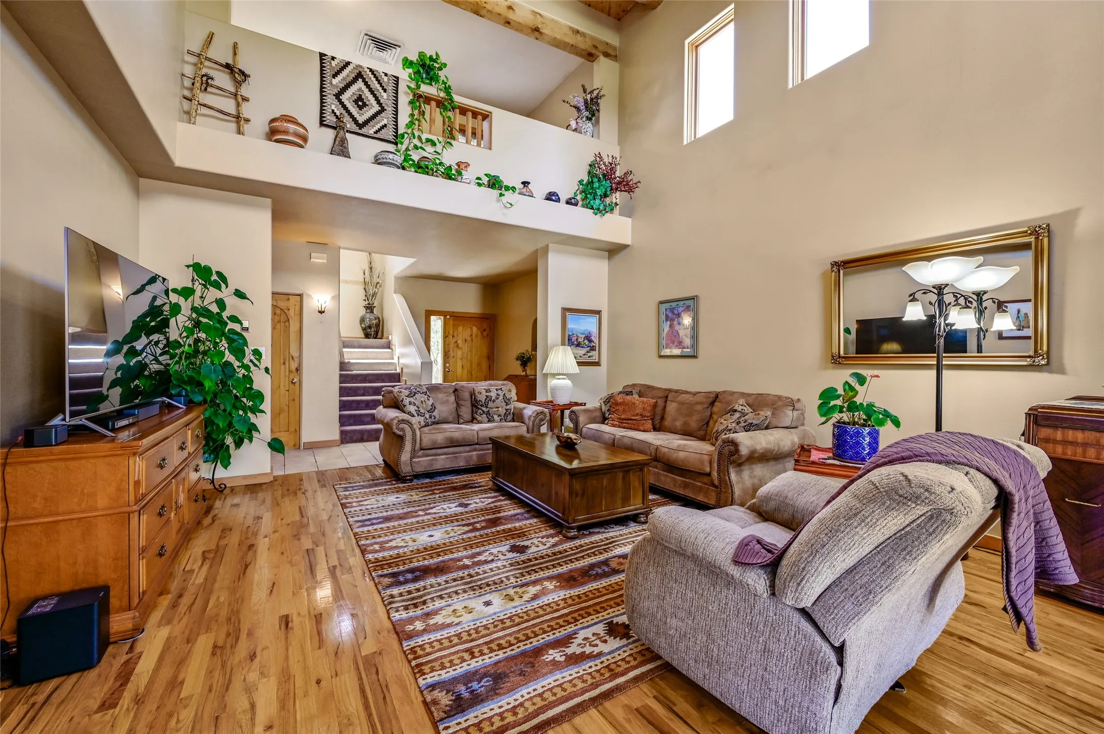 Welcome to this one-owner home in the sought-after Pueblos del Sol community. This semi-custom two-story home offers 3 bedrooms and 2 full bathrooms, a thoughtful layout, and ample natural light throughout. The house has been lovingly maintained over the years, featuring newer kitchen appliances, Anderson windows, and an updated roof. Front and back landscaped yards offer a quiet retreat and space to unwind. Two separate decks provide stunning views of the Sangre de Cristo, Sandia, and Ortiz mountain rangesāperfect for enjoying morning coffee or sunsets. Backing up to open space and trails, the property offers privacy and a connection to nature.