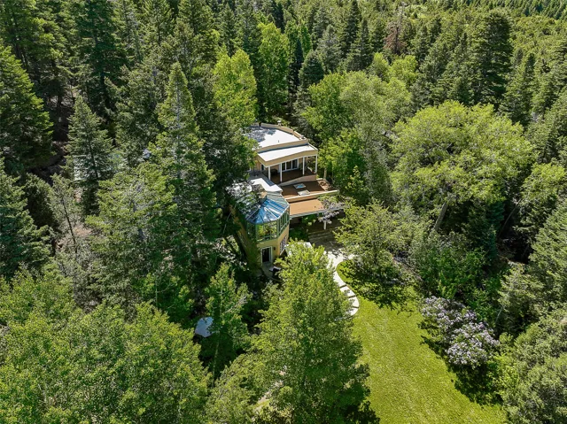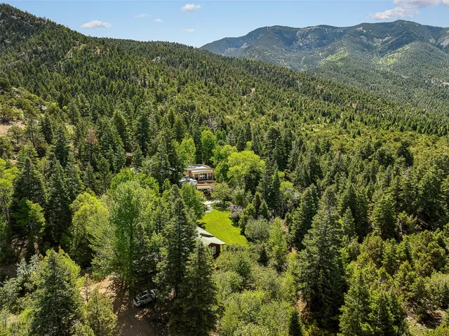 Comfortably tucked beneath the towering El Salto Mountain, sits this special 5.25 acre estate alongside the Arroyo Seco stream. This green oasis is defined by water, tall trees, birdsong and woodland gardens, by clear light, forever views and cool, starry nights. From its origins in the early 1970’s, generously expanded over several decades, the home is built in harmony with the land. Each level flows naturally from the last, echoing the cascading waters just outside, with terraces, nooks, and rooms unfolding like the curves of the Creek itself. Both informal and refined, the house feels completely welcoming and comfortable. Gorgeous Idaho quartzite flagstone moves seamlessly from the broad front portal draped with Wisteria into the kitchen. The principal living space has a dreamy kitchen with a fantastic 1954 red enamel Chambers stove, a wonderful creek-side sitting area, a living room with wide plank reclaimed heart pine floors, a dry-stack stone fireplace, a library nook, a dining area, and three sets of French doors leading out onto a wrap-around patio that follows the banks of the winding creek. Salvaged and repurposed cypress shutters from New Orleans became beautiful wainscot paneling and doors. The home is anchored by a spectacular second story glass sunroom, made and installed by Pennsylvania Mennonite and Amish craftsmen from Renaissance Conservatories. The magical room with a warm quartzite floor is bathed in natural light that invites the outdoors in- perfect for morning coffee, quiet reflection, reading, writing, or entertaining under the stars. From here, a short rise of stairs leads to a landing off of which radiate two large, private suites. The western facing suite has a cozy sitting area with a large fireplace and a patio overlooking the stream and endless views to the Rio Grande Gorge and beyond. The corresponding suite is bathed in beautiful natural light from the large windows, vaulted ceilings and skylights. It feels like a cozy nest tucked into the treed canopy surrounding it. The third bedroom suite is can be accessed from the main living level or via a private door from the gardens. A delightful guesthouse with a complete kitchen sits at the base of a grassy lawn. Under the same roof, yet with it’s own entrances from the lawn or garage is an additional light-filled room currently used as a home gym/office, and has a half bathroom. Versatile spaces amongst a verdant landscape. The stream brings the music of water to your daily rhythms. In the evening a cool breeze comes down the creek, and with it the gift of sleeping under a light blanket…windows wide open, stream trickling along. Natural springs feed native plants and perennials that bloom spring and summer. Golden Aspens shimmer and quake in the fall. Over 60 varieties of flowering trees, shrub sand perennials make for a true botanical delight. This is northern New Mexico at its most magical. Simply stroll out the door to hike and bike. No bike racks and drives to a trailhead necessary. Contiguous with quiet Taos Pueblo lands. Hiking trails lead to the El Salto waterfall and Carson National Forest. It’s an easy 12 mile/20 minute drive to Taos Ski Valley. The location is secluded, yet sneaky-convenient. Meticulously maintained by one Owner for over 50 years, this is the first opportunity for another lucky soul to call this Home. This one-of-a-kind mountain sanctuary blends privacy, luxury and natural beauty in a way that simply can’t be replicated. It is a truly special spot- Private Luxury at the Edge of Wild.