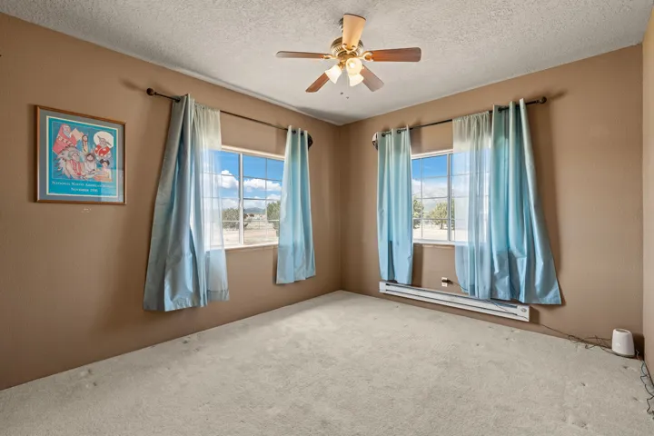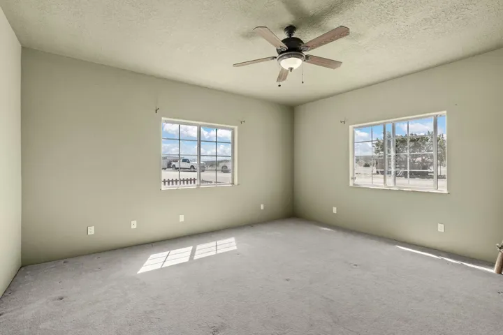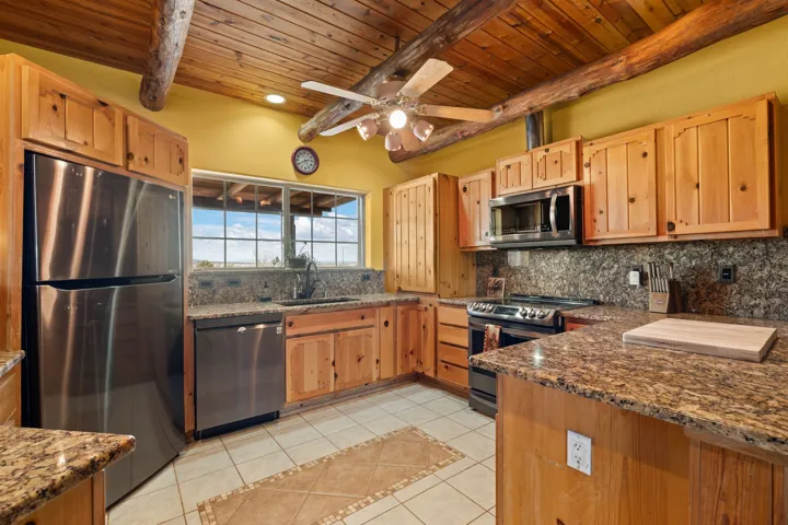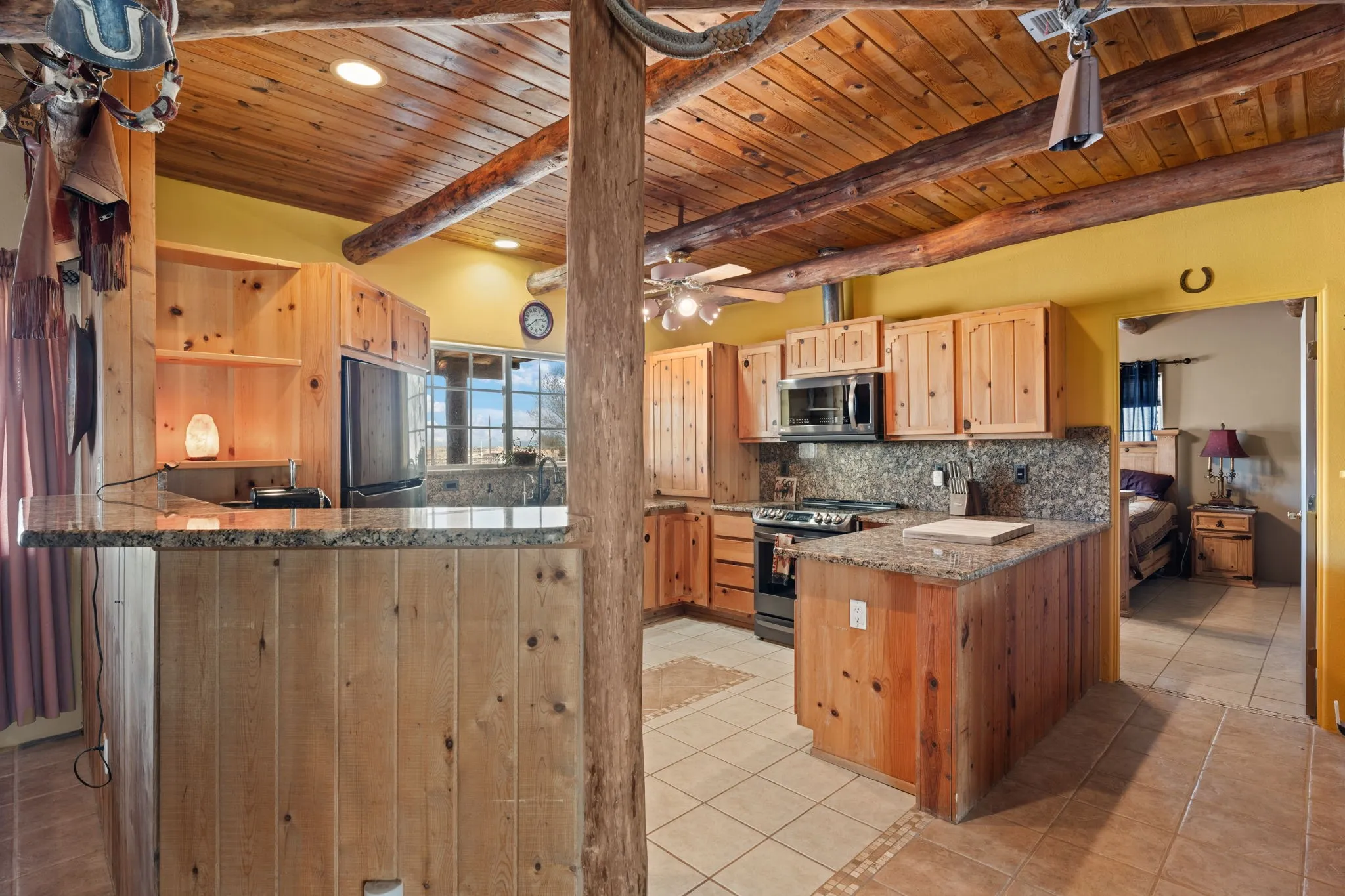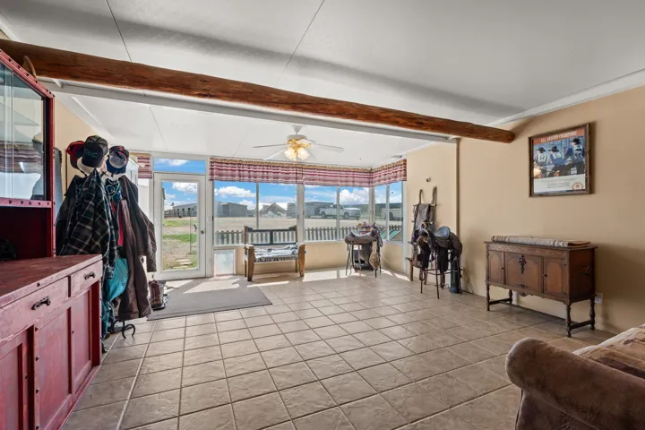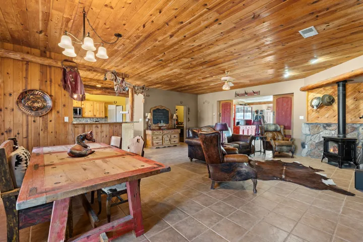 Equestrian Dream Property. This stunning 4-bed, 2-bath southwestern ranch home on 5.1 fully fenced acres with an indoor arena is a horse lover’s Desire! The spacious kitchen features stainless steel appliances, granite countertops, and vigas on the ceiling. The cozy living room has tongue-and-groove ceilings and a gas stove. Radiant in-floor heat ensures comfort throughout. The master suite includes a luxurious bath with a Jacuzzi tub and double-head shower. The property also has a heated sunroom, backup Generac generator, and horse facilities, including a 66′ x 80′ indoor arena w/ entire east side ”hangar” door that opens up to outdoor arena, 5-stall horse barn, multiple turnout pens, a 40′ x 60′ shop and 2 RV plug-ins. Community Water and Natural Gas. See attached Amenities List!