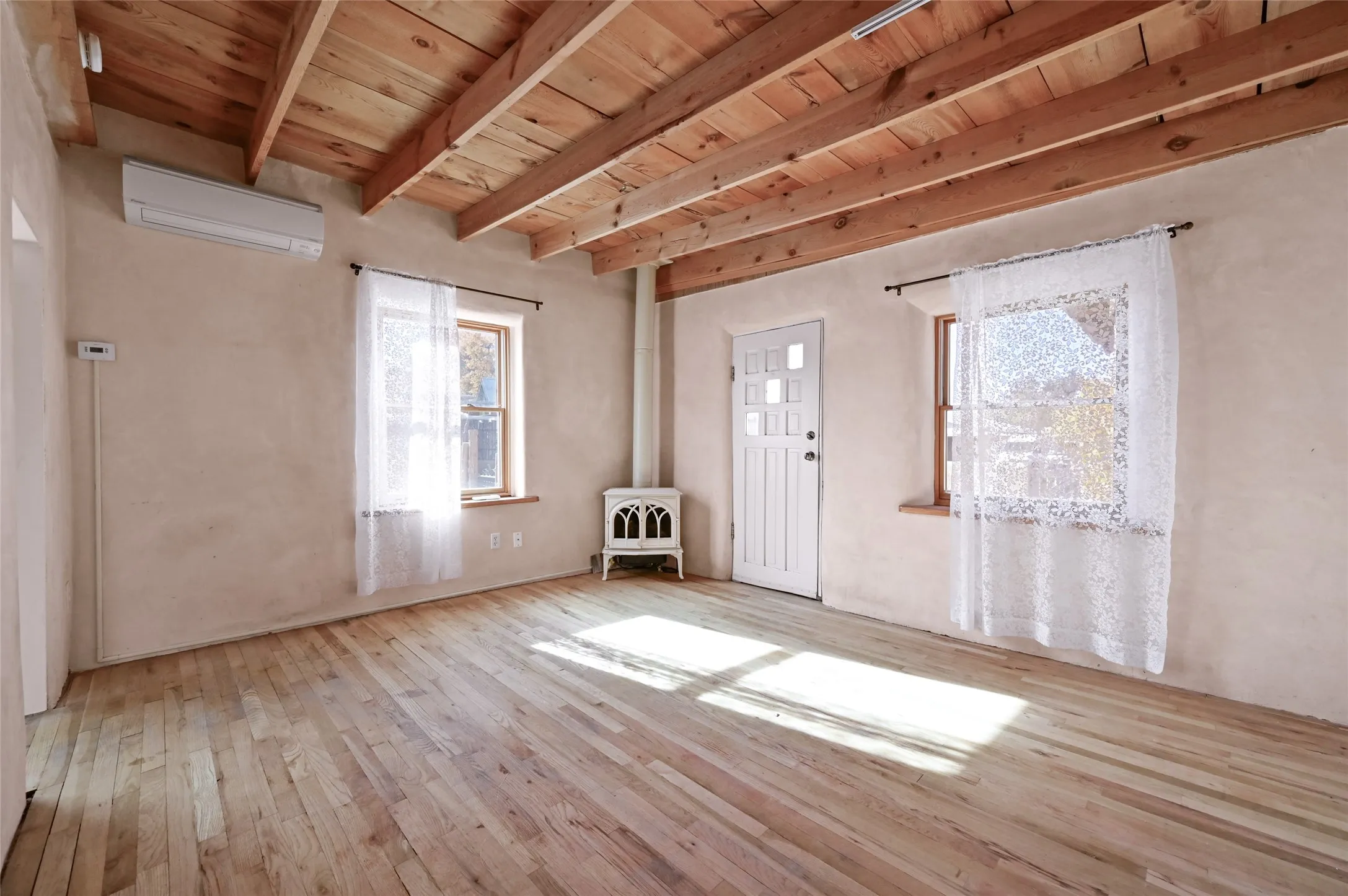 Charming 2 bed/2.5 bath + bonus room/office single level adobe home on corner lot w/thoughtful modern upgrades in centrally located neighborhood. Walk to coffee shops, restaurants, parks, and ride the Rail Trail to the farmers market, concerts, and events in the Railyard District and historic Santa Fe Plaza just minutes away. Versatile ~1400sf layout w/bright South facing living room & eat-in kitchen w/abundant cabinet space, designer AGA oven, & new stainless-steel appliances. Classic Santa Fe details throughout with hardwood floors, vigas, niches, Talavera tile, and plaster walls paired with recent updates such as a brand new renovated half bath in the bonus room/office. Enjoy customizable temperature control with zoned heating/cooling with mini splits and gas fireplaces & heaters. Ample outdoor living and entertaining space with large walled front and back yards with mature apricot trees. Donāt miss your chance to own this cozy adobe home in the heart of Santa Fe!