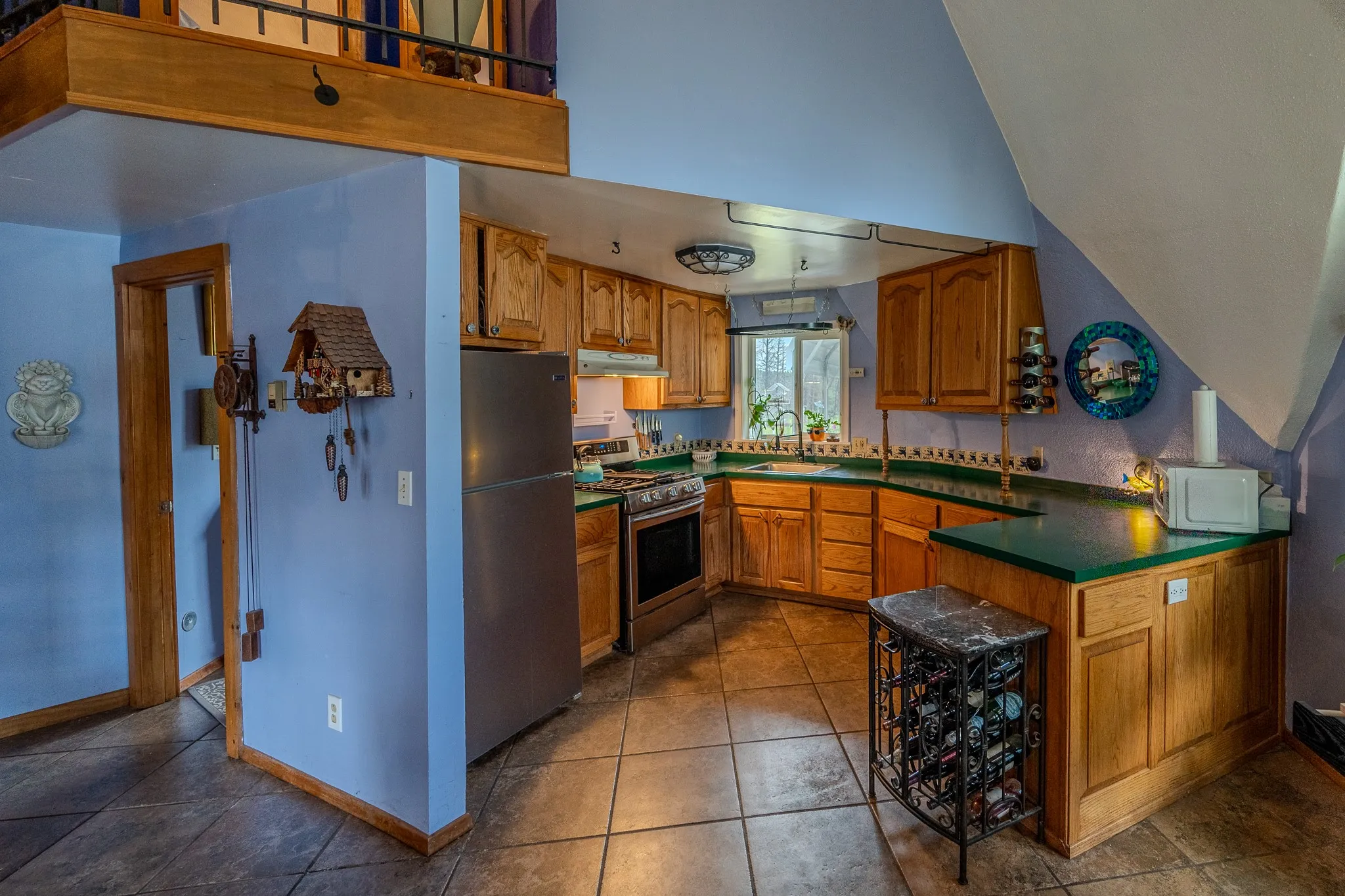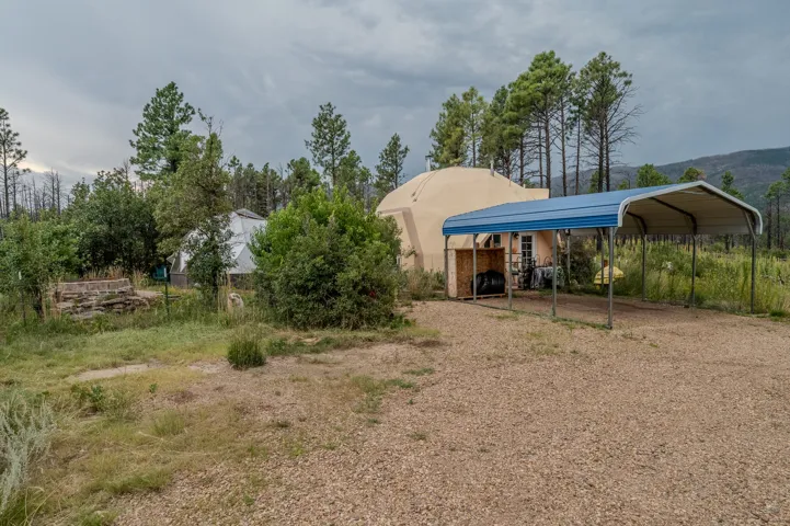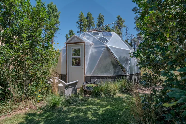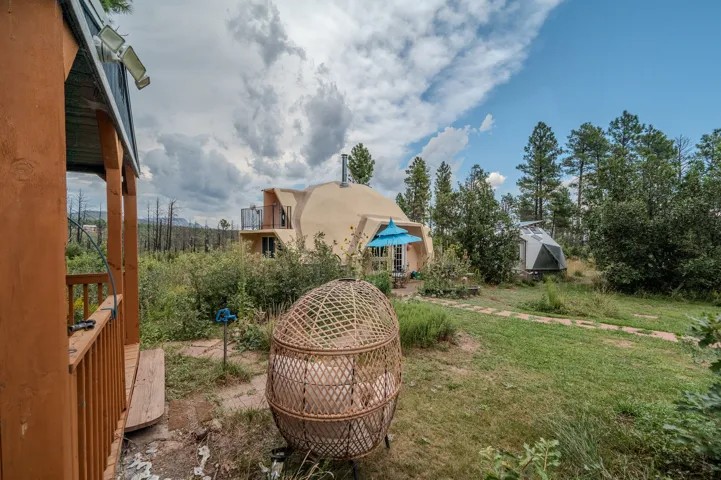 Out of the mainstream. Colorful, lush and private with mountain views and peace. Currently on grid with off grid potential. The main home is a comfortable geodesic dome with a bedroom and bath on the main level and second bedroom and bath upstairs. Recently updated with new windows, doors, and paint inside and out, appliances all less than 5 years old. The property is fully fenced. A second building is 255 square foot geodesic dome Green house, only a few years old. This includes raised beds, 750 gallon water pond, solar and electric power. There are many fruit trees, flowers and a fenced chicken coop. A third building is a 12×24 foot light filled, insulated studio with electric power. Sometimes it’s a guest room and sometimes it’s storage. This is unique and wonderful. Call today.