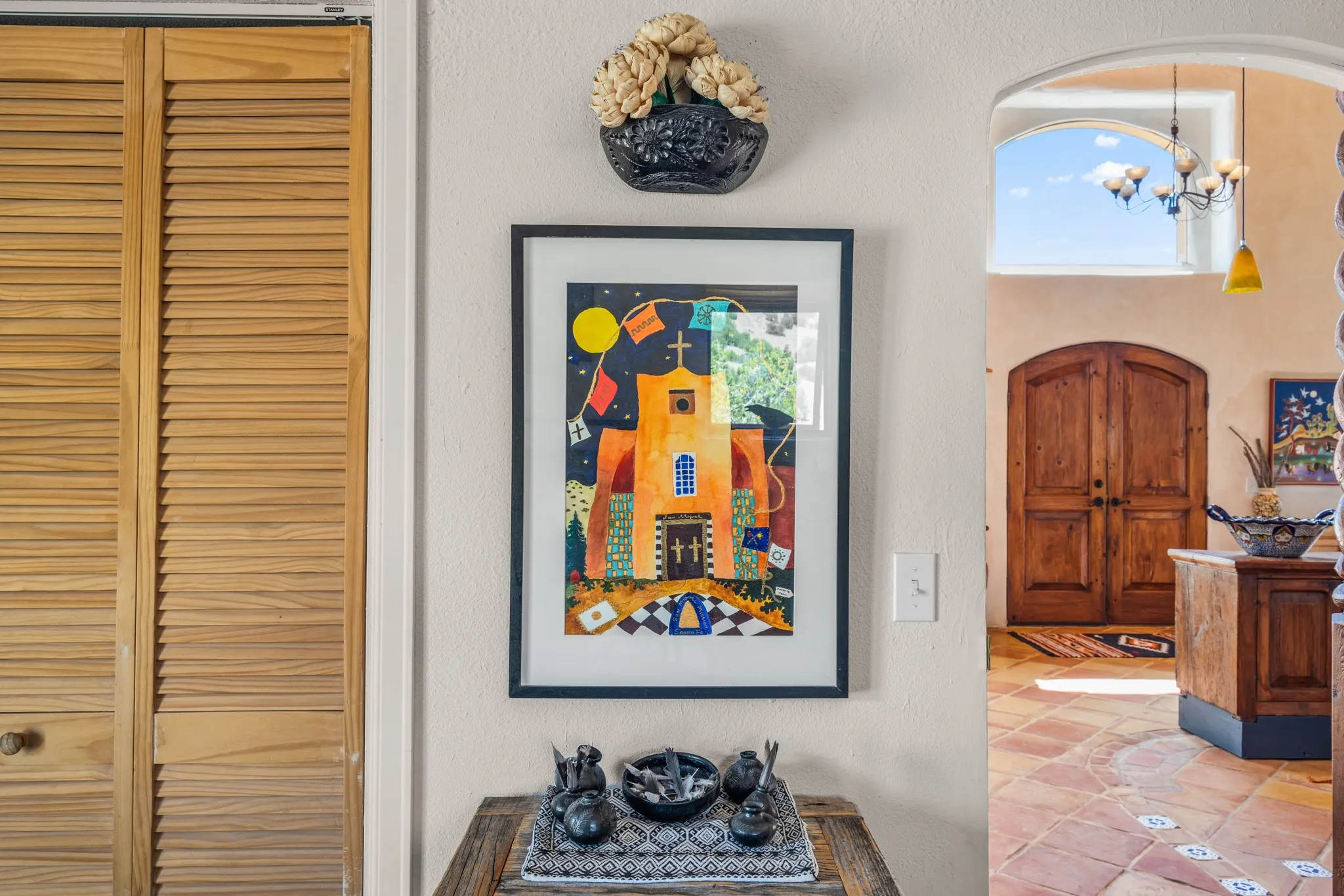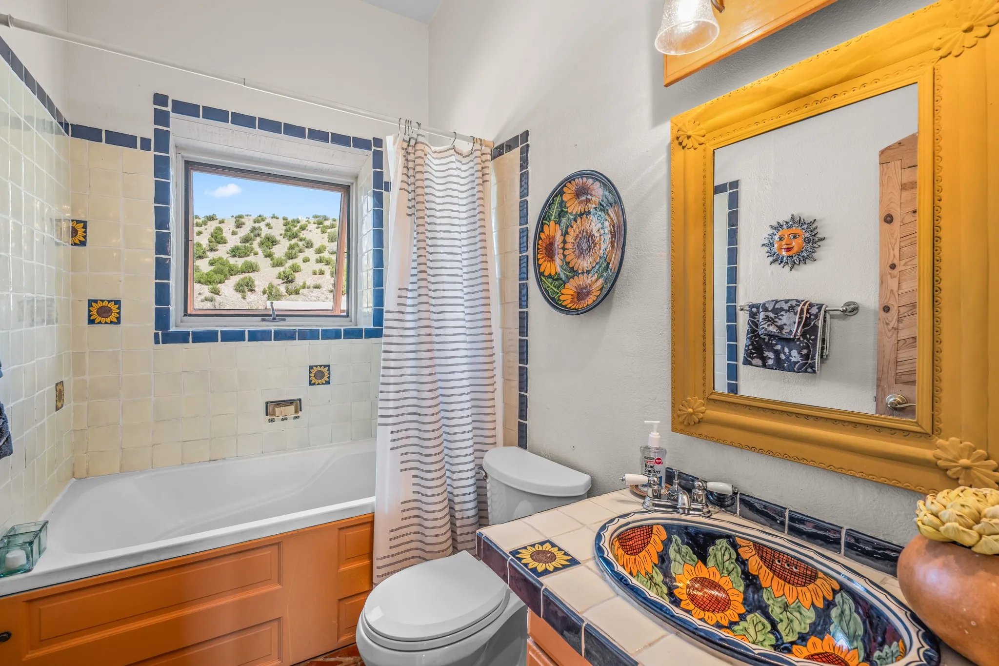 Welcome to this amazing straw-bale home and guest house / studio on 10.47 of the most serene acres with tremendous mountain and rolling hill views. Take morning and afternoon hikes on your own property and enjoy the tranquil sun rays while making new tracks on the well-preserved and undisturbed land that runs abound. The main home features an open floor plan with an ensuite primary bedroom and a large guest bedroom with fantastic views. The kitchen has been totally updated with a newer appliance package and gorgeous tile work. The main home has radiant in-floor heating. The detached 768 square foot casita has a 3/4 bath and full kitchen, a mini split system that heats and cools, and plenty of large windows which provide an abundance of interior natural light and stupendous, panoramic views– perfect for family, friends or as a substantial income provider. Both buildings are positioned well as they face the surrounding mountains while taking in the afternoon, south-facing sun which provides optimum solar gain. New Septic installed 5 years ago and a new well installed 8 years ago. This property also includes a fantastic and unique rock outcropping feature that really makes it just a little more special than the rest. This is one of the most unique and beautiful properties in the Cerrillos area …. Please come and take a look!!