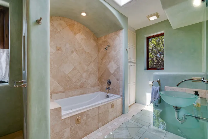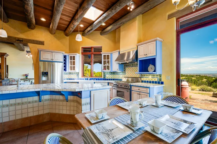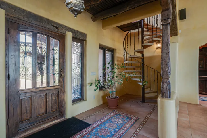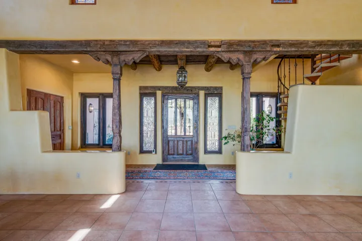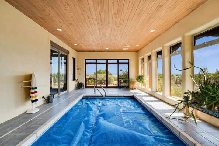 The main residence showcases authentic Southwest style, adobe and rastra construction. It features intricate plasterwork, recycled wood vigas, and a heated indoor pool, the rooftop deck offers truly unobstructed views. The solid oak cabin adds rustic charm, originally owned by the Hoover family, and rebuilt on-site.