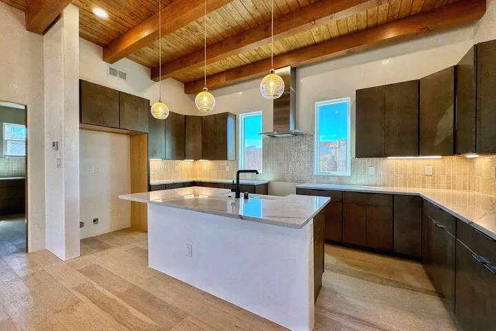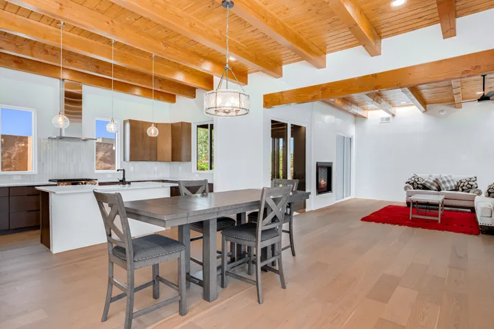 Crafted by Borrego Construction, this home exudes a blend of inviting elegance and modern flair. Boasting 3 bedrooms and 2 baths, it offers luxury amenities and a seamless open floor layout. Delight in Venetian Plaster accents, a lavish master suite with a spacious walk-in closet, an expansive shower and exquisite tile finishes. The living space features a gas linear fireplace, visible from both indoors and outdoors. Situated in the coveted Plaza Bonita neighborhood. This property offers convenience with it’s proximity to the hospital and shopping amenities. Enjoy the sought-after lifestyle in Santa Fe’s Plaza Bonita enclave.