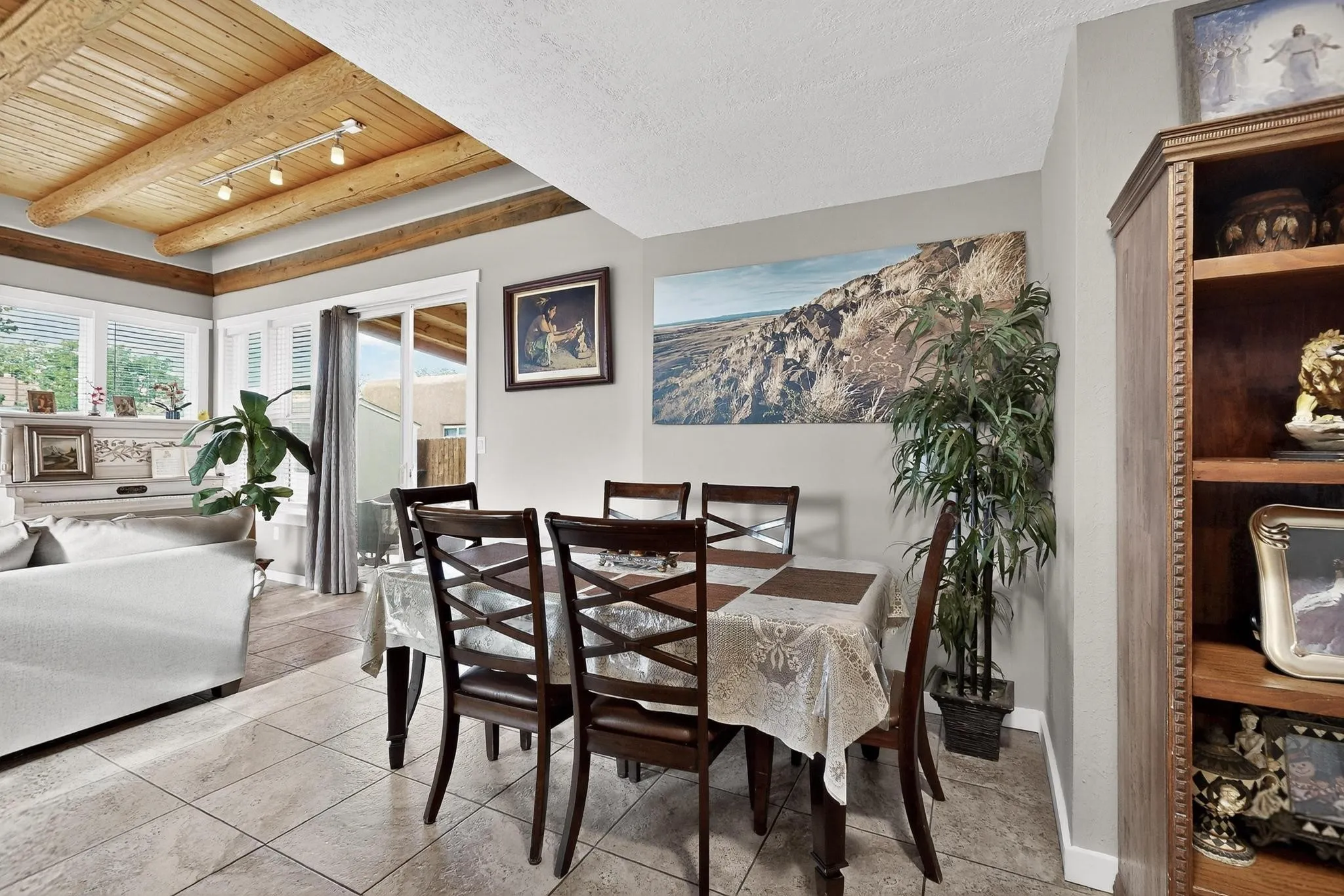 A recent addition brings warmth and wow-factor with tongue-and-groove ceilings, exposed vigas, a cultured stone accent wall, and a sleek electric fireplace. Dual sliding glass doors open the space to both a lush garden area and a covered patioāideal for entertaining or enjoying peaceful mornings outdoors.