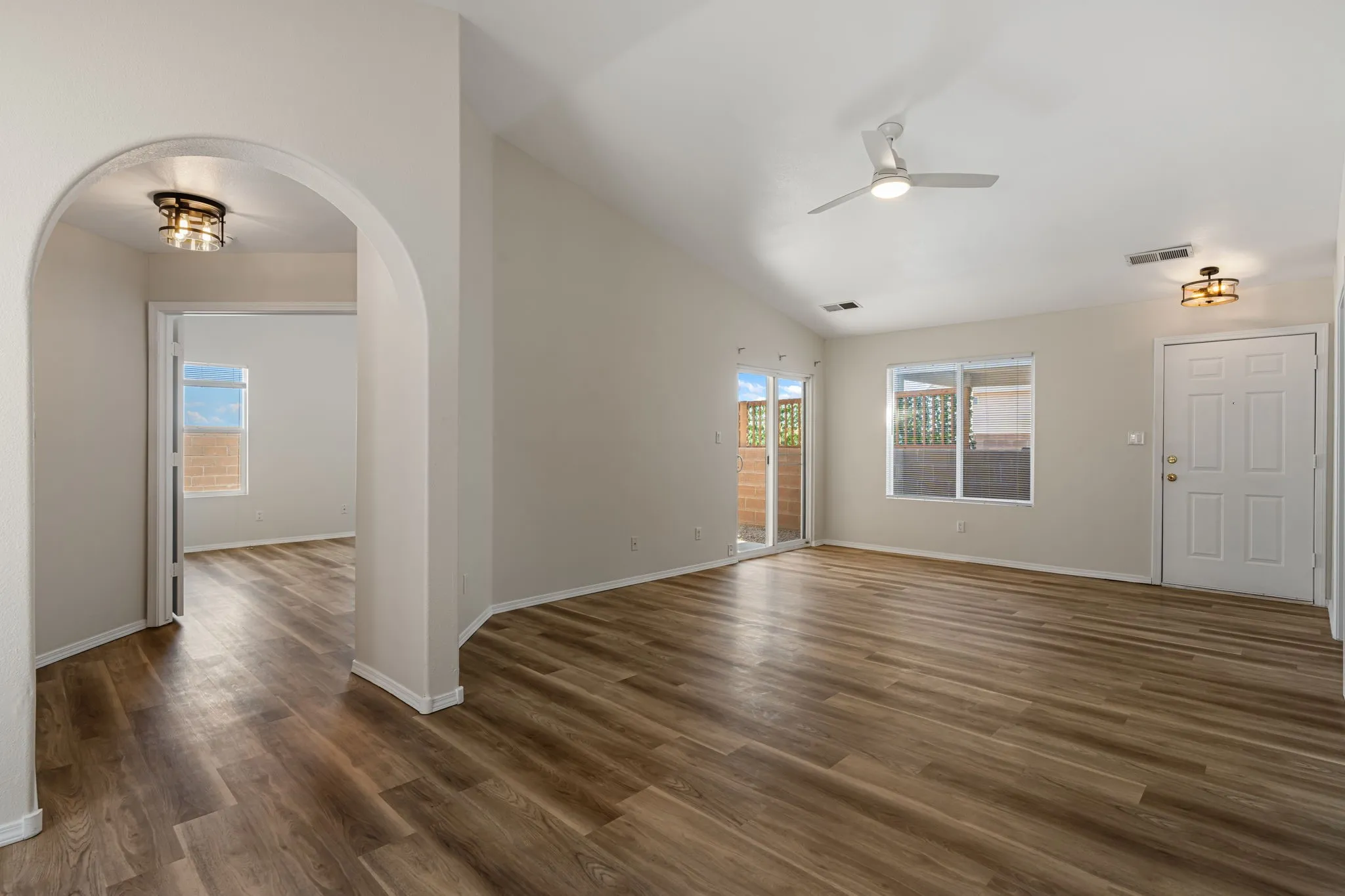 Welcome to this beautifully updated 3-bedroom, 2-bath home with a 2-car garage, perfectly situated in a small gated subdivision offering both comfort and privacy. Step inside to find all new LVT flooring throughout, complemented by fresh paint and modern updated lighting that create a bright and inviting atmosphere. The vaulted ceilings enhance the spacious feel of the great room, while refrigerated air keeps the home cool and comfortable year-round. The thoughtfully designed floor plan provides a seamless flow between living spaces, ideal for both everyday living and entertaining. Enjoy the tranquility of the outdoors with a backyard that backs to open space and a walking path, offering extra privacy and the perfect setting for evening strolls or morning coffee. Move-in ready.