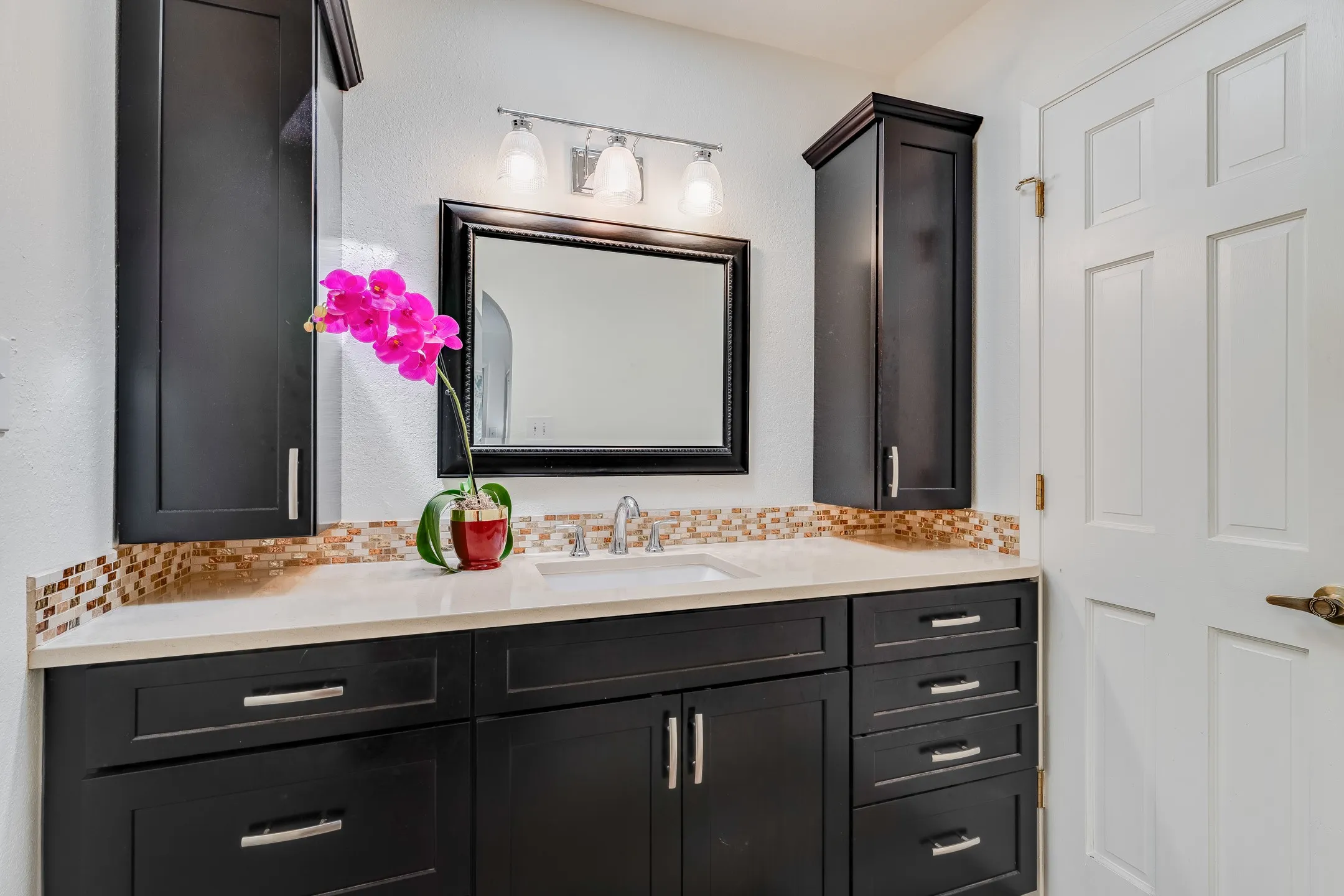 Located in the desirable Via Caballeros neighborhood, this inviting two-bedroom, two-and-a-half-bath home blends comfort with thoughtful updates. With 1,790+/- square feet of interior space, the home features a living room with soaring ceilings, abundant natural light, brick floors, and a charming Kiva fireplace that adds warmth and character. The updated kitchen is appointed with stainless steel appliances, travertine floors, and stone countertops to add timeless appeal. Also on the main level you will find a convenient powder room and direct access to a 2-car garage. Recently renovated bathrooms enhance both style and function for the two bedrooms while a bonus loft space can be a private den, third bedroom, or office. The lush gardens can be appreciated from most every angle, a seemingly endless verdant horizon that backs onto a greenbelt proving additional privacy and enjoyment. With central A/C and heat to keep you comfortable year round, local parks and amenities nearby, this home offers a perfect blend of modern updates and traditional New Mexican charm, ready for its next chapter.