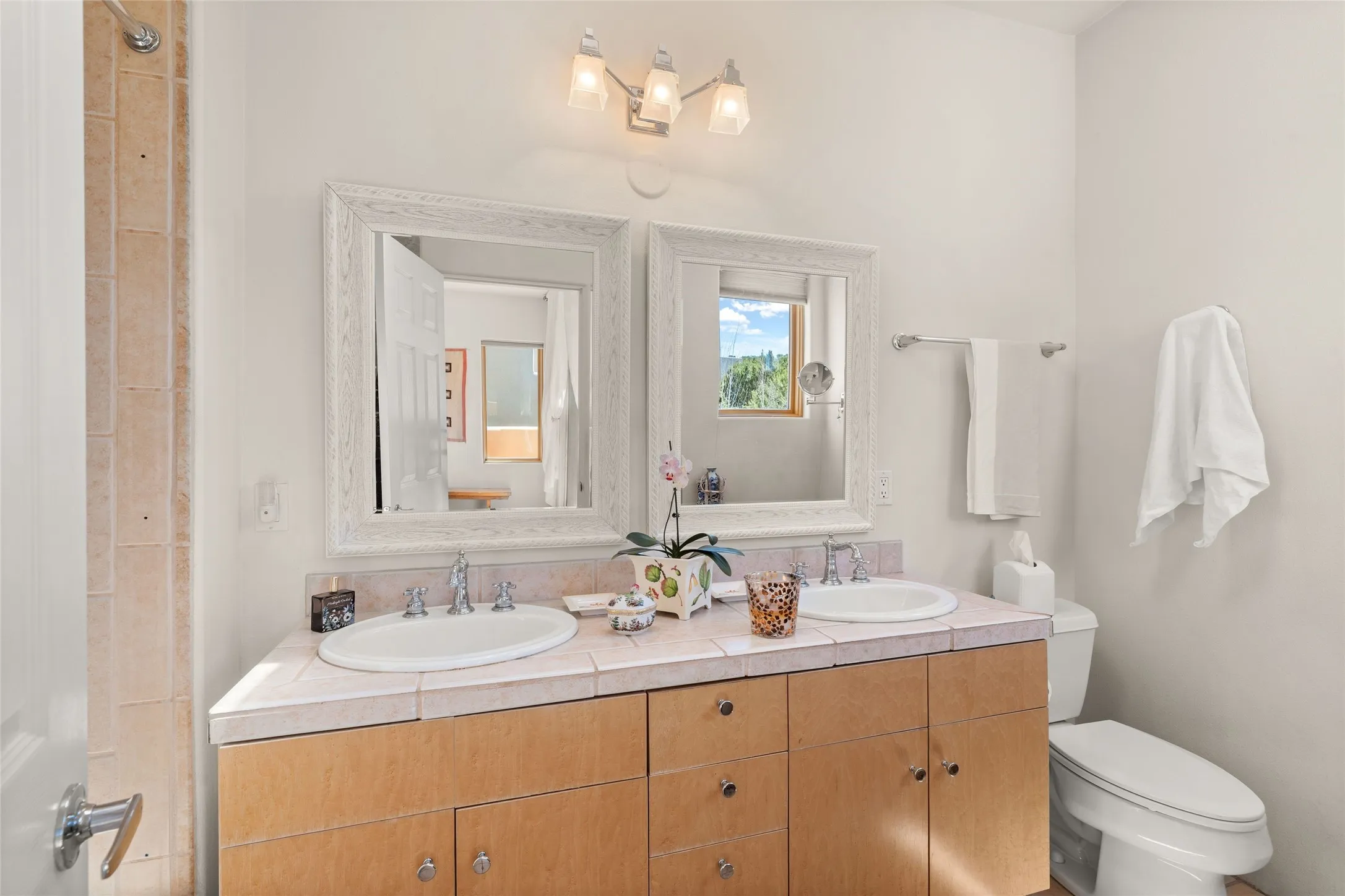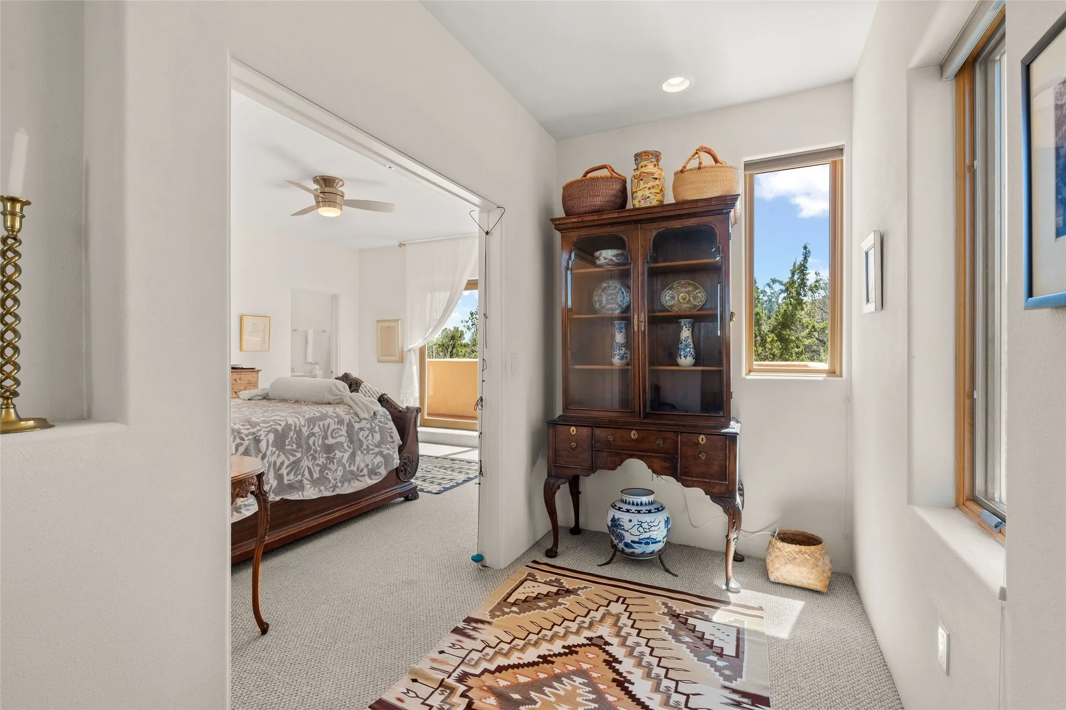 Northside 3-bedroom, 2.5-bath condominium offering captivating views and a thoughtfully designed multi-level layout. The first level features a two-car garage, mechanical room, and generous storage options. Move up to the second level, where the living area includes a welcoming fireplace, providing a focal point for relaxation. The open living room and kitchen design encourages easy interaction, complemented by a convenient half bath. Enjoy access to a private patio and outdoor area, perfect for unwinding or entertaining. On the third level, discover a guest bedroom, a laundry area, an office, and a full bath. A balcony enhances this level, offering an additional outdoor retreat. The primary suite occupies the fourth level, serving as a tranquil getaway. Recent updates add to this homeās charm, featuring upgraded fireplace with granite, modern lighting, ceiling fans, and practical shelving. The addition of flagstone and aspen trees enhances the outdoor environment, creating a serene atmosphere. Conveniently located, this condo is just moments away from the DeVargas Center, Frank Ortiz Dog Park, Ft. Marcy Recreation Center, and the Historic Santa Fe Plaza.