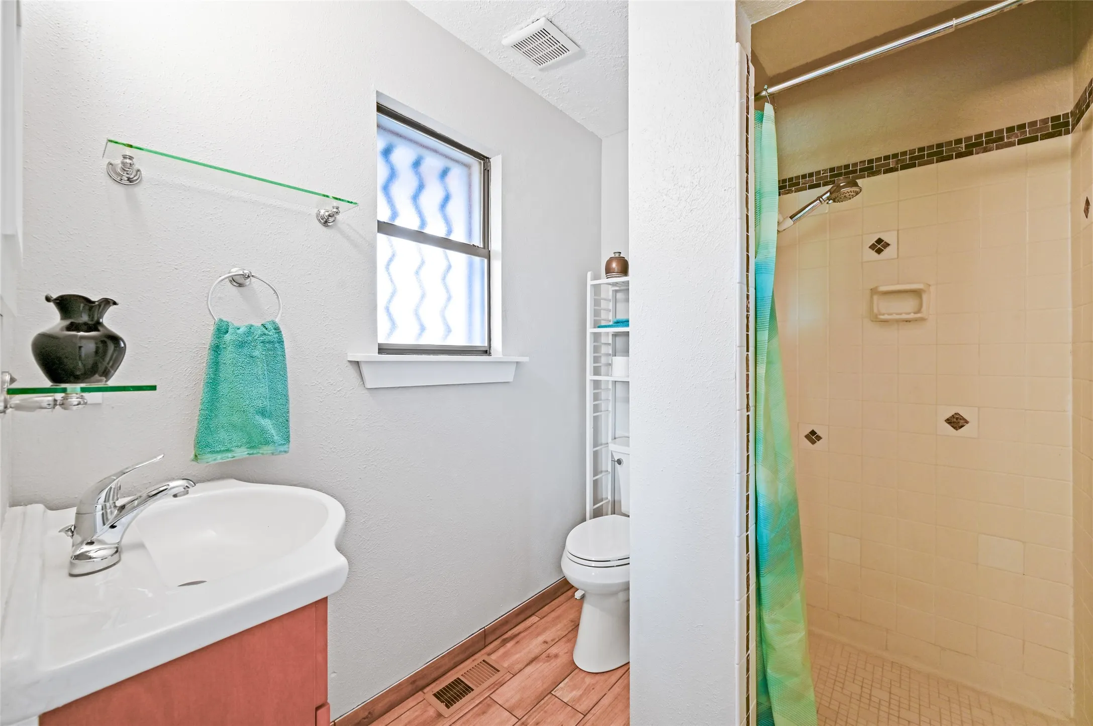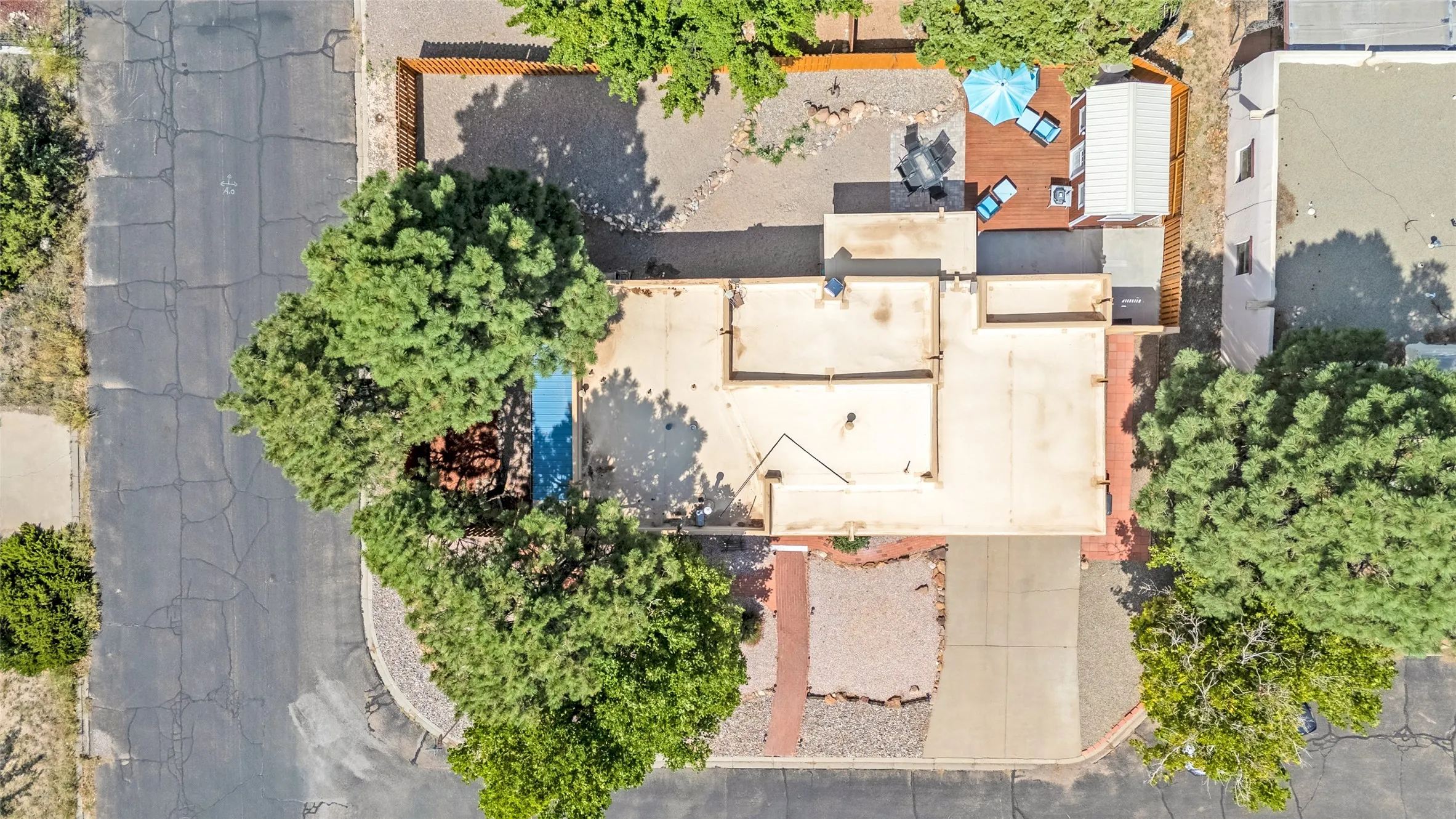 Inside, the cozy living room features a kiva fireplace and beautiful ceiling beams. The kitchen is well-equipped with ample cabinetry and a bright breakfast nook. Step outside to your private backyard retreat, complete with a new wooden deck, a relaxing sitting area, and brick patio, ideal for entertaining or enjoying outdoor meals.