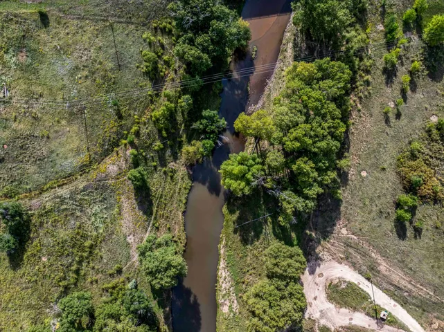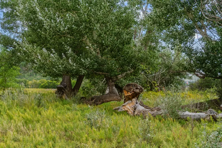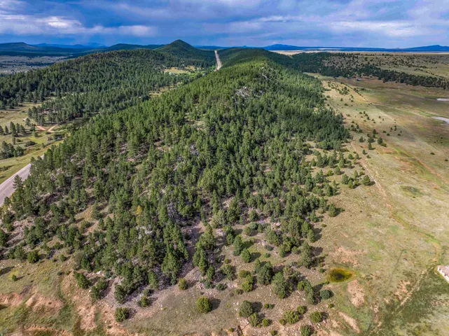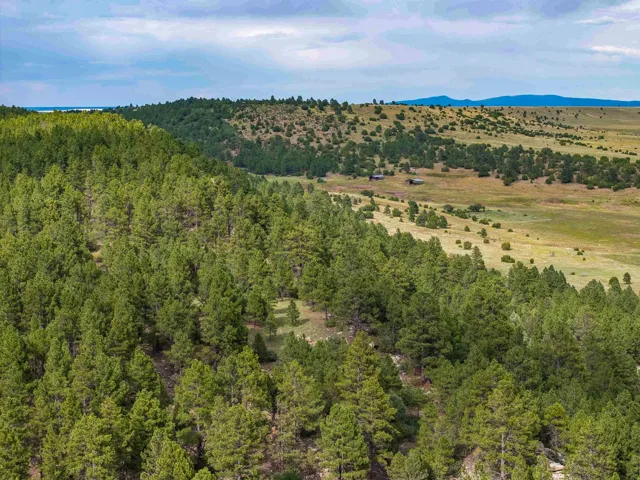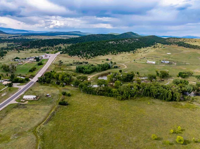 A forested hillside creates a natural barrier along northern portions of the property, offering a sense of seclusion from the highway. Additionally, the property has an adobe ruin, adding historical charm and potential for restoration or creative projects.