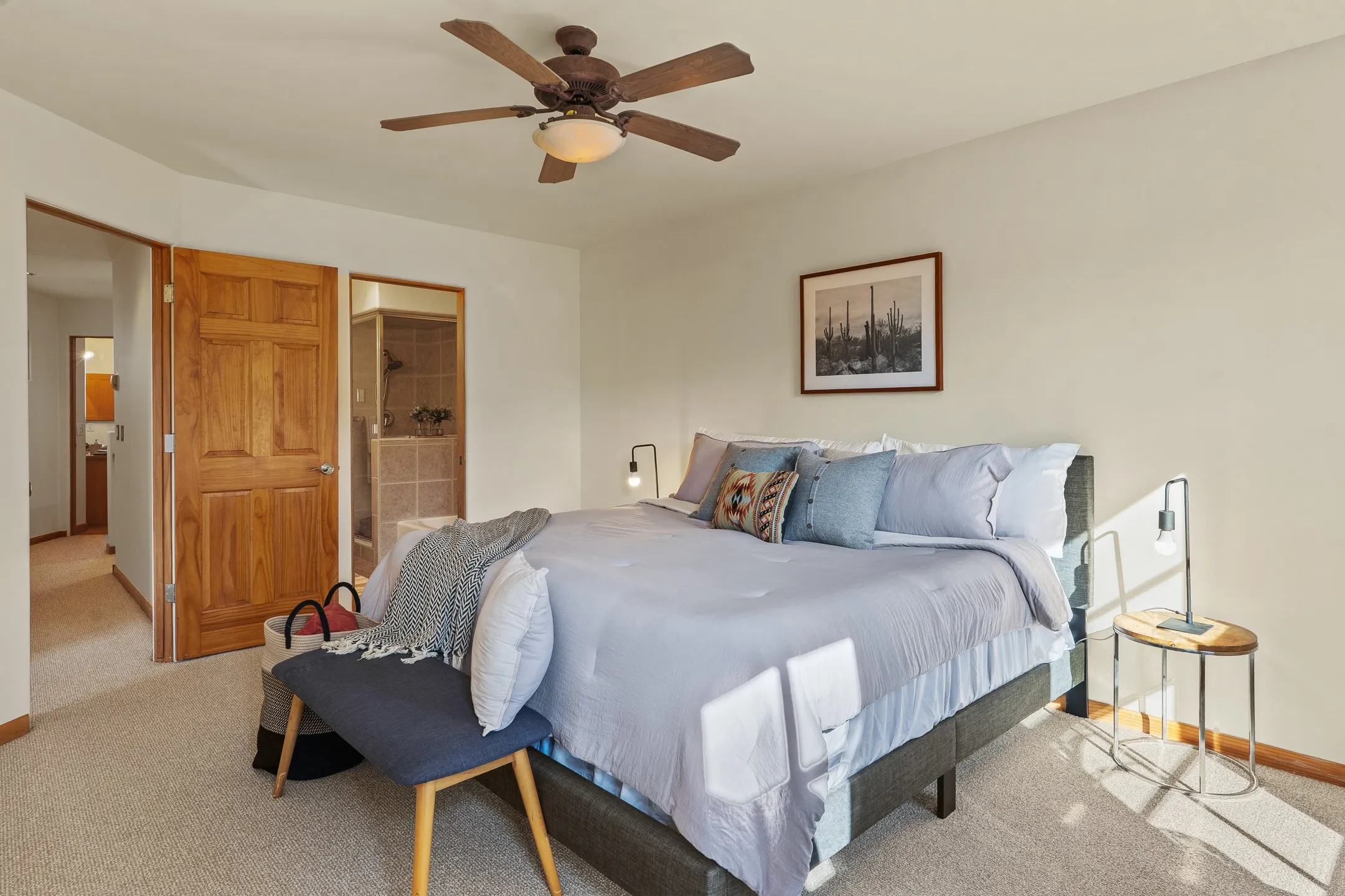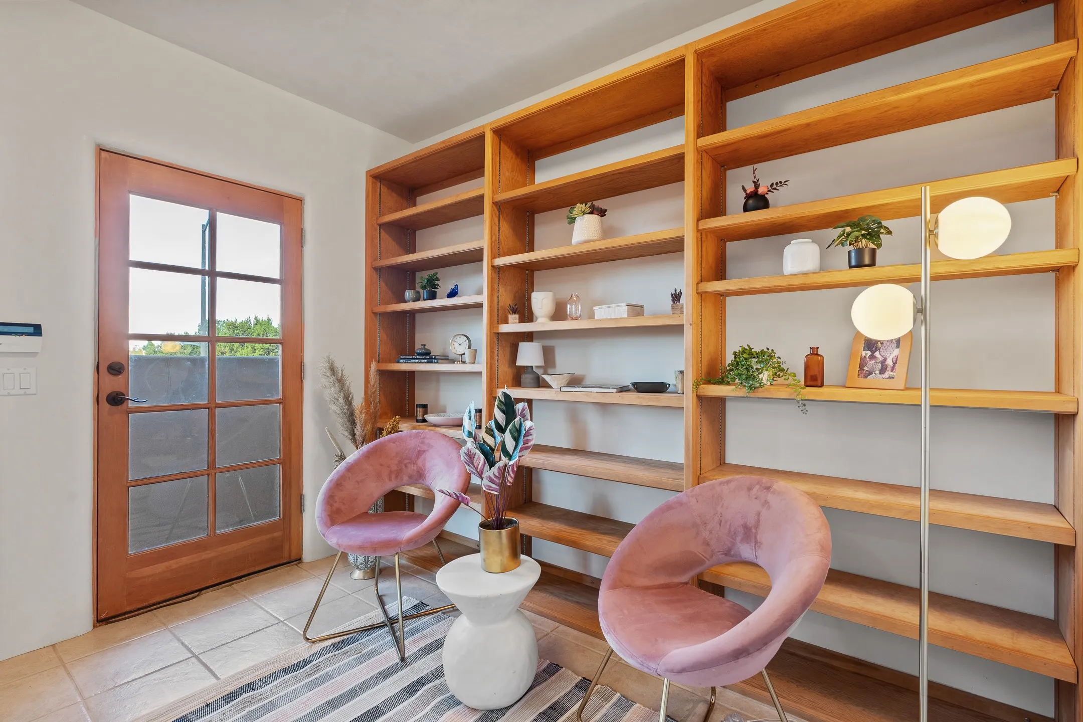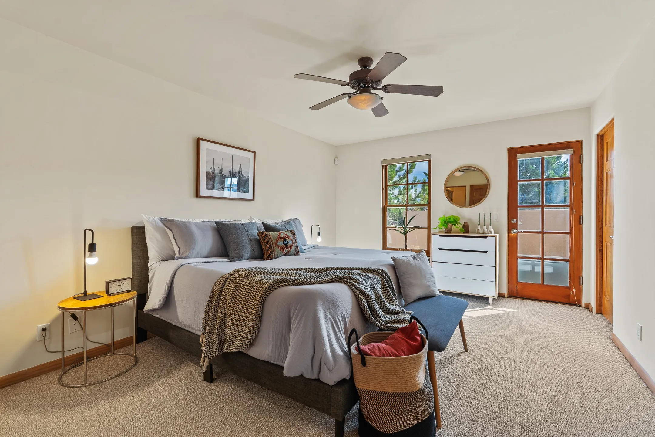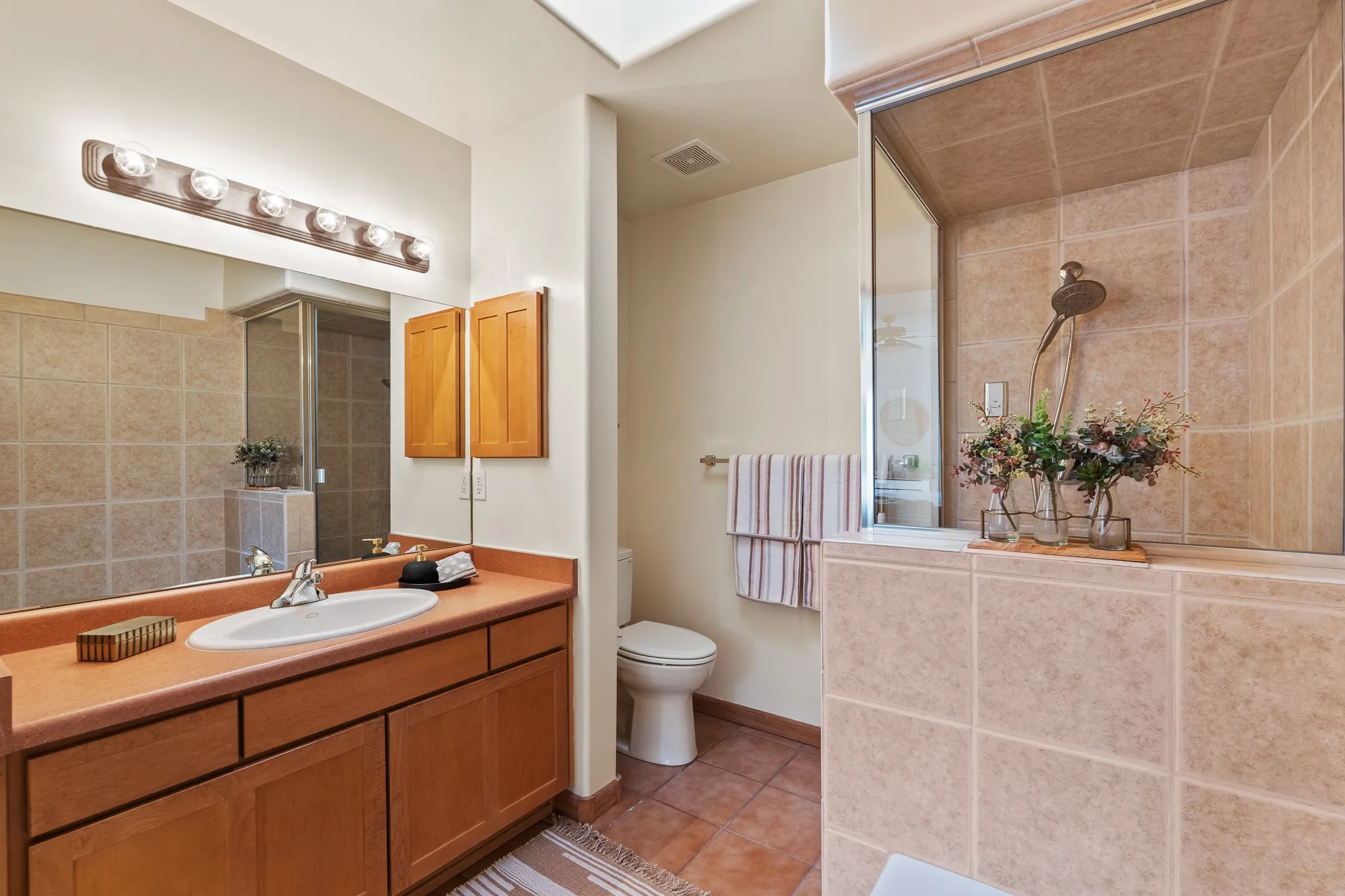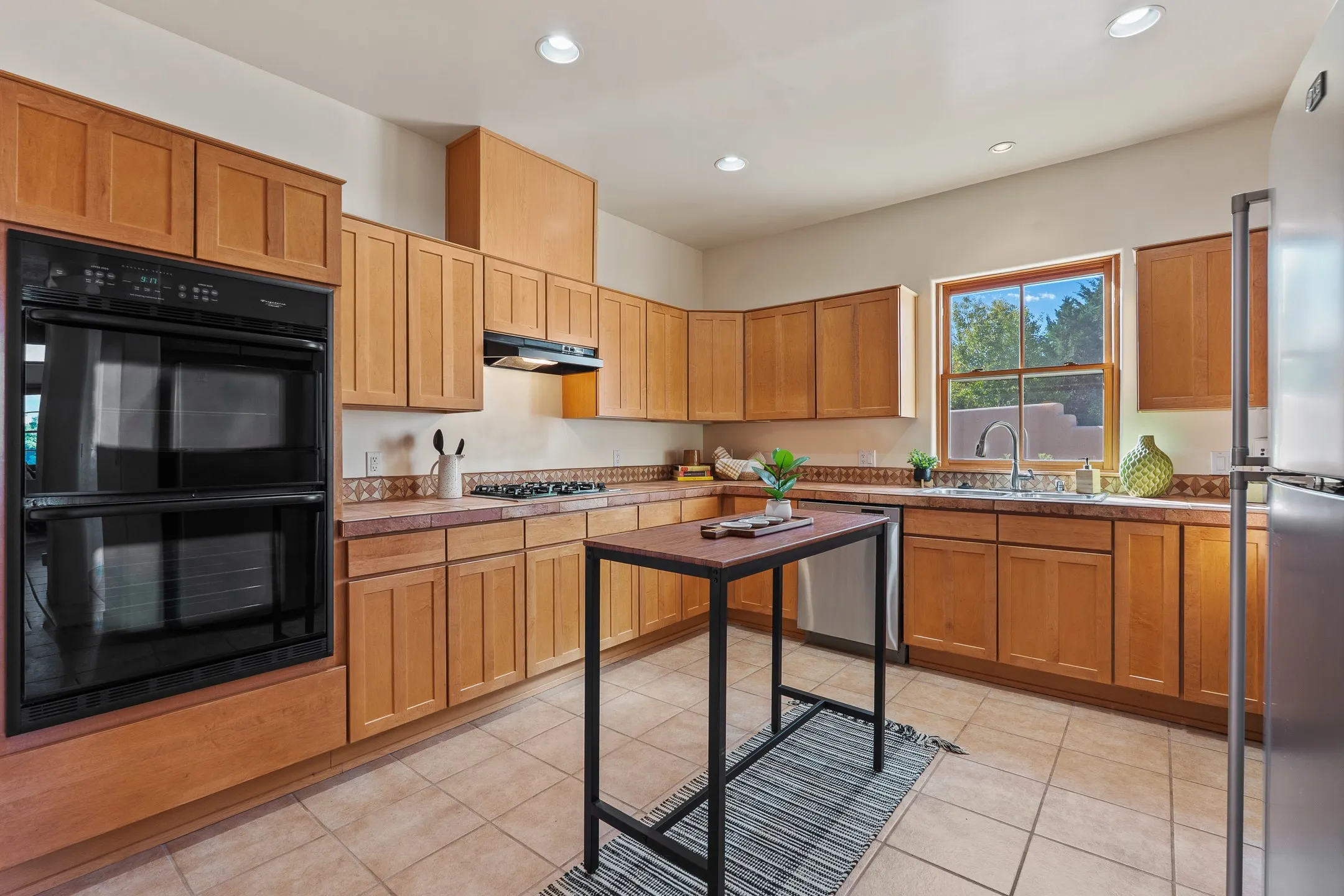 First time on the market in Santa Feās Aldea de Santa Fe community! Built in 2003 by Bruce Thompson, this wonderfully flexible configuration offers a three-bedroom main house and detached casita perfectly suited to serve creative pursuits and hosting-needs. The main homeās central living and dining spaces are adorned with Santa Fe-classics: plaster walls, viga-accented ceilings, and a cozy wood-burning kiva fireplace. Adjacent to the light-filled living room is a private nook, finished with built-in bookcases, that functions effortlessly as an office/study, secondary seating area, or creative space. The kitchen is complete with abundant countertop space, ample cabinetry/storage and an informal dining area. Upstairs, the primary bedroom is a relaxing retreat with its own private deck. Outside, the patio area is a serene setting to unwind and the surrounding yard is well-suited for low-fuss flower and garden beds. The detached 345+/- sqft casita is a work-from-home dream, or a comfortable arrangement for hosting friends and family. Sensibility and style collide in one of Santa Feās vibrant and well-cared for communities. Aldea is an active community with miles of walking trails, a community center and other amenitiesāall just 15 minutes from downtown Santa Fe.