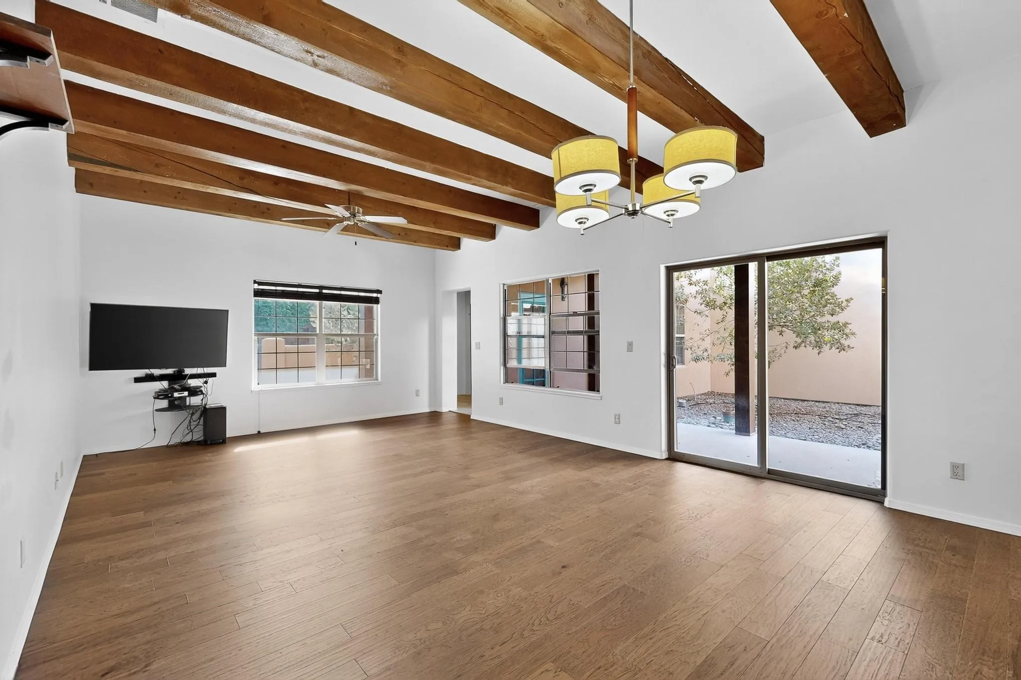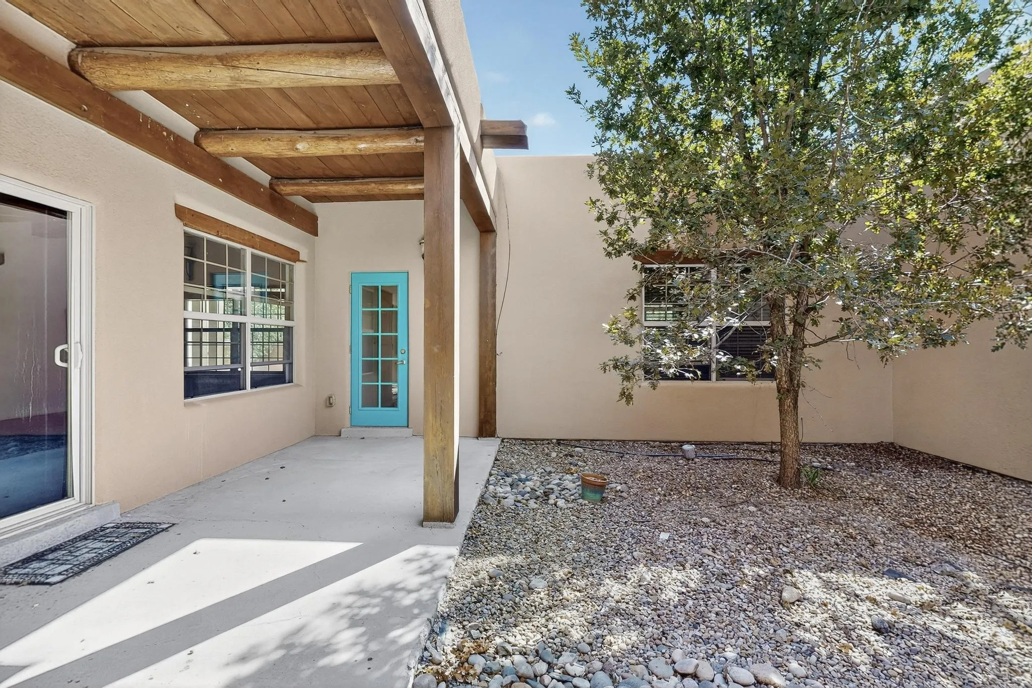 Centrally located in the vibrant Oshara Village, this move-in ready townhome features 2 spacious suites on the main level, along with 2 additional bedrooms and a full bath upstairs, offering comfort and flexibility. The open floor plan connects the kitchen, dining and living areas to a delightful central courtyard, perfect for entertaining or private relaxation. Additional perks include a detached two-car garage, fully-paid solar panels, transferable roof warranty, and a private fenced backyard with low-maintenance xeriscaping. This location offers easy access to medical facilities and diverse dining and shopping options. Whether you’re seeking a cozy retreat or a dynamic live/work/play environment, this home has it all!