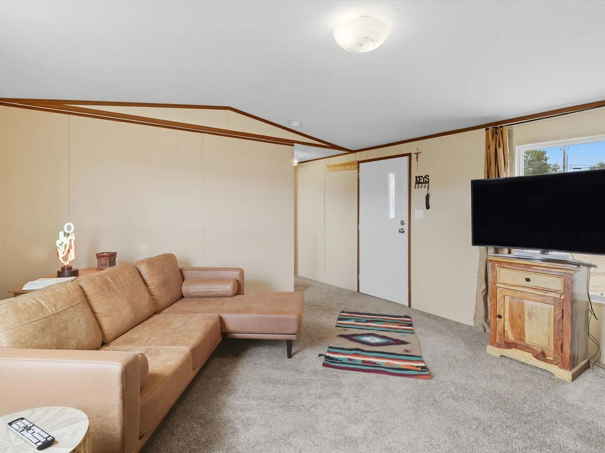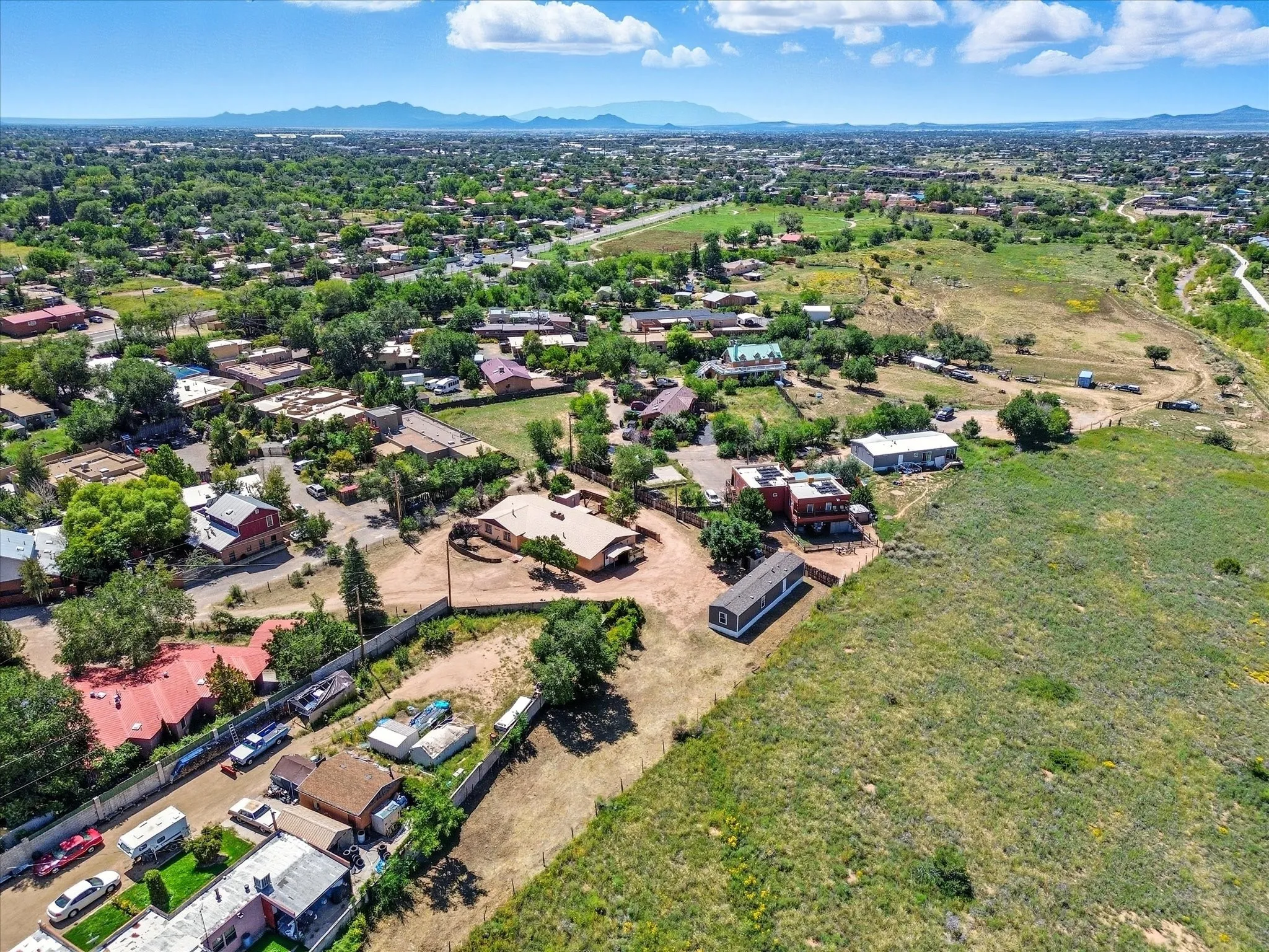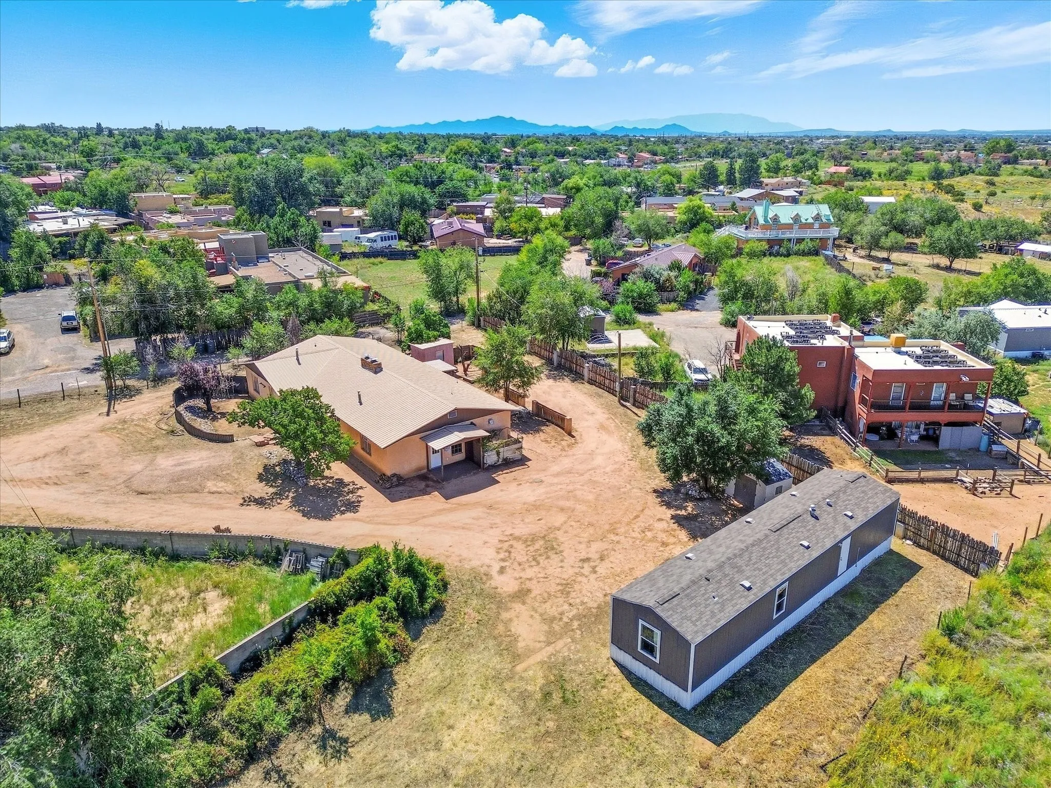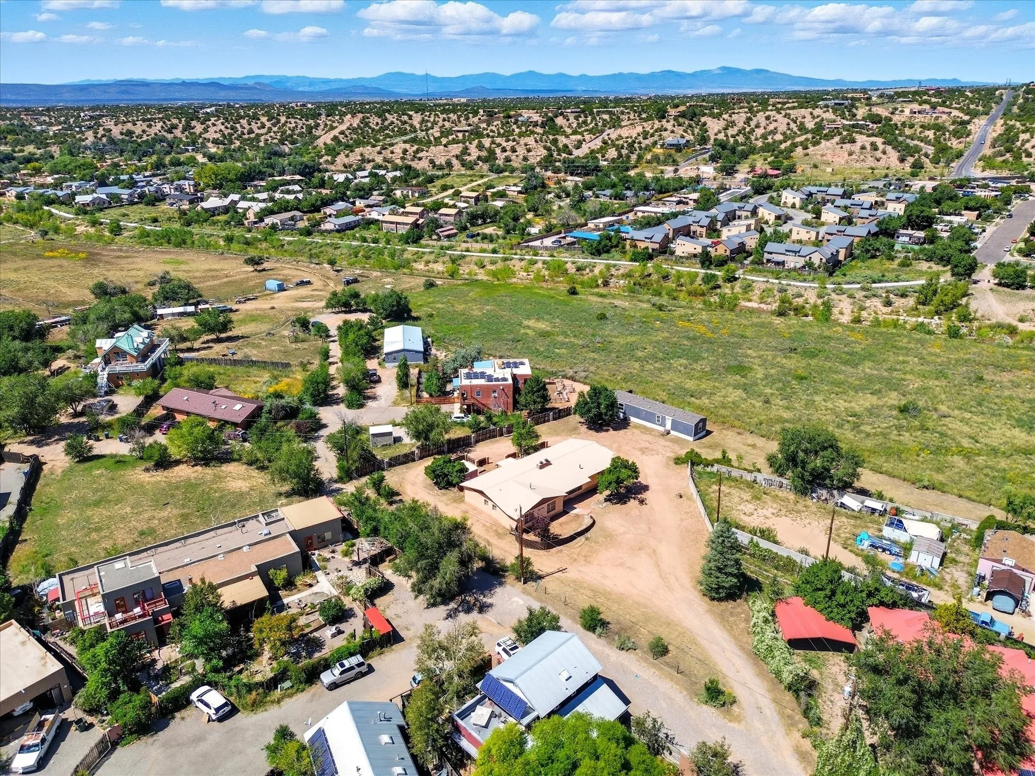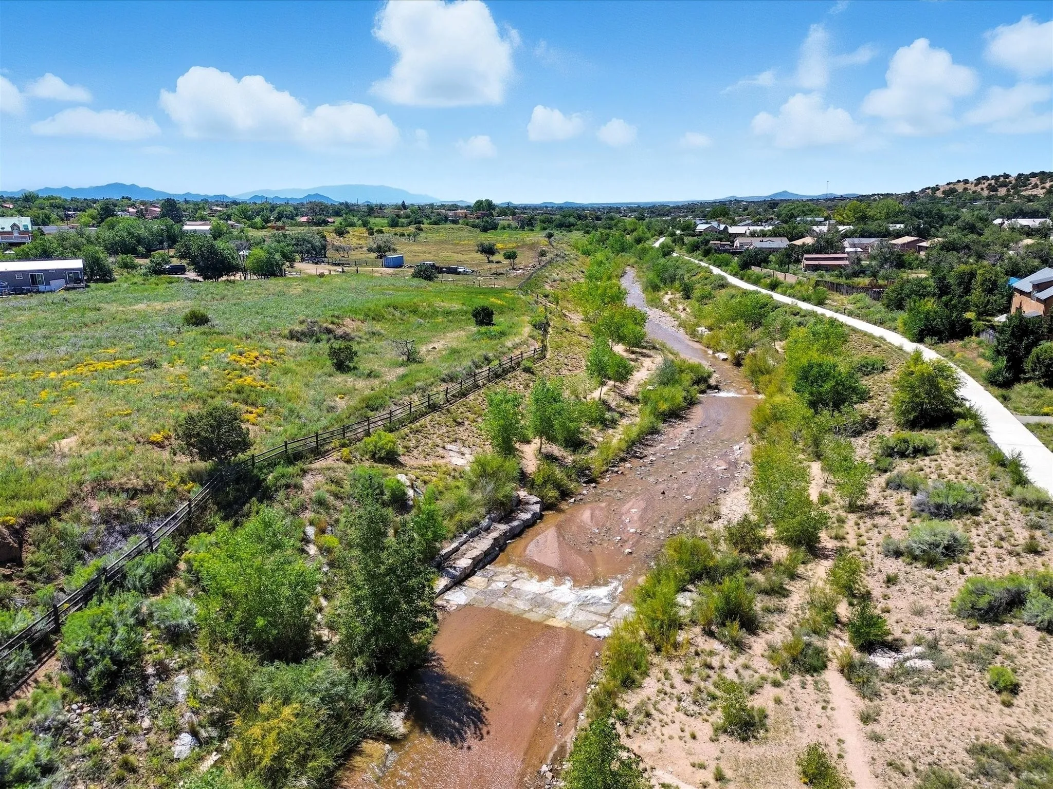 Exceptional opportunity on ¾ acre, backing to open space with the Santa Fe River just beyond. This unique property offers a main residence, a private studio apartment, and a manufactured homeāideal for guest quarters, multi-generational living, or income potential. The main house is adobe and has original hardwood floors throughout (under the carpet), a wood burning double-sided fireplace, four bedrooms and two bathrooms. The studio has a large living space, kitchen and full bathroom. The 2019 manufactured home includes two bedrooms, two bathrooms and refrigerated air. Enjoy privacy, space and mountain views, just 3 miles from the Santa Fe plaza and near trails, shopping, dining, parks, and schools.