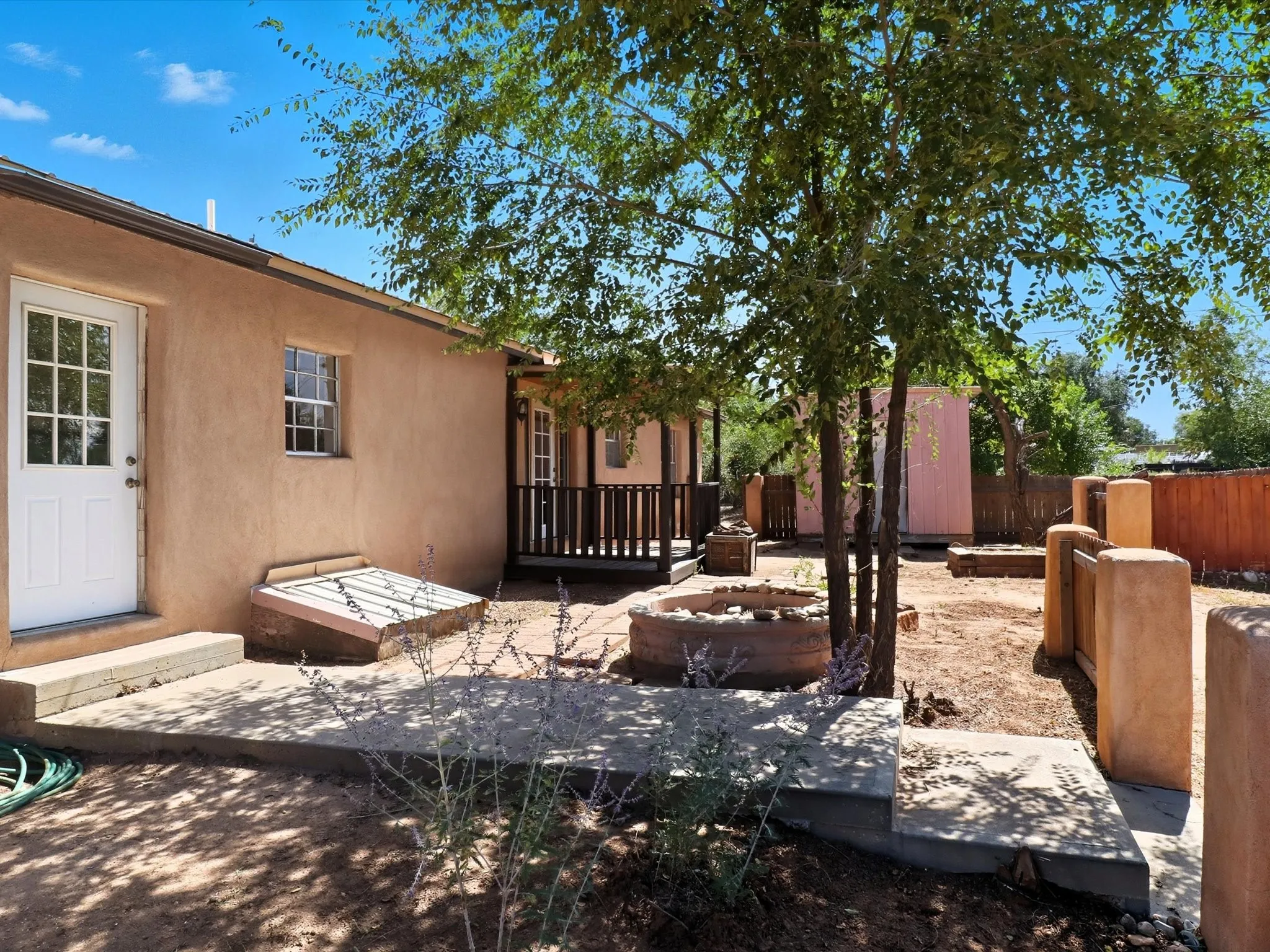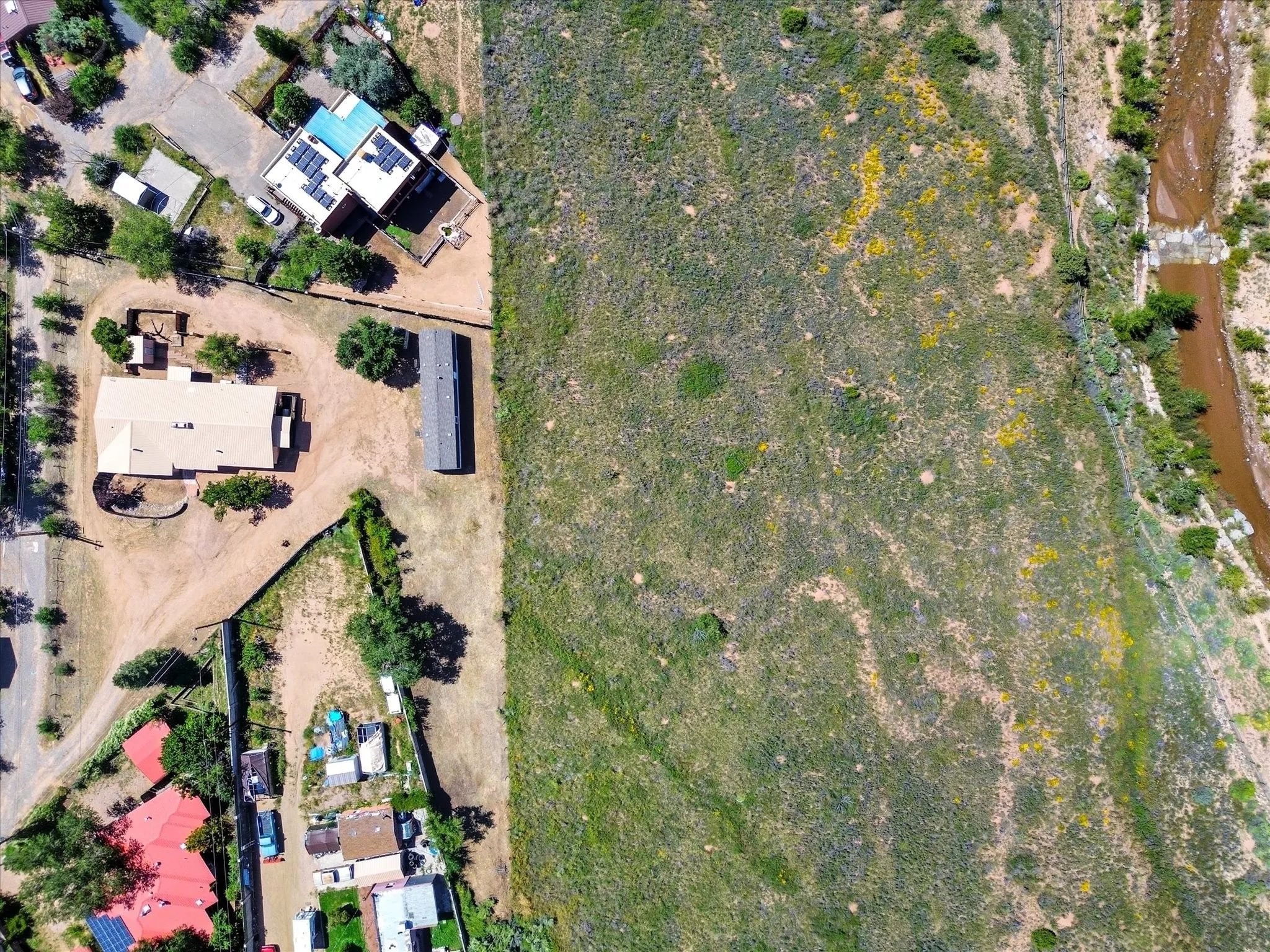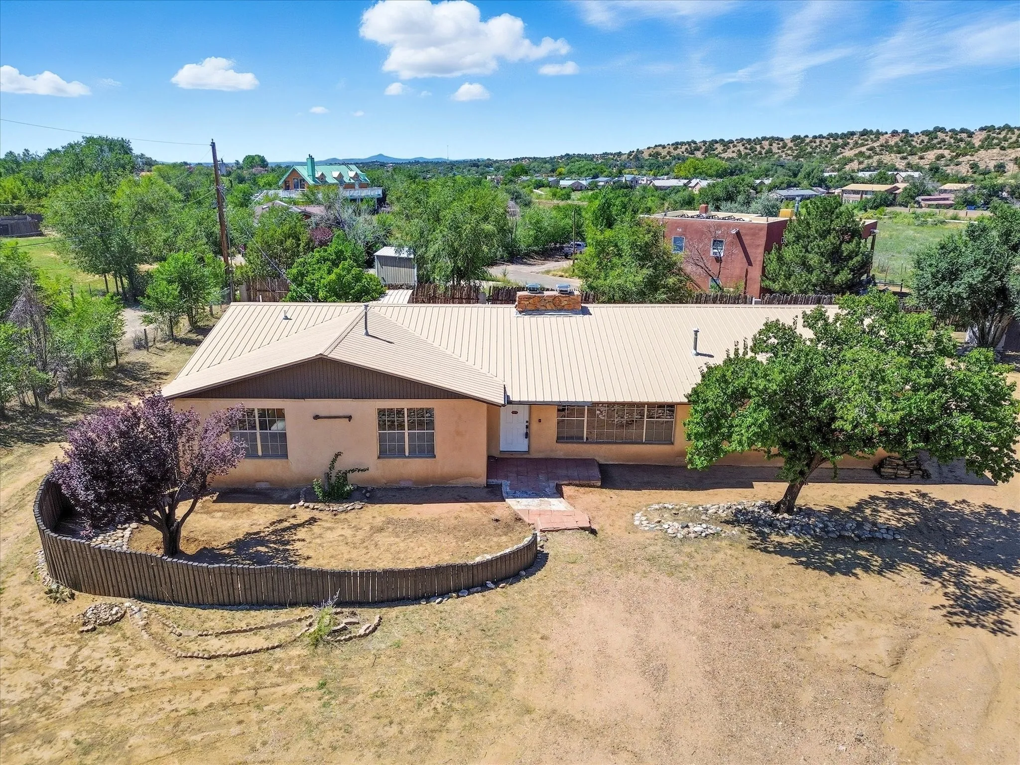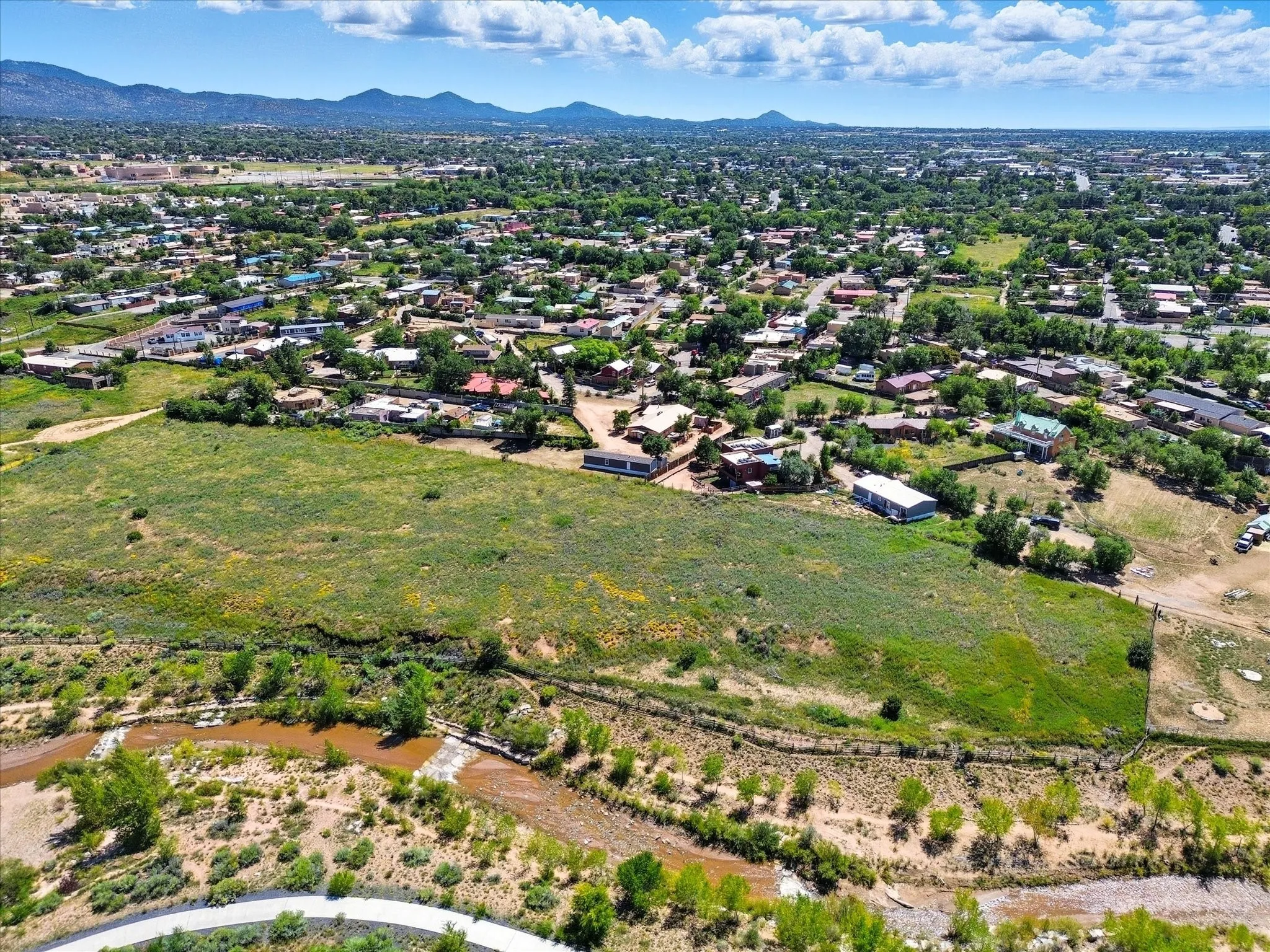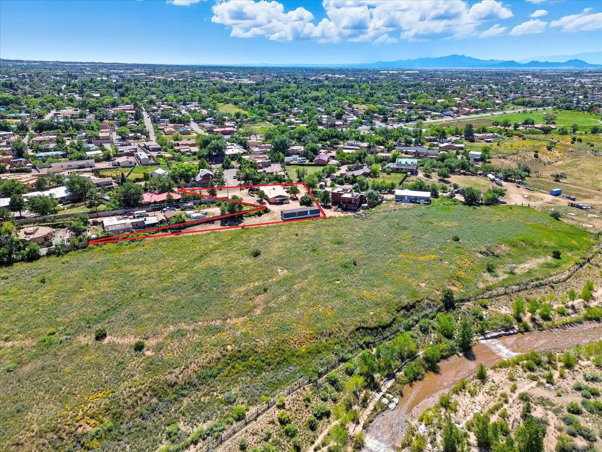 Exceptional opportunity on ¾ acre, backing to open land with the Santa Fe River just beyond. This unique property offers a main residence, a private studio apartment, and a manufactured homeāideal for guest quarters, multi-generational living, or income potential. The main house is adobe and has original hardwood floors throughout (under the carpet), a wood burning double-sided fireplace, four bedrooms and two bathrooms. The studio has a large living space, kitchen and full bathroom. The 2019 manufactured home includes two bedrooms, two bathrooms and refrigerated air. Enjoy privacy, space and mountain views, just 3 miles from the Santa Fe plaza and near trails, shopping, dining, parks, and schools.