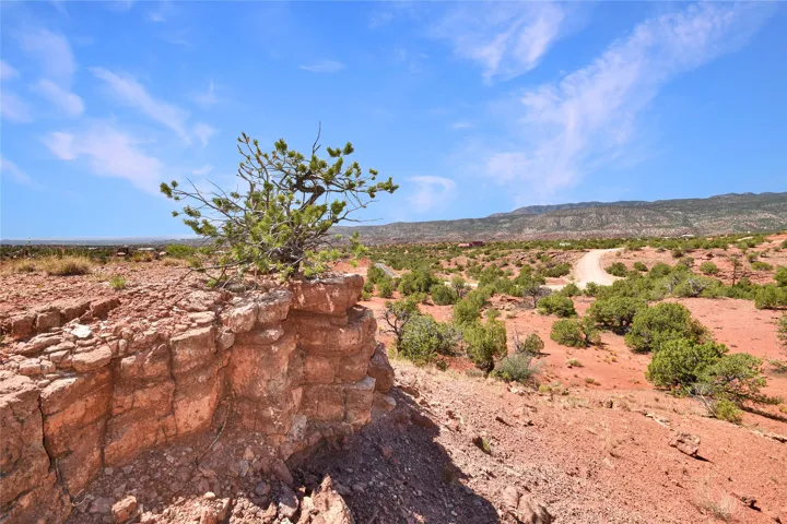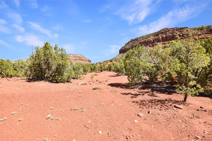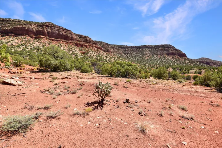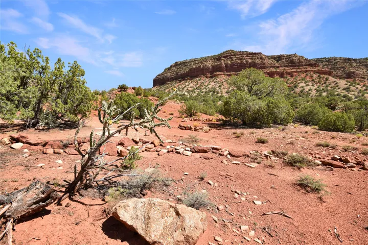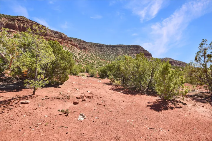 11.2 acres of pristine land sheltered by gorgeous red-rock cliffs to the north (Mesa de las Casas) and east (National Forest on Mesa de los Datiles), with spectacular views of the Jemez River bosque and Jemez Valley from the eastern side. Secluded from neighbors, yet just minutes from Jemez Springs and a short 45 minute commute into Rio Rancho. All-native vegetation features mature pinyon and juniper trees, mountain mahogany, sagebrush and wildflowers (feather daleas, Colorado four o’clocks, daisies, and scarlet hedgehog). This terrace is steeped in history: 200-300 million year old petrified wood and Dimetrodon dinosaur fossils have been discovered nearby! Enjoy the most spectacular sunrises and sunsets surrounded by year-round beauty. Situated on a county-maintained road.