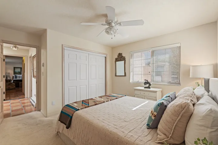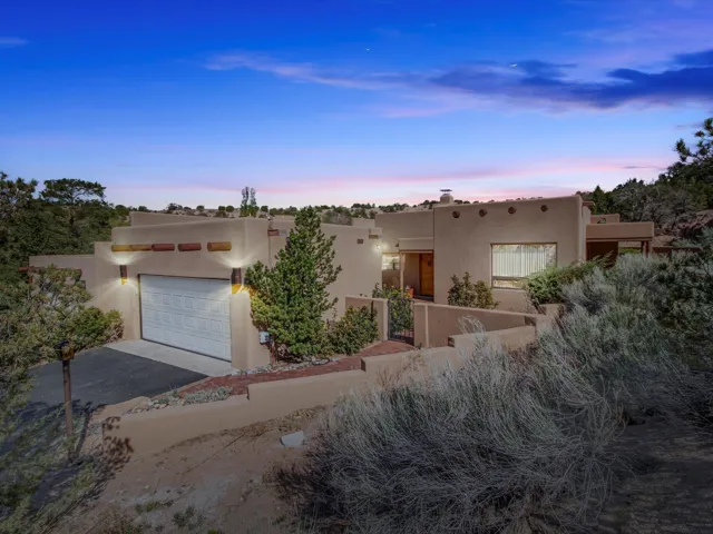 Perched above the city with beautiful Southern views of the Ortiz/Sandia and overlooking Santa Feās beloved Ortiz Dog Park, this 2,814 sq. ft. residence offers 3 bedrooms and 3 bathrooms, including a beautifully designed, attached 1-bedroom, 1-bath guest house. The guest house has an interior connection to the home yet has its own private entrance, providing exceptional flexibility for extended family, guests, or income potential.