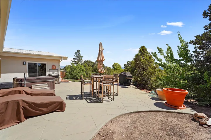 No nearby development in backyard area = rare peace, privacy & views of Santa Fe Ski Hill and Veterans Memorial Highway in backdrop.