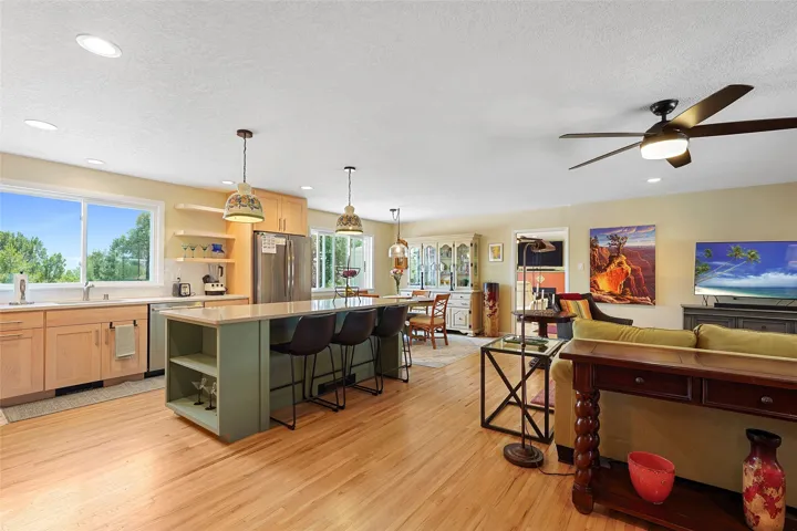 Fully remodeled open-concept kitchen with counter seating