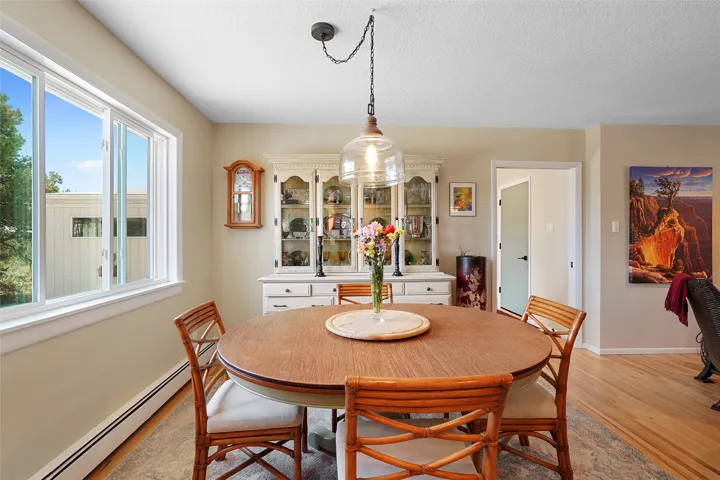 Dining nook with sunny backyard views