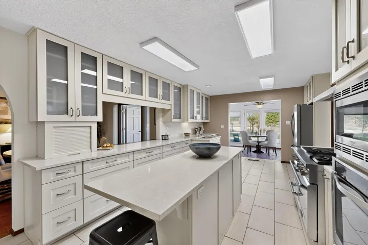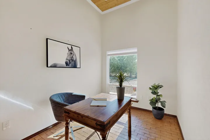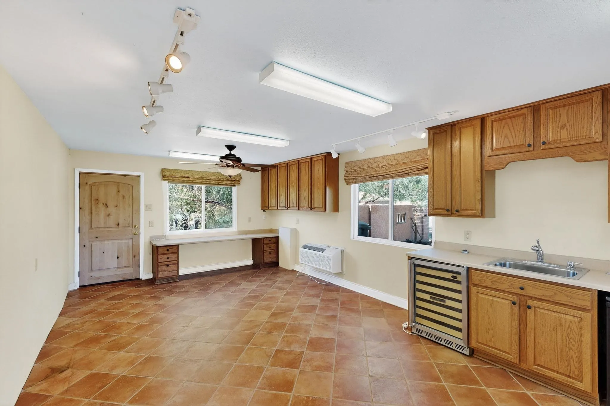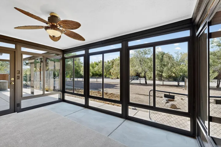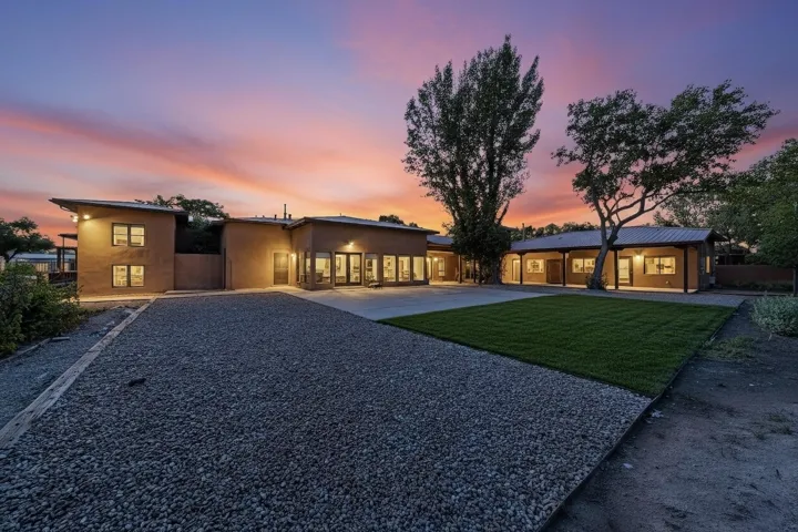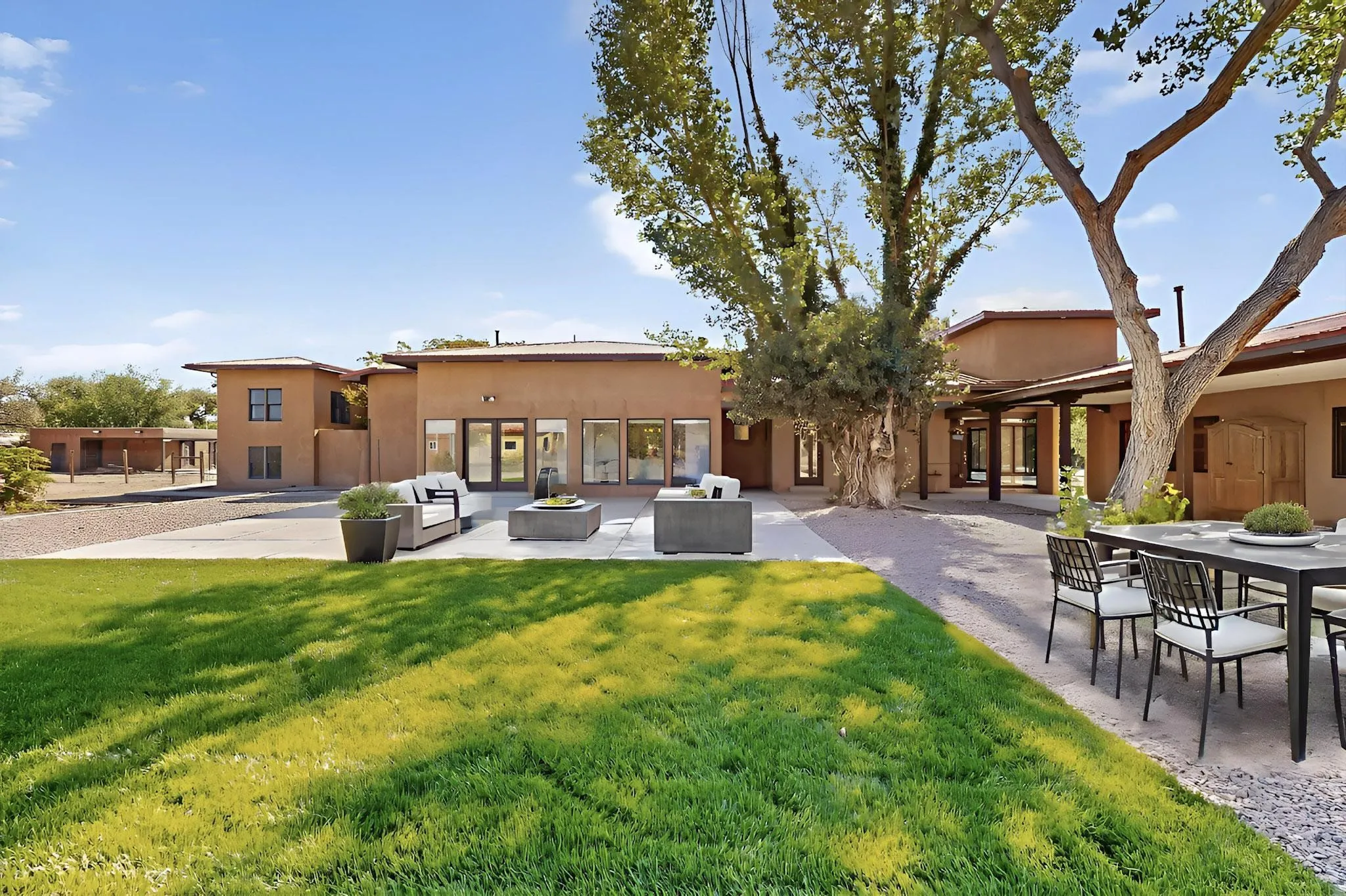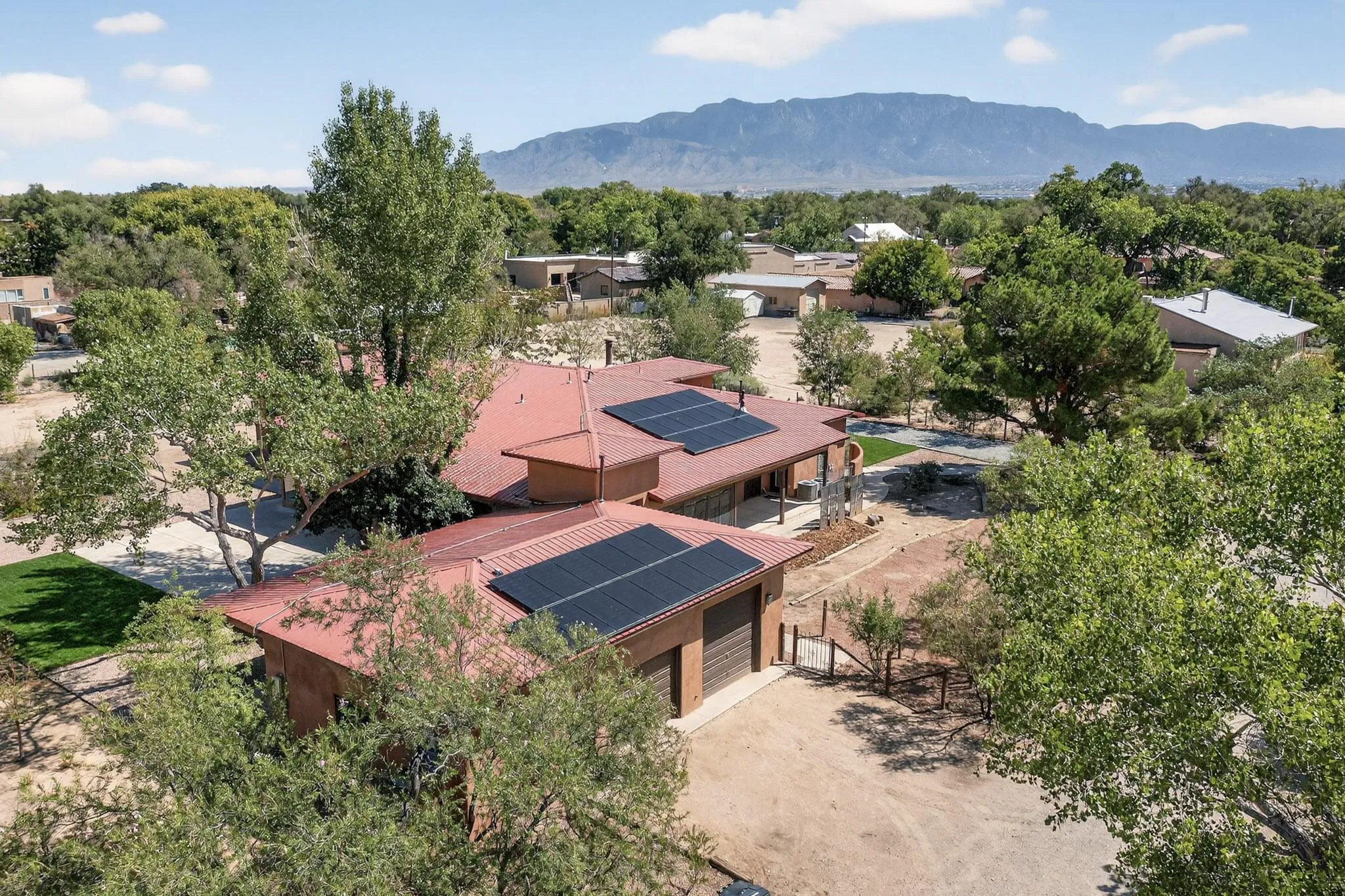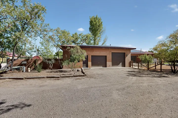 Nestled in the prestigious Village of Los Ranchos, just off scenic Rio Grande Blvd, this beautiful and spacious one-of-a-kind property offers the perfect blend of comfort, functionality, and creative potential. It is ideal for multi-generational living, working from home, and pursuing hands-on or artistic passions. This exceptional home truly has something for everyone. This North Valley residence boasts cosmetic and mechanical renovations and boasts a paid solar system. The amenities are as flexible as they are luxurious, featuring several multi-purpose rooms that can be tailored to your needs-perfect for additional office space, creative pursuits, gaming, a gym, a library, or even a home theater. At the heart of the home, the chef’s kitchen exudes sophistication, featuring a Thermador 6-burner gas cooktop with a griddle and double convection ovens with an extended breakfast and seating area-perfect for everyday living or entertaining family and friends. Car enthusiasts and creatives will love the heated detached garage, which includes a mechanic’s pit with a steel engine hoist and a finished, 334 sq ft attached studio complete with HVAC, running water, and electricity. A large separate workshop and an additional covered carport provide even more space for projects, hobbies, or storage. The primary suite serves as a tranquil retreat, showcasing a unique split-level layout with a serene lower space perfect for yoga, meditation, or reading, and a loft space above that is ideal for a lounge, office, or private escape. On city water with private irrigation rights, the expansive lot offers potential for flower gardens, vegetables, fruit trees, or even a small orchard. This is a rare opportunity to own a property that blends elegance, space, and creative potential in one of Albuquerque’s most desirable neighborhoods. This could be your ABQ Dream Home!