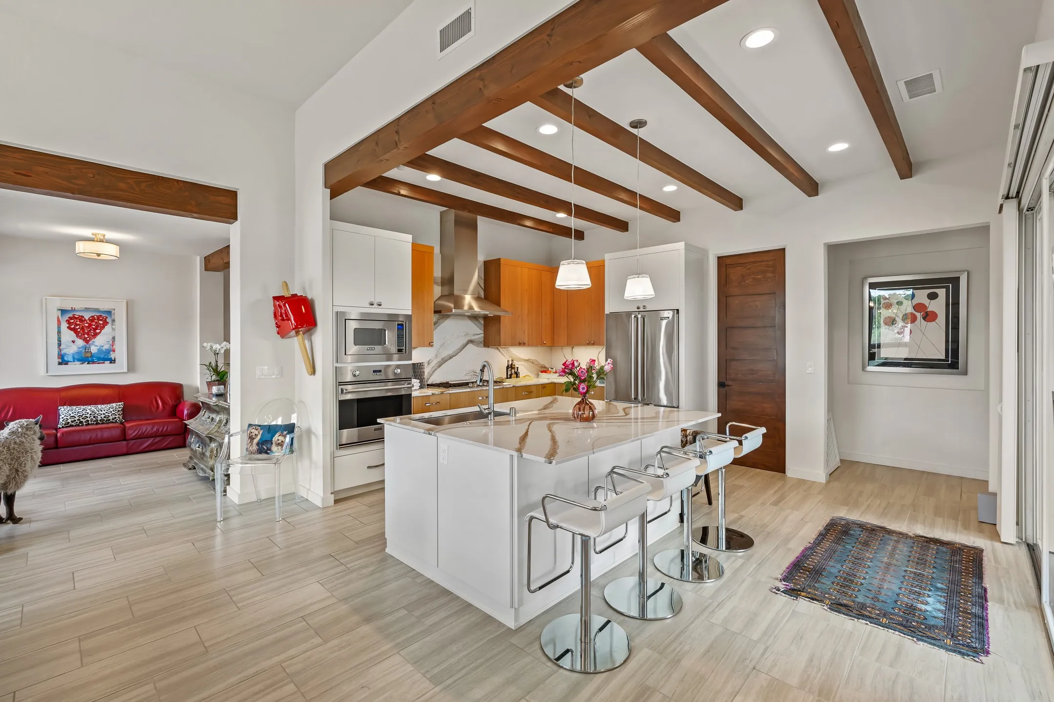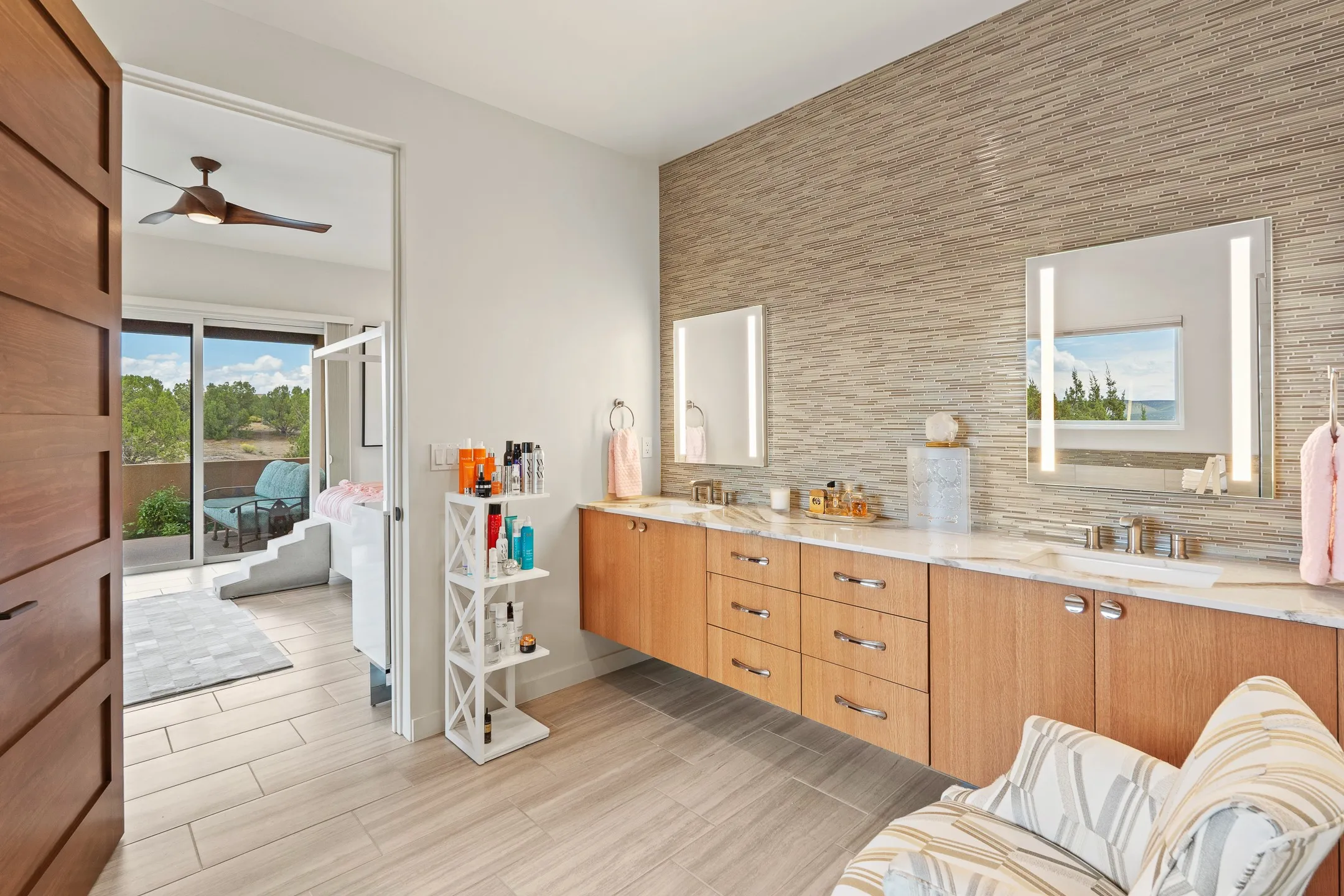 Discover the perfect blend of modern luxury and Southwest charm in this newer home built in 2022 and located in Las Campanas, a premier gated community located just 8 miles from town. Designed in a striking contemporary Pueblo style, the home boasts an open-concept floor plan that seamlessly connects indoor and outdoor spaces, all while framing the mountain views and famous sunsets of Santa. Enjoy multiple professionally landscaped outdoor living areas, thoughtfully designed with water features for relaxation and ambiance. Whether itās morning coffee, dining al fresco, entertaining or unwinding, this home offers serene outdoor retreats in every direction. Inside, the layout is open and light-filled, with high-end finishes and thoughtful details throughout. The spacious primary suite is a true sanctuary, featuring a generous seating area, a luxurious spa-like bath with a soaking tub, walk-in shower, dual vanities, and an expansive closet complete with built-in organizers. Eco-conscious amenities include solar panels and two electric vehicle charging hookups, offering both sustainability and convenience. The home also includes natural gas, central heating, and air conditioning to ensure year-round comfort. Perfect for full-time living or as a lock-and-leave second home, this property offers the ideal combination of style, efficiency, and tranquility. HOA fees cover road and common area maintenance, 24-hour roaming security, and on-site emergency medical technicians. Membership to The Club at Las Campanas is optional, offering amenities such as indoor and outdoor swimming pools, tennis courts, a fitness center, equestrian facilities, fine dining options, and two Jack Nicklaus Signature Golf Courses.