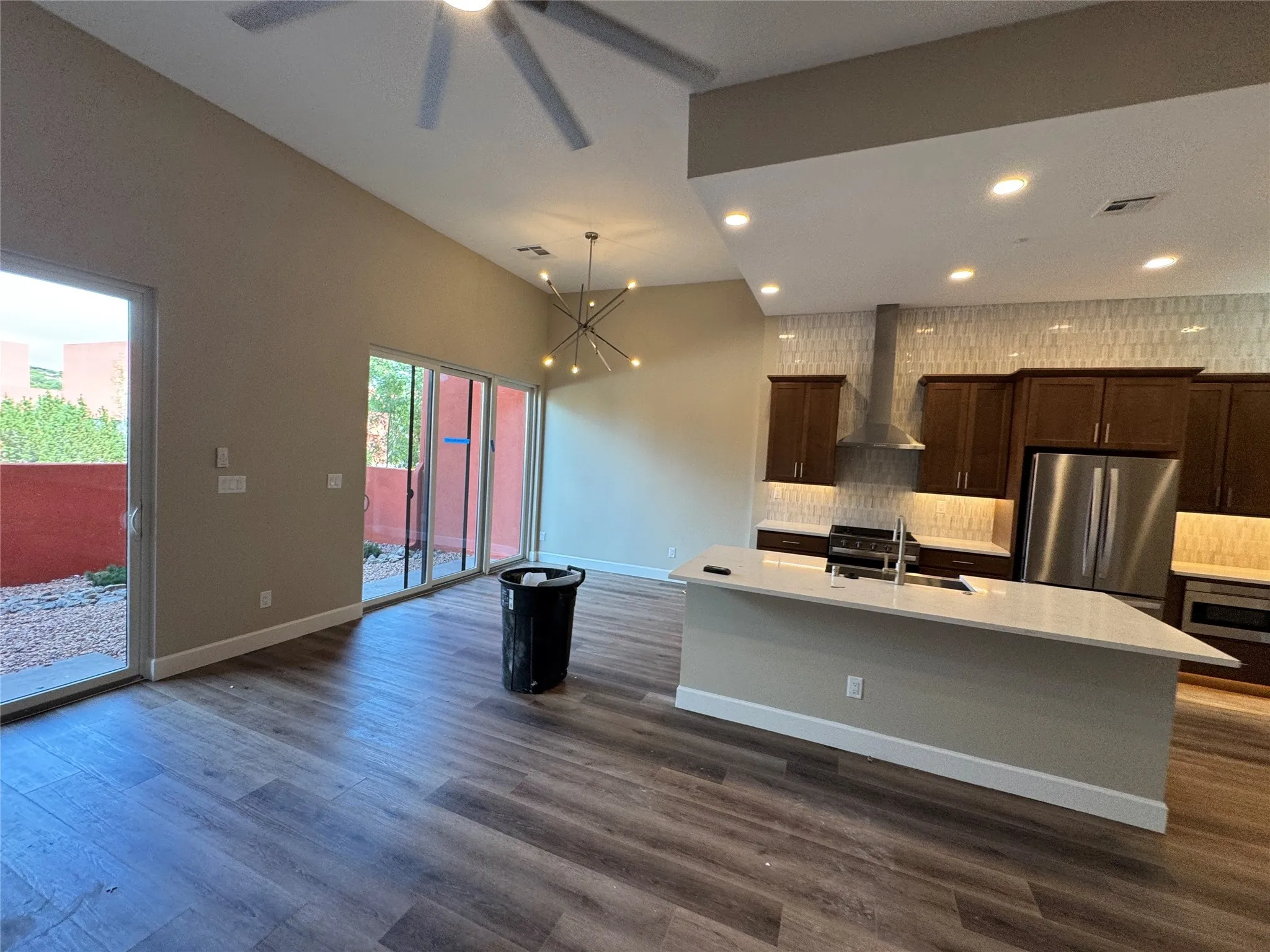 Welcome to Unit #43 at Zocalo, Santa Fe ā This exceptional end unit is a gem within the community, combining luxury and practicality. Step into the spacious great room, featuring MODERN GRAY TONES and beautiful SPC luxury vinyl flooring. The space is enhanced by a sleek beverage bar and a contemporary fireplace, perfect for entertaining or relaxing evenings.