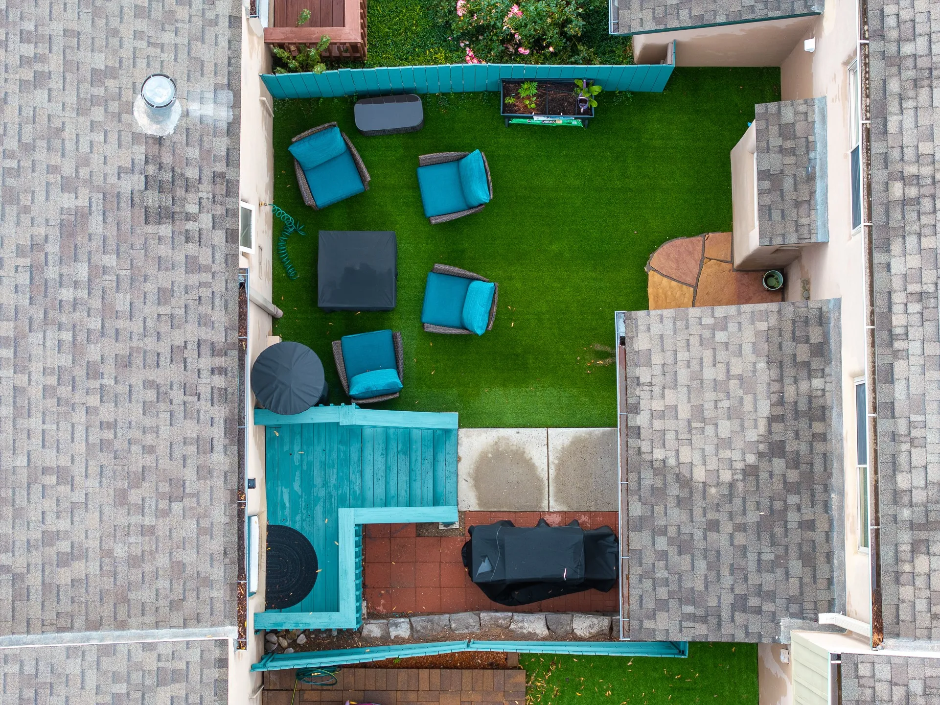 The back patio area separates the main home from the garage, and it is fully enclosed and covered with pet-friendly turf so your four-legged friends have a comfortable living space, too! A large, two-car garage with storage space completes the package.