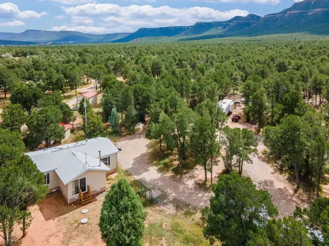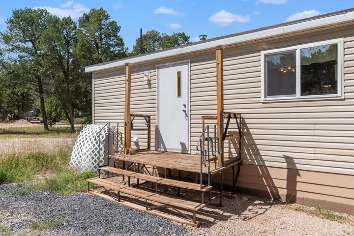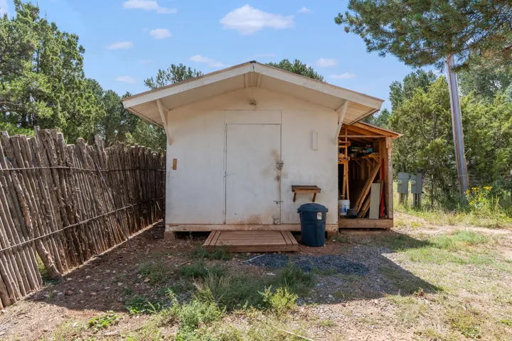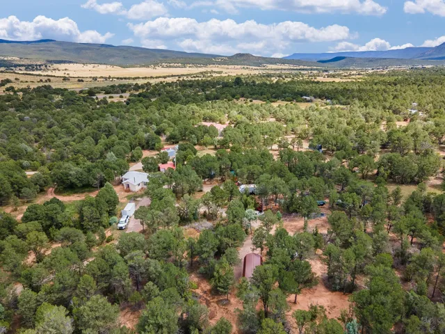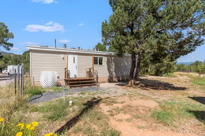 Escape to your own private mountain haven with this charming property tucked away on 4 wooded acres in Rowe, NM. Located just 30 minutes from Santa Fe, 40 minutes from Las Vegas, and less than 15 minutes to Pecos, this property is ideally situated for both convenience and adventure. Surrounded by pinon and other native trees and local wildlife, this retreat offers peace, seclusion, and plenty of room to grow. Roughly 1/3 of the property is fenced in, making an ideal dog run.
