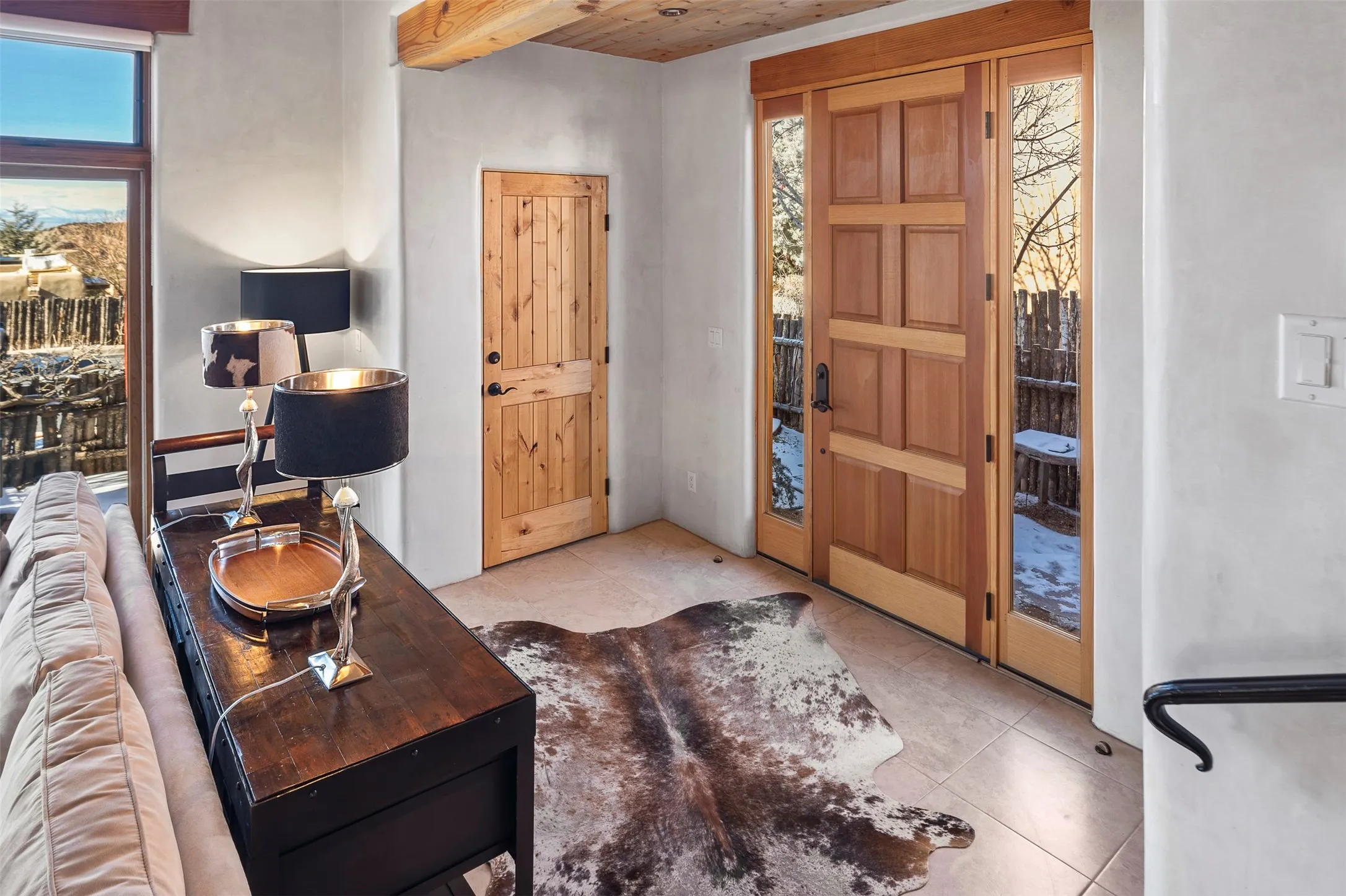 Nestled within the exclusive Bishopās Lodge Villas, just 2.5 miles north of the historic Santa Fe Plaza, this impeccably renovated villa blends the soul of traditional Pueblo architecture with the elegance of contemporary design. Adjacent to 200 acres of the Santa Fe National Forest, the property offers both a serene escape into nature and effortless access to the cityās renowned cultural heartbeat. Spanning approximately 1,800 square feet, this freestanding unit enjoys extraordinary privacy, uninterrupted mountain views, and the coveted amenities of a gated community neighboring the world-class Bishopās Lodge Resort, managed by Auberge. Residents enjoy access to fine dining, a luxurious spa, equestrian facilities, and a sparkling community pool set against panoramic vistas. Inside, the villa reflects Santa Feās timeless character with soaring ceilings, exposed vigas, hand-troweled plaster walls, and tile floors. A newly redesigned living room features floor-to-ceiling windows framing the desert landscape and a dramatic fireplace anchoring the space. Just above, the gourmet kitchen seamlessly opens to the dining area, creating a fluid setting for entertaining. Each of the two bedrooms is a private sanctuary, with kiva fireplaces, en-suite baths, and doors opening to secluded patios where desert breezes and vivid sunsets become part of the daily rhythm. Thoughtful upgradesāincluding a new roof, central HVAC, and modern appliancesāmake this residence move-in ready, while recent enhancements preserve its rustic yet refined aesthetic. Step outside to discover patios bordered by native landscaping, ideal for morning coffee, alfresco dining, or evenings spent under the brilliant New Mexico sky. For the adventurous spirit, hiking trails begin just beyond your doorstep, weaving through the protected wilderness of the National Forest.