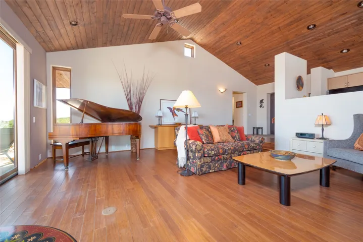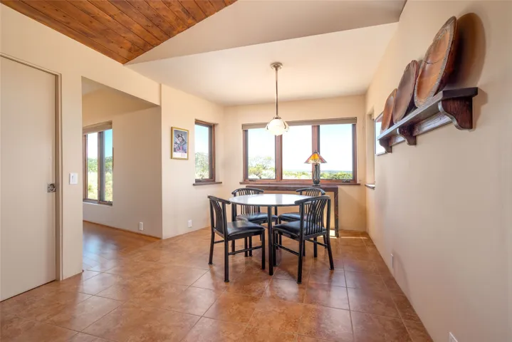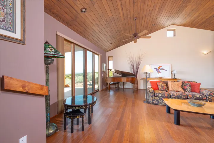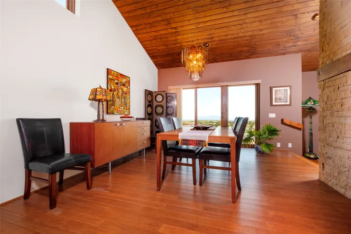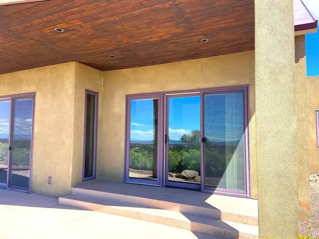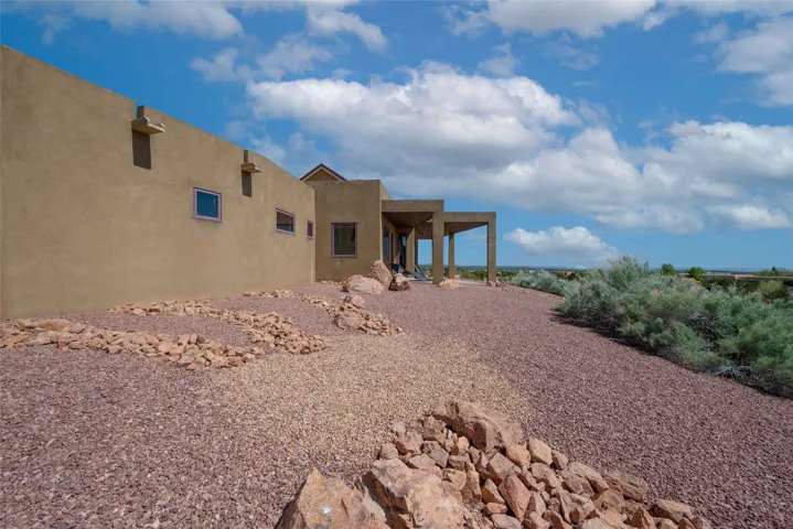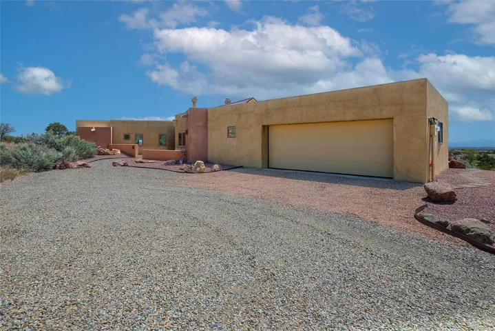 This stunning custom one-owner home on 2.8 acres offers breathtaking mountain and sunset views with a design that blends elegance and comfort. The light-filled open main living area is anchored by a striking stone veneer fireplace, complemented by bamboo wood flooring and soaring cathedral wood deck ceilings. A chefās kitchen with quartz countertops, gas cooking, and modern finishes pairs beautifully with radiant heating and a central vacuum system for convenience. The expansive primary suite boasts sweeping views, a generous walk-in closet, and a spa-like bath retreat, while two guest bedrooms and a separate office provide space for family and work. The spacious garage includes a lockable storage room, and spacious covered patios invite year-round outdoor living while soaking in the panoramic scenery. The Dos Griegos community is conveniently located for easy access to I-25 and Santa Fe. Local dining, shopping and recreation options are within minutes of the home.