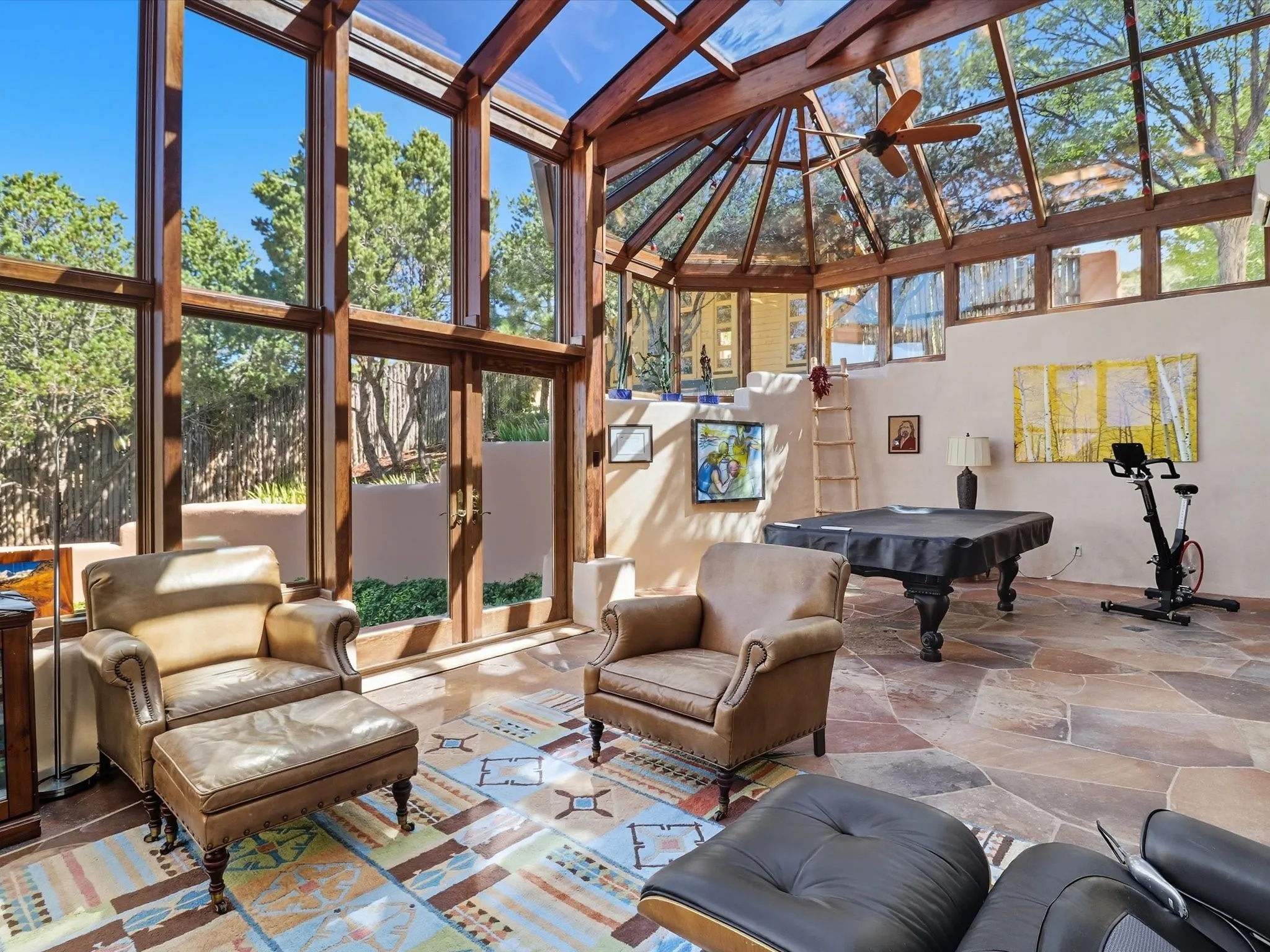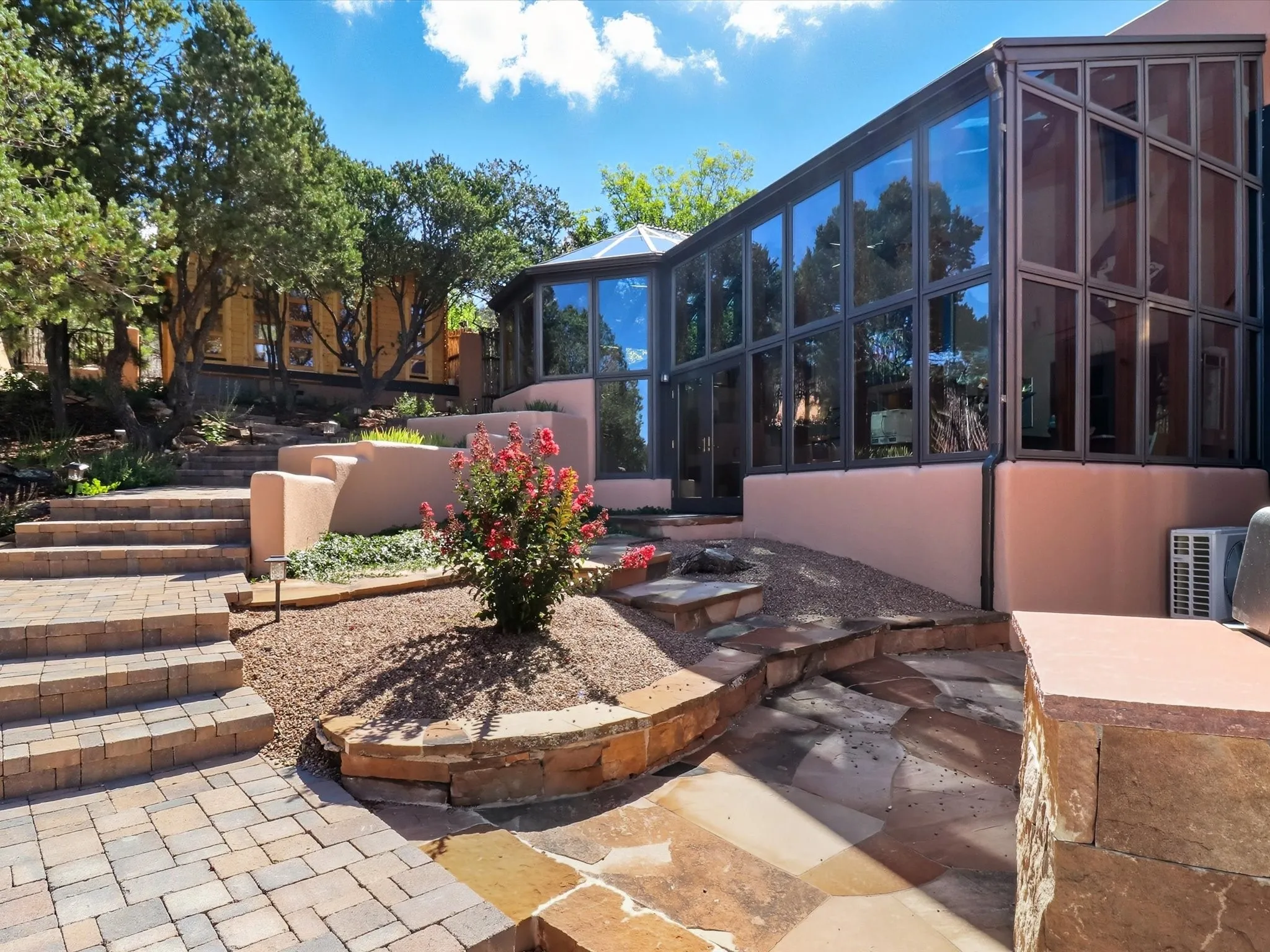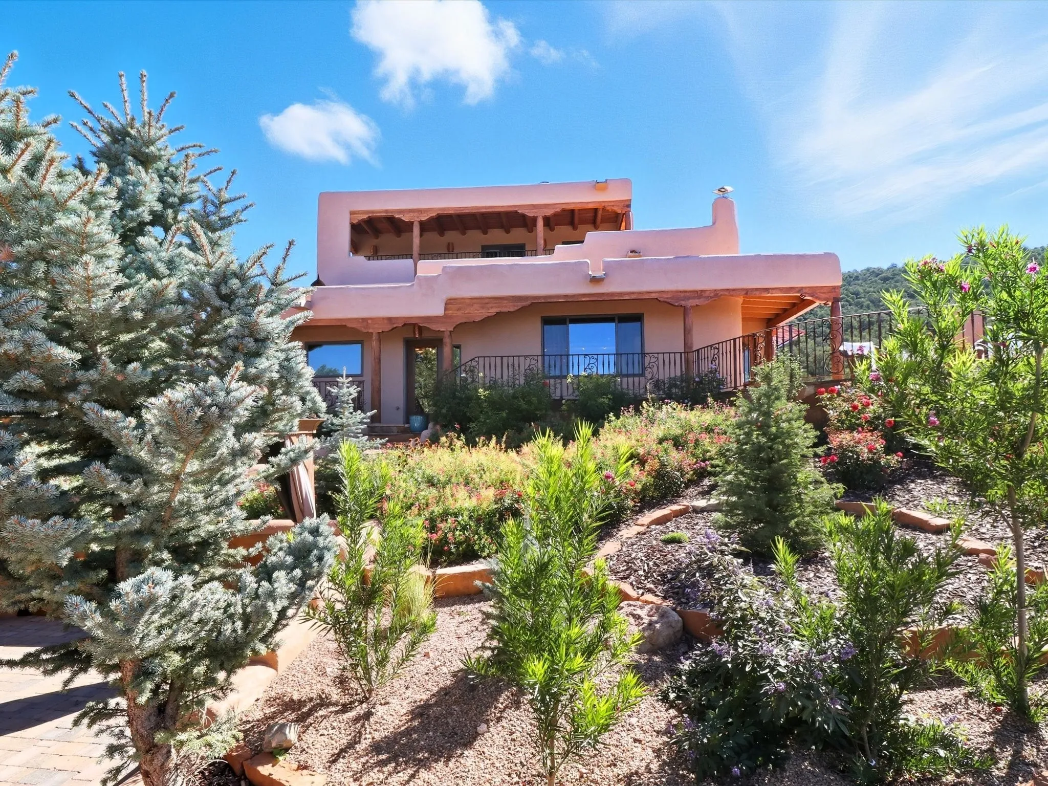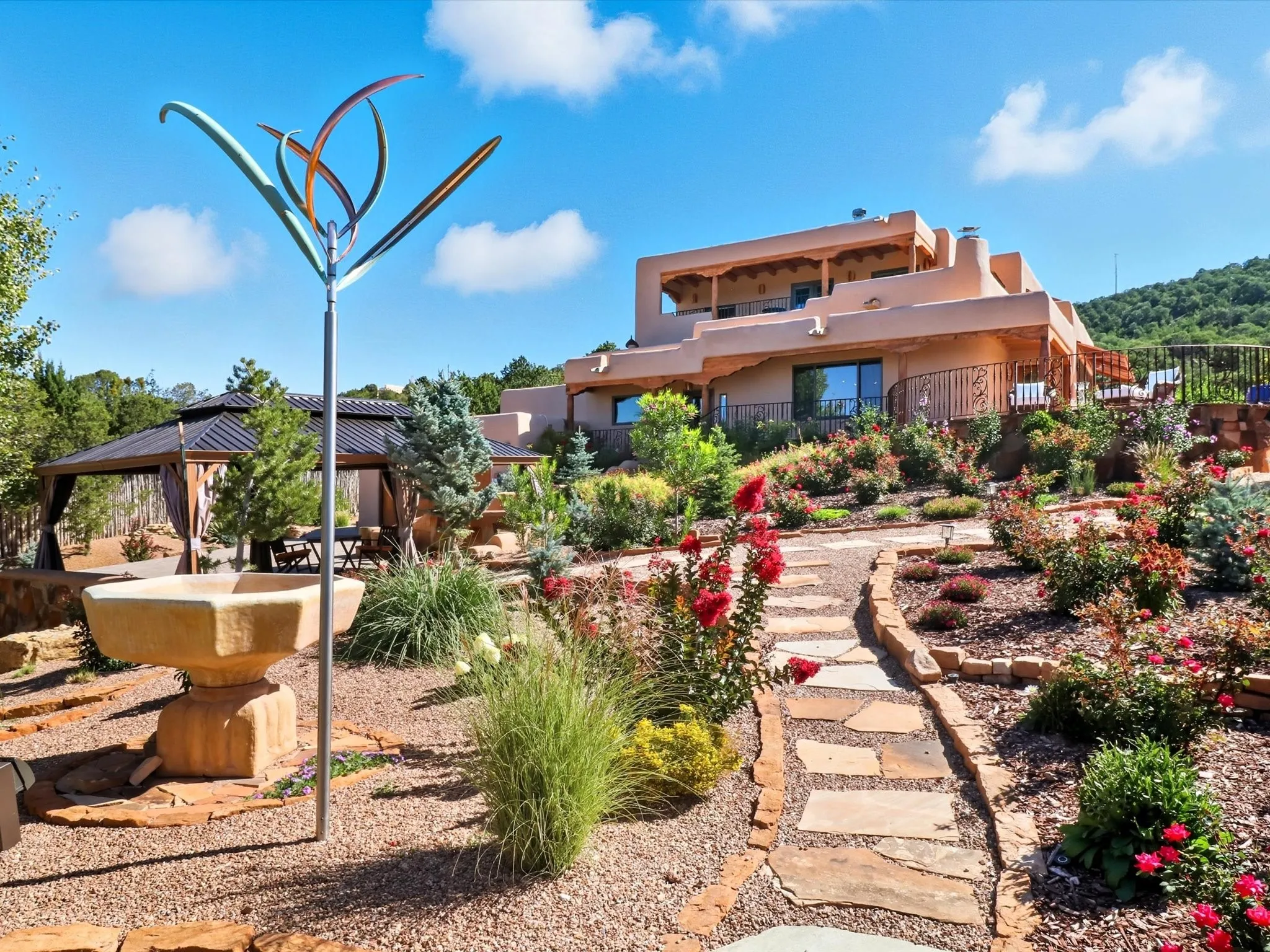 Be prepared to be inspiredāinspired to live effortlessly in a mountain escape where Old World charm meets modern-day refinement. This elevated estate isnāt just a home, itās a sanctuary, a hideaway, a place where sunsets stretch for miles and every corner whispers character. Step through newly designed gardens with stone walkways and an elegant driveway that sets the stage for whatās within. Inside, custom wood accents, artisan ironwork, walnut floors, and hand-troweled plaster walls warm the soul. Two living areas ā plus a sunlit, heated, and cooled solarium with a sauna off to the side ā offer spaces to gather and relax. The primary suite is its own retreat, with custom entry doors, a sitting area anchored by a kiva fireplace, and direct access to a private deck where sunsets put on their nightly show. The owners have thoughtfully elevated this property with recent upgrades: a transformed garden landscape, extensive stonework, Anderson windows and doors, and major enhancements to the arroyo. Outdoors, the amenities read like a resortāsolar panels, a pool with two hot tubs and a waterslide, plus all-new heating systems to keep each pool zone comfortable year-round. And thereās more: an amazing shed ready for conversion to living space, plus the possibility of adding a casita at the top of the lotāperfect for guests or creative ventures. This isnāt just a property. Itās a rare opportunity to claim your own mountain retreat, one where history, craftsmanship, and modern comfort converge.