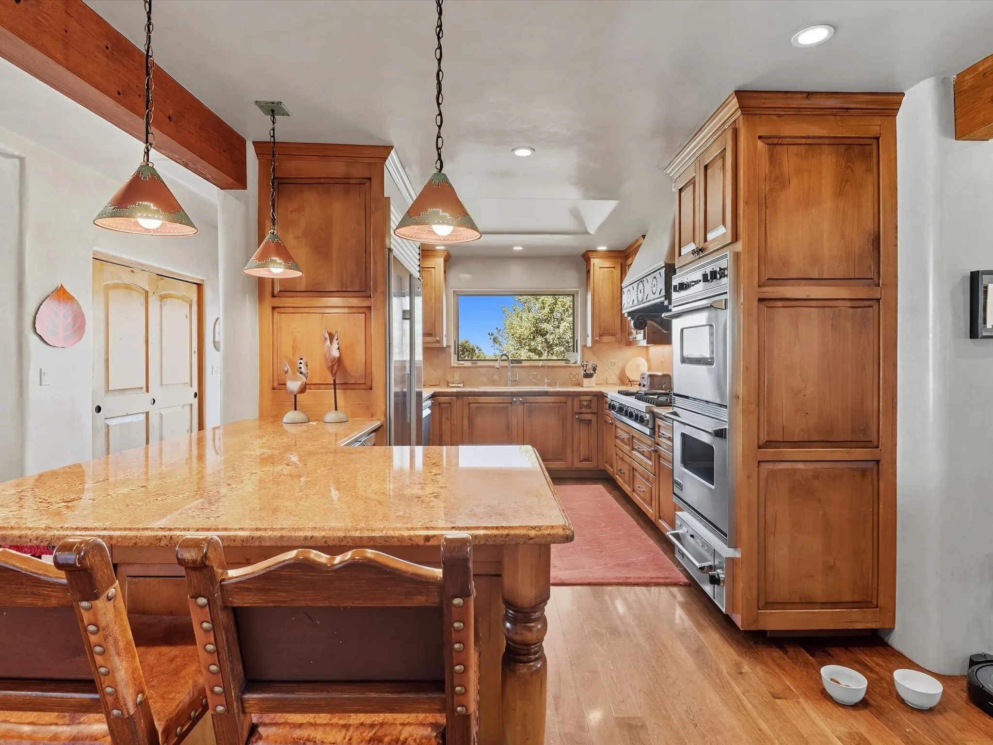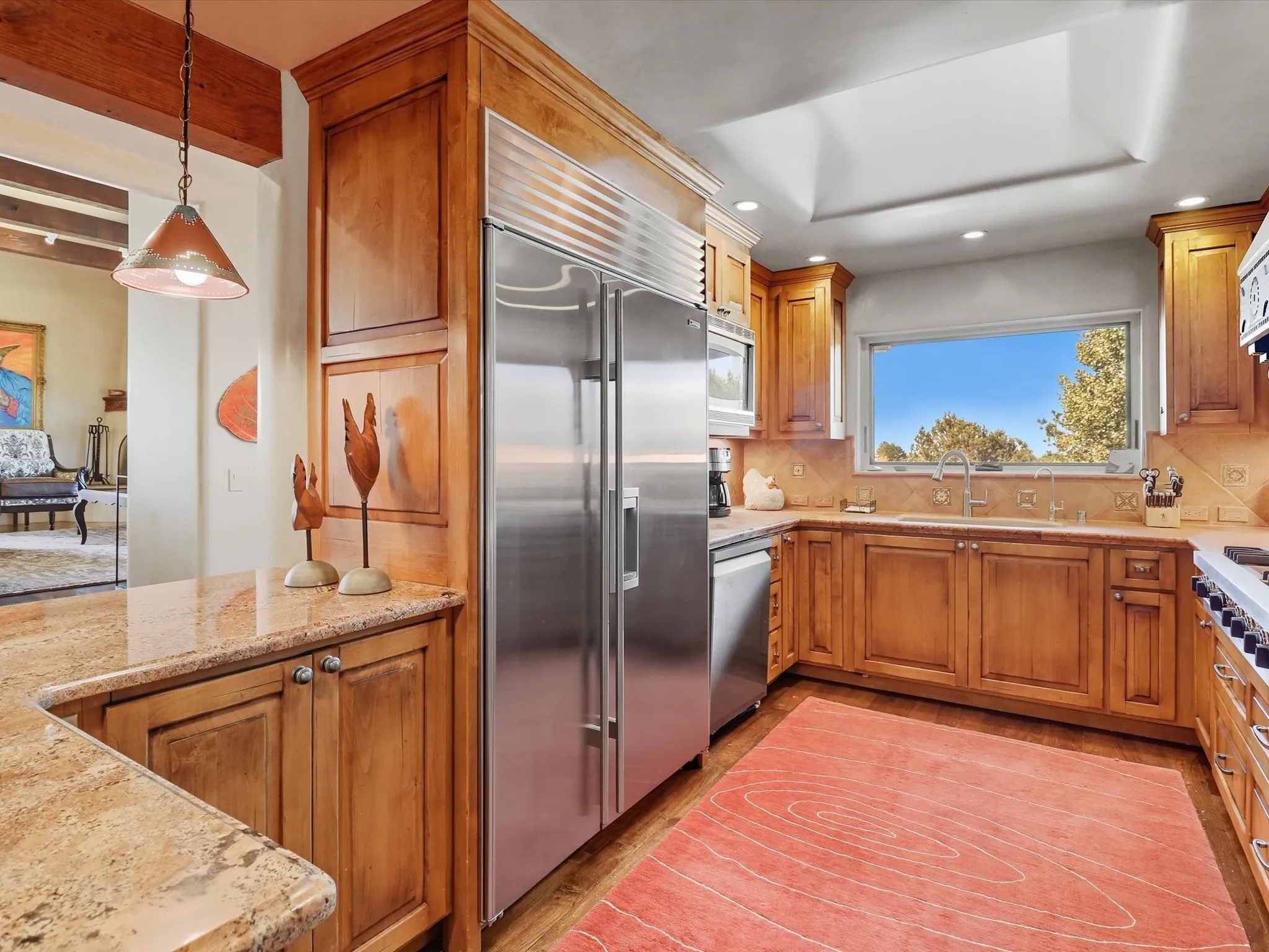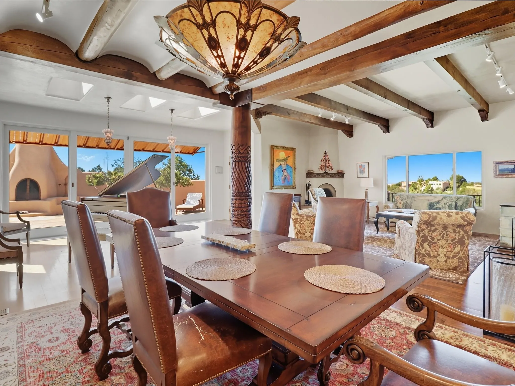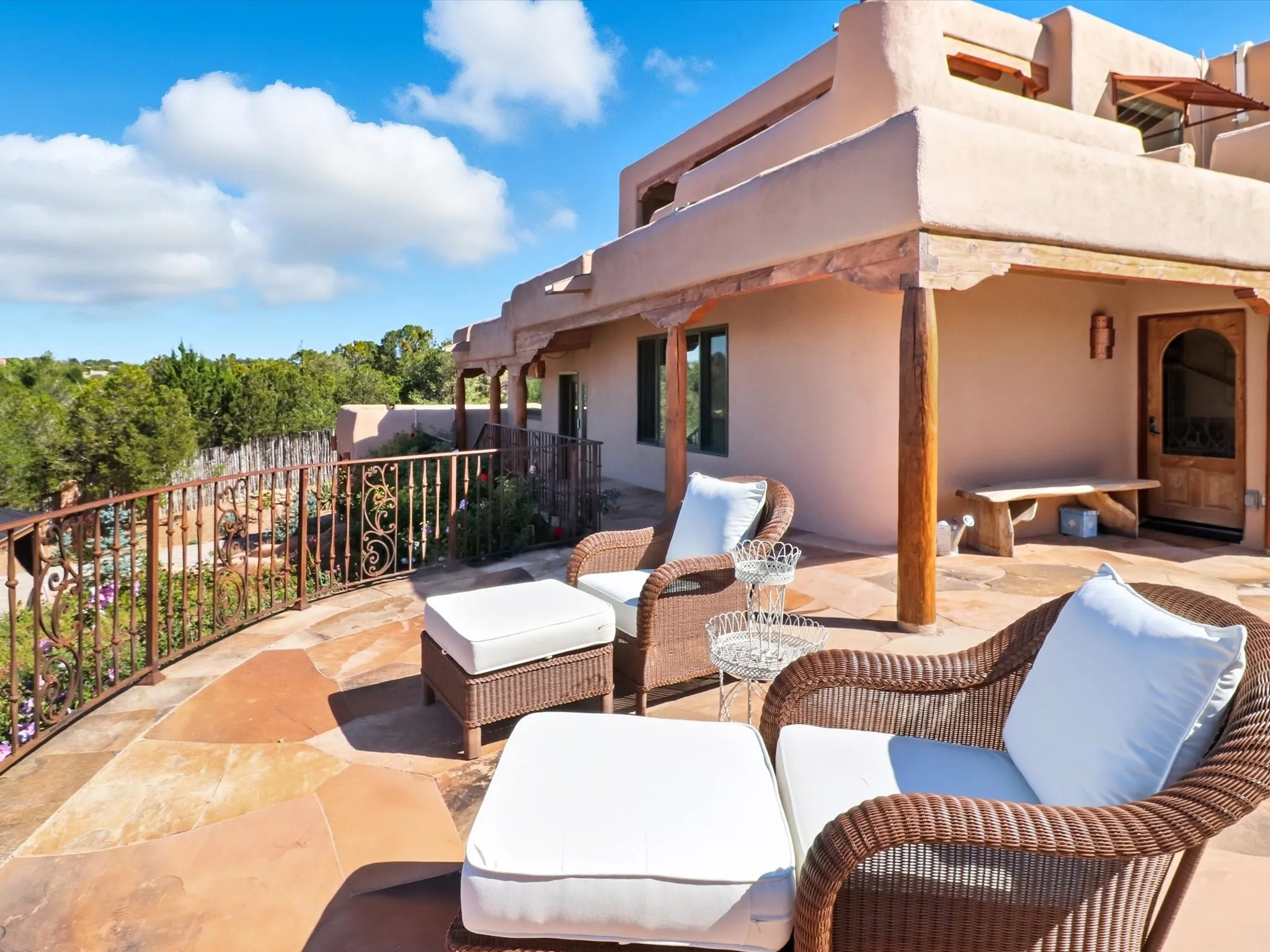 Be prepared to be inspiredāinspired to live effortlessly in a mountain escape where Old World charm meets modern-day refinement. This elevated estate isnāt just a home, itās a sanctuary, a hideaway, a place where sunsets stretch for miles and every corner whispers character. Step through newly designed gardens with stone walkways and an elegant driveway that sets the stage for whatās within. Inside, custom wood accents, artisan ironwork, walnut floors, and hand-troweled plaster walls warm the soul. Two living areas ā plus a sunlit, heated, and cooled solarium with a sauna off to the side ā offer spaces to gather and relax. The primary suite is its own retreat, with custom entry doors, a sitting area anchored by a kiva fireplace, and direct access to a private deck where sunsets put on their nightly show. The owners have thoughtfully elevated this property with recent upgrades: a transformed garden landscape, extensive stonework, Anderson windows and doors, and major enhancements to the arroyo. Outdoors, the amenities read like a resortāsolar panels, a pool with two hot tubs and a waterslide, plus all-new heating systems to keep each pool zone comfortable year-round. And thereās more: an amazing shed ready for conversion to living space, plus the possibility of adding a casita at the top of the lotāperfect for guests or creative ventures. This isnāt just a property. Itās a rare opportunity to claim your own mountain retreat, one where history, craftsmanship, and modern comfort converge.
