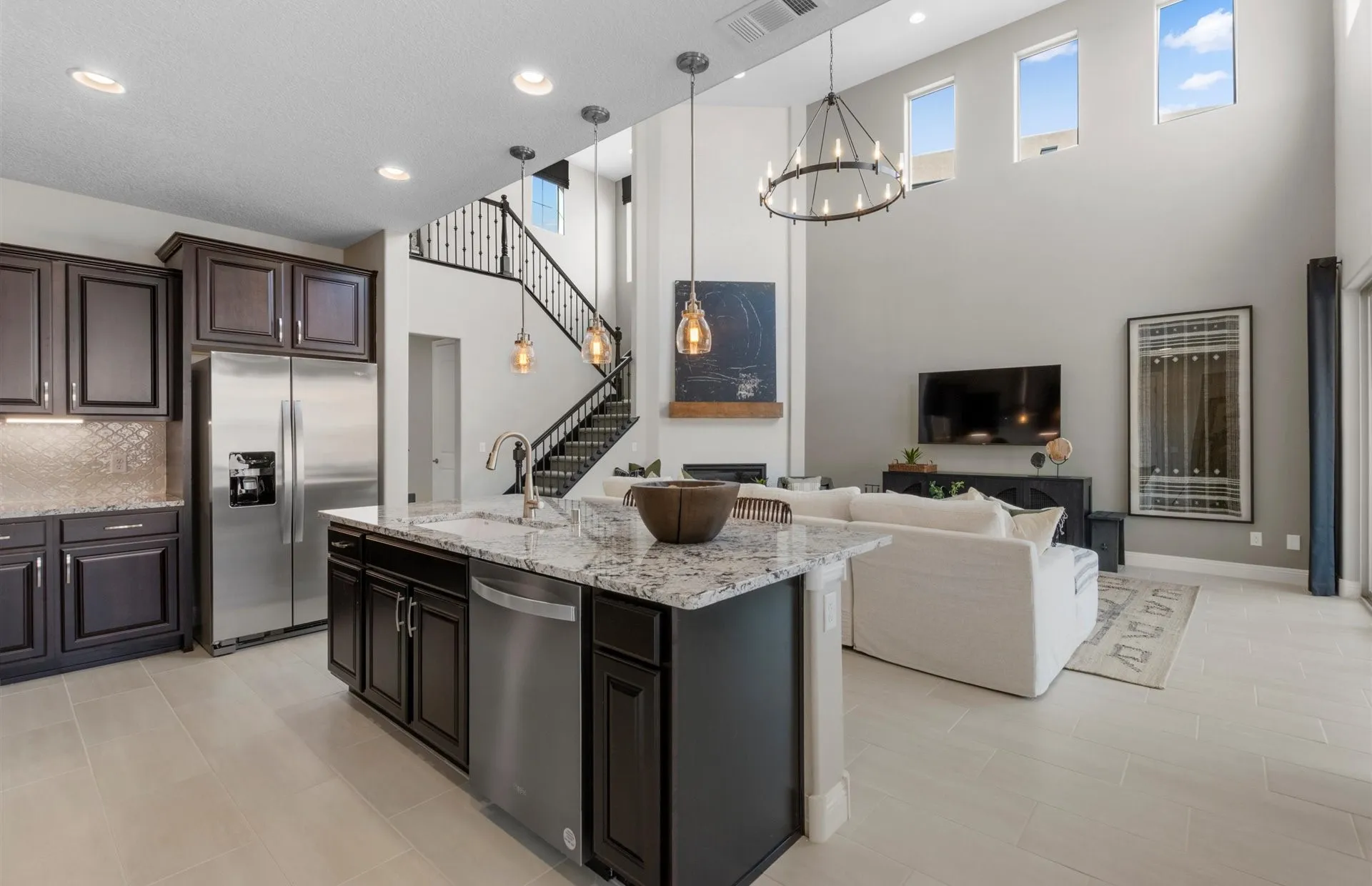 This dramatic Yucca floorplan ticks all the boxes. The home features a dramatic great room complete with nearly 18ft ceilings and a fireplace that is perfect for entertaining and no matter if you are cooking for a crowd or just cooking a quick Tuesday night dinner the chefās kitchen with built in appliances and a large island is designed to bring out the Julia Childs in anyone. This home backs to open space and has a huge, covered patio where you can BBQ or just have a morning cup of coffee while enjoying the open space. Upstairs has three bedrooms and two bathrooms so, kids or guests will never have to line up for the bathroom. The three-car tandem garage is so flexible. You can use the extra space for a car, workshop or perhaps storage for your familyās treasures. The Yucca offers 4 bedrooms, and 3.5 bathrooms jam packed with quality design and quality construction. This home is a must see.