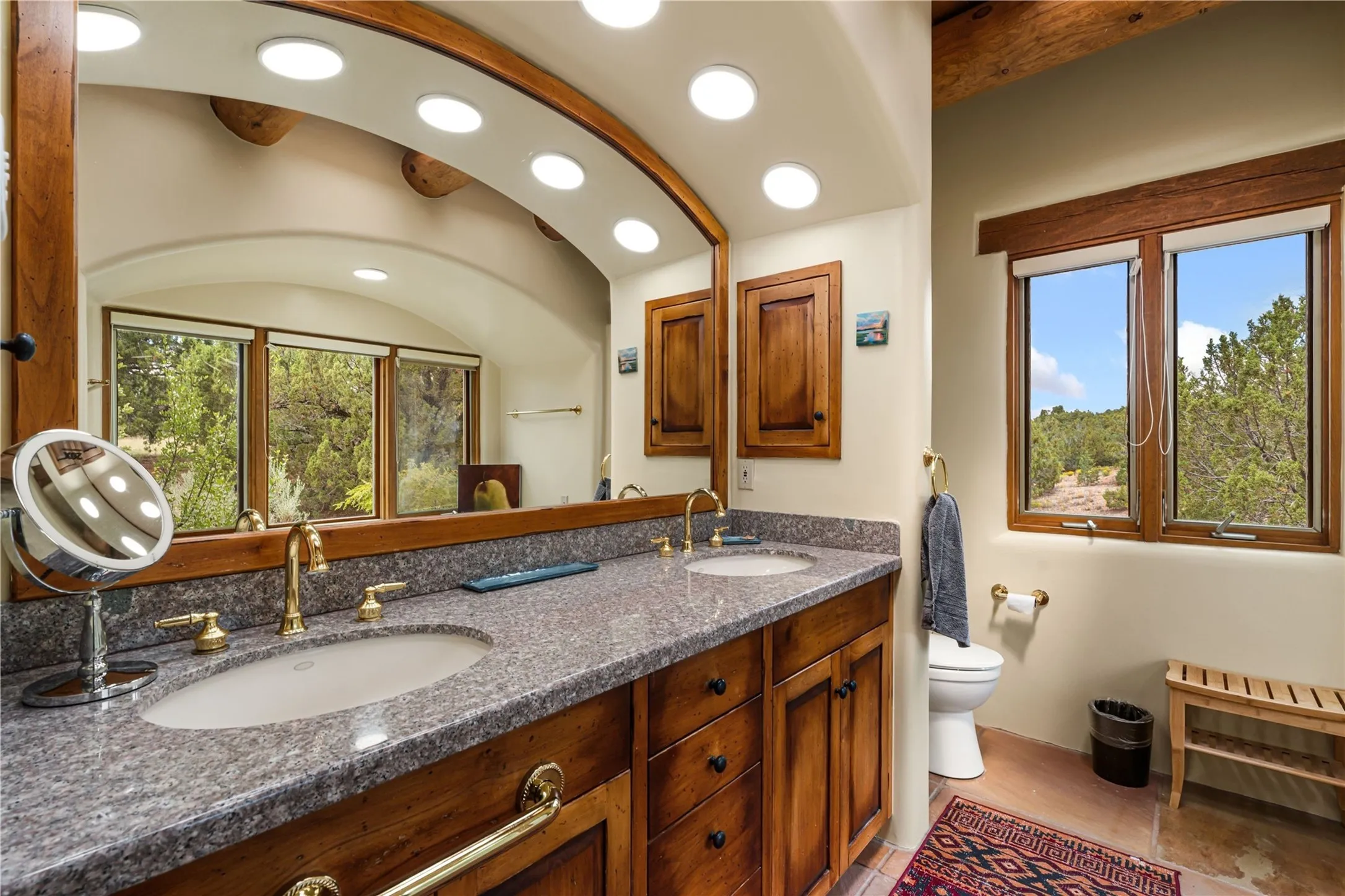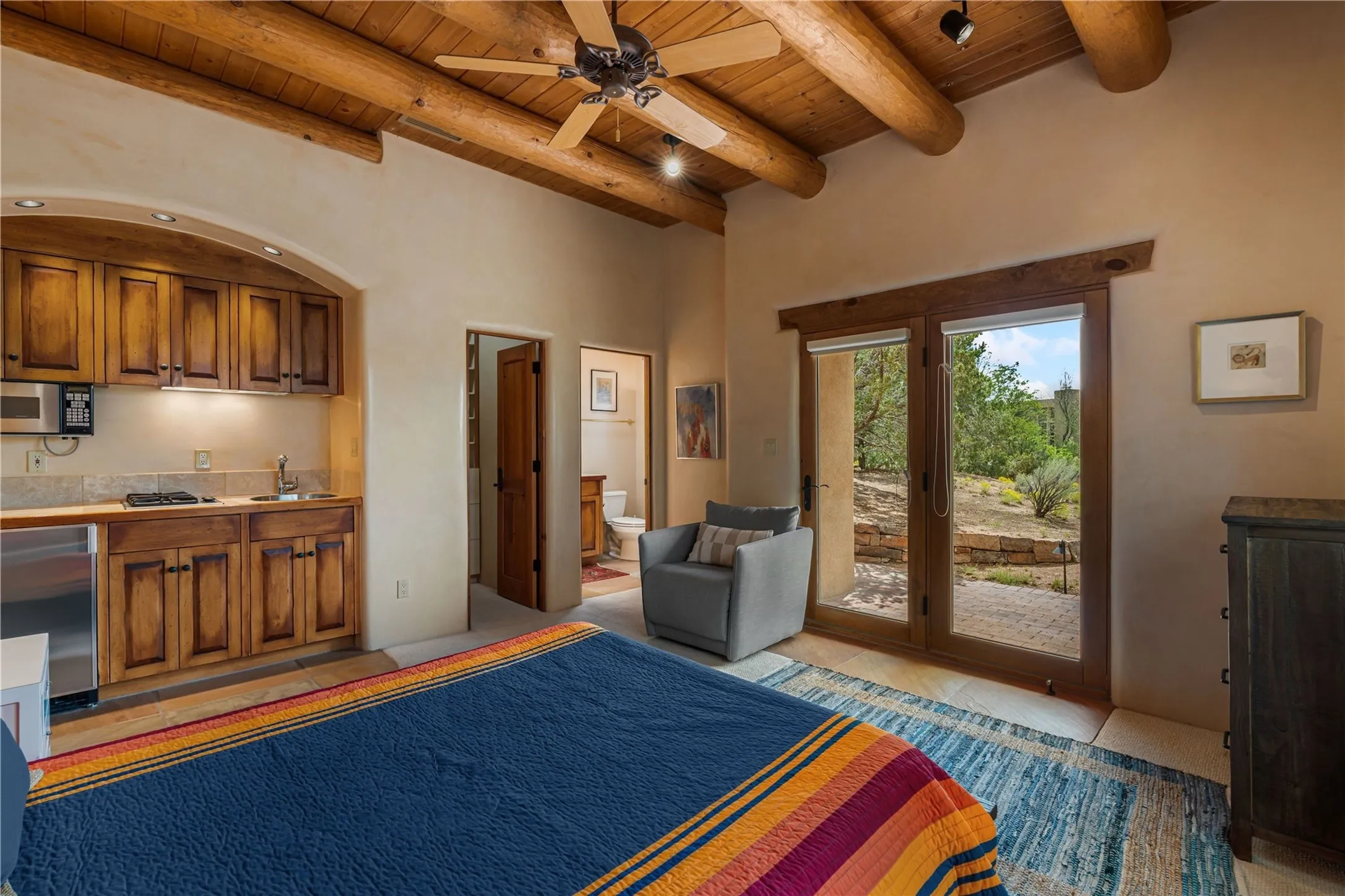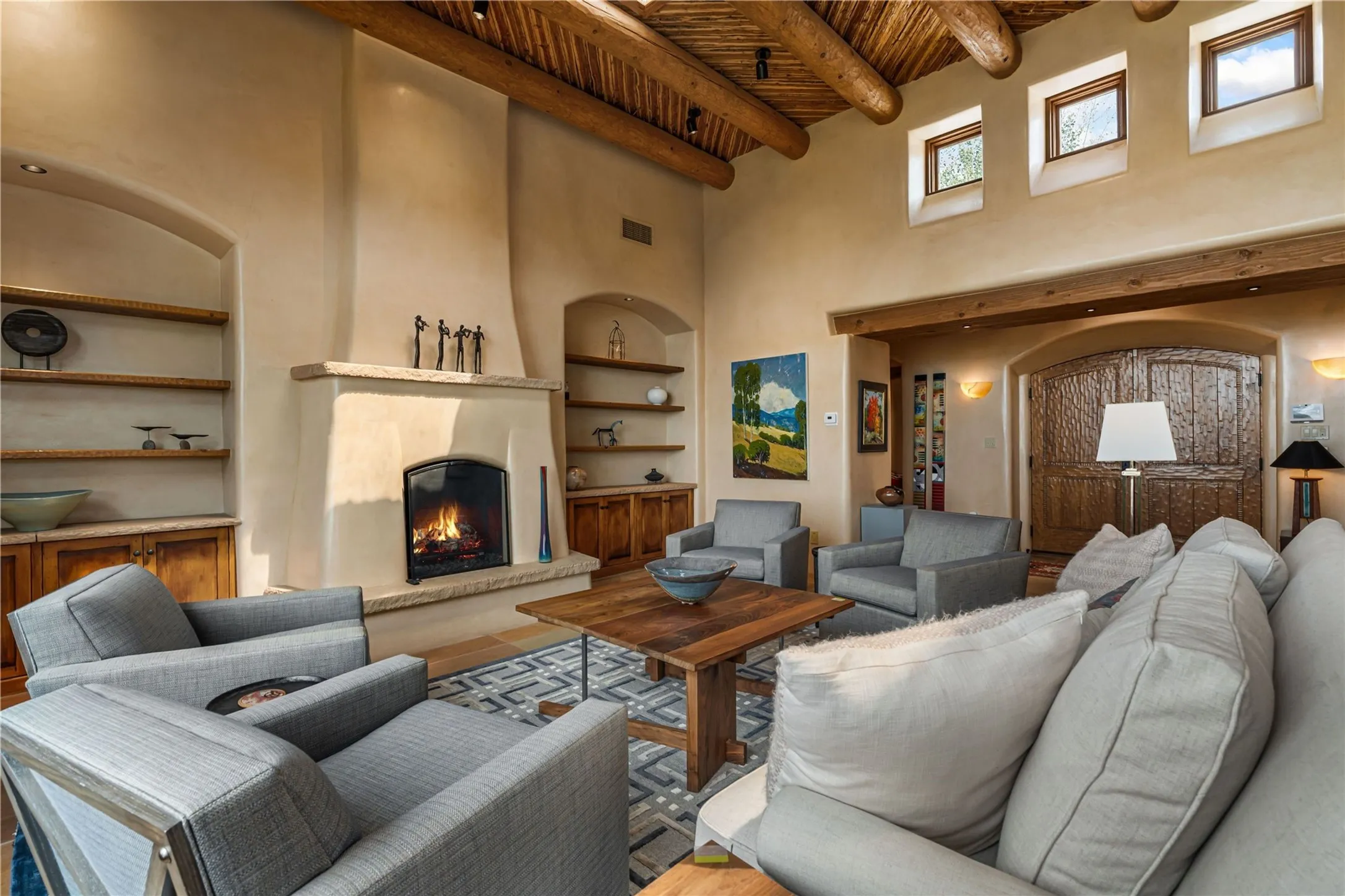 Tucked high up in Las Campanas on a generous 2.4-acre lot, this gorgeous Kim Dressel pueblo-style home is all about views, vibes, and space to breathe. From the moment you stroll through the professionally landscaped courtyard, youāll feel the magicāunobstructed vistas of the Jemez Mountains and sunsets thatāll make you stop mid-sentence just to stare. Inside, itās a custom masterpiece. Think flagstone floors, hand-hewn beams, and those classic vigas that give it that warm, earthy soul. The ceilings and walls? Absolutely stunning, with textures and treatments that make every room feel like a work of art. Natural light pours in through expansive skylights, bouncing off the hand-troweled plaster walls and stone floors, creating that signature New Mexican glow. The chefās kitchen is a showstopperātop-tier appliances, loads of granite counter space, and a butlerās pantry thatās ready for your next dinner party or midnight snack run. And if youāve got guests (or just want a little extra privacy), the attached casita is a sweet bonus: separate entrance, kitchenette, and all the cozy charm. Youāll find two primary suites plus two additional bedroom suitesāone even has its own mini kitchen and sitting room, perfect for long-term guests or multi-gen living. Whether youāre hosting a formal gathering or kicking back in the informal living spaces, this home flows effortlessly. Over 1,000 square feet of private outdoor space to soak in the views, sip your morning coffee, or toast the sunset. With its perch on one of the highest lots in the area, youāll enjoy peace, privacy, and those jaw-dropping Northwest views over untouched land. This isnāt just a houseāitās a lifestyle. Come see it, feel it, fall in love.