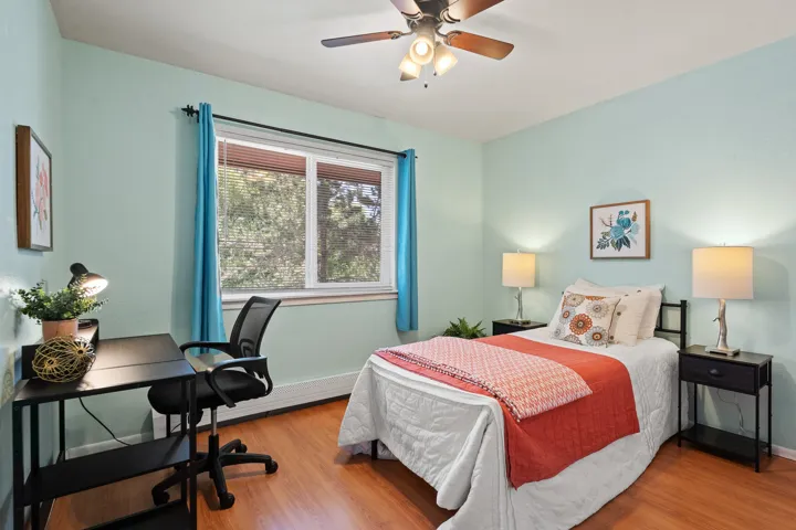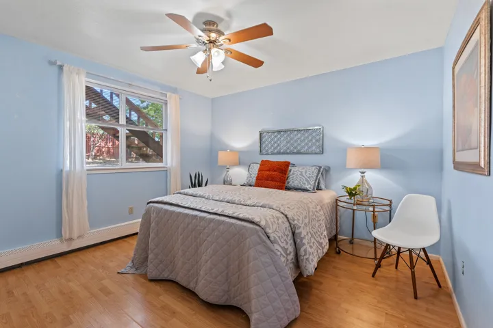 Welcome to this charming split-level home in North Mesa. A unique split-level design, offering a sense of character and style. Ascending the stairs to the main living area, you’ll be greeted by a spacious and inviting space. The large open living and dining room awaits, featuring a wall of windows that flood the space with natural light. Built-in bookshelves add a touch of elegance, while the brick gas fireplace with a tile hearth creates a cozy focal point, perfect for gatherings with family and friends. In the center of the home is the Kitchen with white painted cabinets adorned with chrome hardware, tile flooring, and a stylish tile backsplash complemented by quartz countertops. The kitchen also features a convenient bar seating peninsula, relocated/installed new electrical outlets, new refrigerator/icemaker wall outlet box with water shut off, and a new kitchen faucet. The family room is bathed in sunlight streaming through numerous windows. With access to the deck and A huge fenced backyard with mature trees and low-maintenance landscaping. On this level, you’ll also find two generously sized guest bedrooms and a full guest bath, complete with a single sink vanity and charming vintage tiling throughout. The primary en-suite with mountain views, features two closets and a bathroom with a single sink vanity and a walk-in shower. Venturing downstairs, you’ll discover a large bonus room with a newly added oversized closet with lighting and an interior wall with a door to close off space from the stairs and laundry room. There’s two more guest bedrooms and a guest bath, an open space perfect for an office and a spacious laundry room, equipped with a washer and dryer complete the lower level. Brand new Energy Star-rated Natural Gas Combination Boiler with tankless water heater, including complete system repipe, and Programmable Smart Thermostats. Installed 3 Ring Floodlight Cam Wired Plus security cameras with motion-activated 1080p HD video. View this home today!
