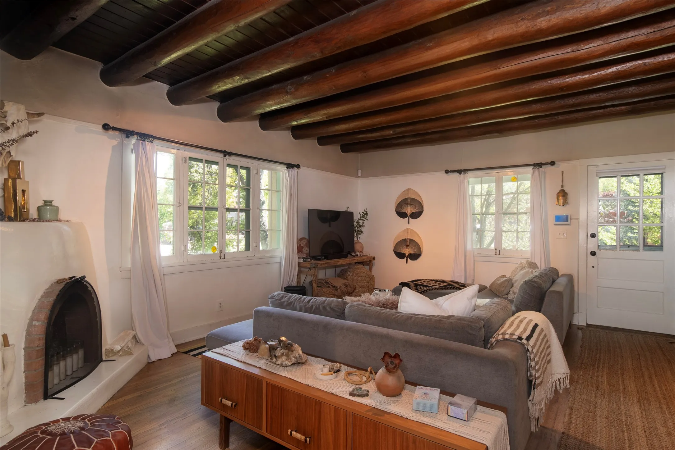 Charming two-bedroom, one-bath Eastside residence situated on 0.18-acres. This territorial-style adobe home is the perfect blend of its original charm and modern updates, offering 1,340 square feet of living space. A cozy fireplace in the living room gives a warm ambiance and dining room provides plenty of room for guests to gather or an extra space to work from home. A quaint kitchen with a pantry and a nearby laundry room adds convenience. The generous front and back yard provides ample space for entertaining guests. Additionally, the detached garage could possibly be used as extra storage or an opportunity for creatives to convert into a private studio space. Located on the corner of Acequia Madre and San Antonio within minutes from Canyon Road and the historic Plaza, allowing for easy access to the city’s rich cultural offerings. This is truly an Eastside gem in the most wonderful location!