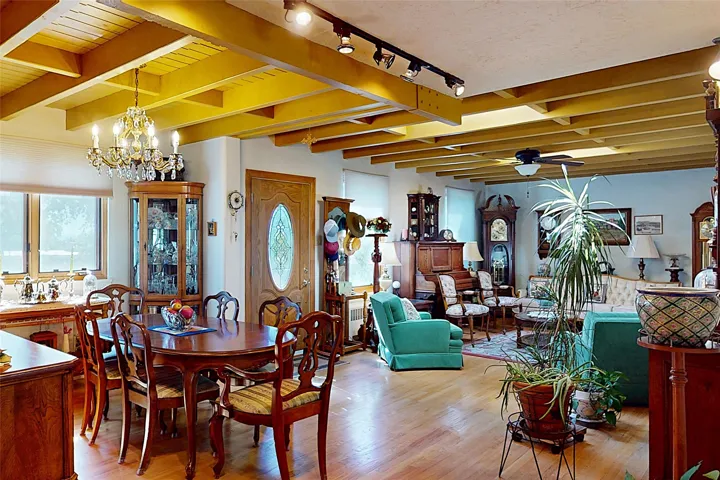 This 3-bedroom, 2-bath home in the sought-after Western Area blends historic character with thoughtful updates and generous living spaces. Inside, youāll enjoy two living areas, two dining areas, and abundant storage, with rich wood floors and wood ceilings adding warmth throughout. The spacious primary suite is privately located at the back of the home, offering passive cooling, natural light, a walk-in closet, and an adjoining flex room currently used as an office. Two additional bedrooms and a full bath are situated on the opposite side of the home for added privacy. The original carport was enclosed and now functions as a large laundry and storage room, with potential to serve as an office or game room. The front-facing kitchen provides mountain views across the Western Area, while the beautifully landscaped backyard creates a private retreat with mature fruit trees and flowering plantsāperfect for entertaining or relaxing. The oversized, insulated two-car garage boasts 8-foot doors, attic storage, and plenty of space for large vehicles plus a workbench. Additional upgrades include added insulation under the stucco, Pella windows, a convertible storm/screen door, tankless hot water heater, and gutter guards. Steeped in history as the former home of Harold Agnew, this property offers a unique blend of charm, comfort, and convenienceājust minutes from LANL, Los Alamos Medical Center, parks, and trails. Schedule your showing today!