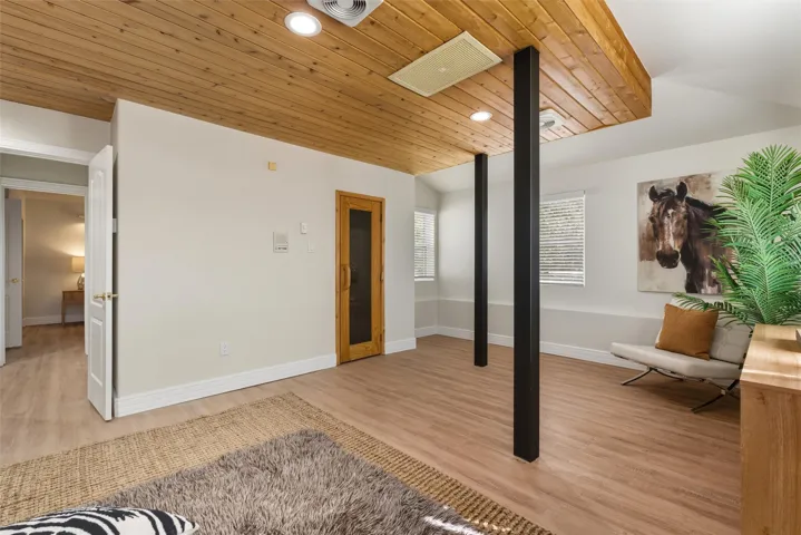 The home offers four bedrooms plus a bonus wellness room with sauna, creating a true retreat. A main-level en-suite bedroom provides convenience for guests or multi-generational living. Upstairs, youāll find an additional living space with French doors leading to a private deck, plus a dedicated media room paired with a wet bar ā ideal for movie nights, game-day gatherings, or quiet evenings with friends.