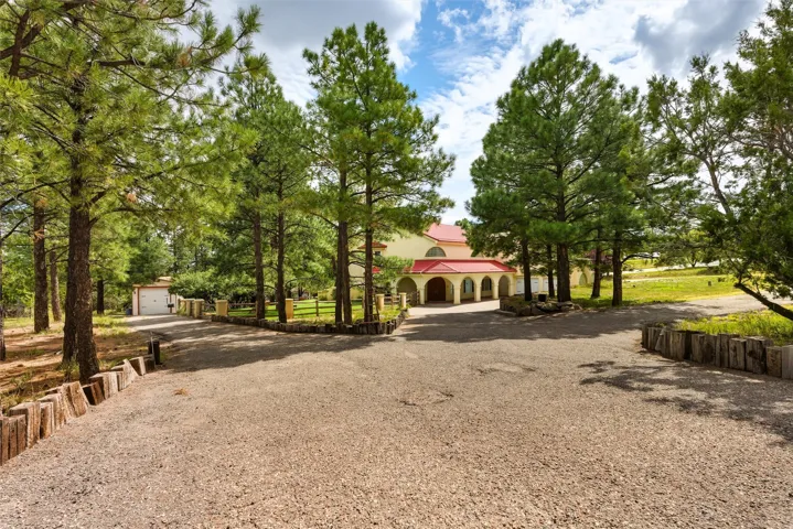 ⢠A paved loop driveway leading to two detached garages, including one outfitted for RV storage.