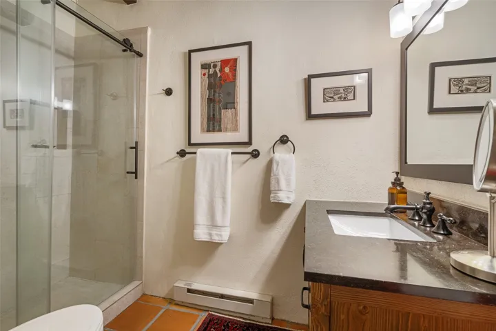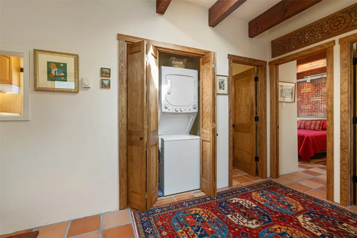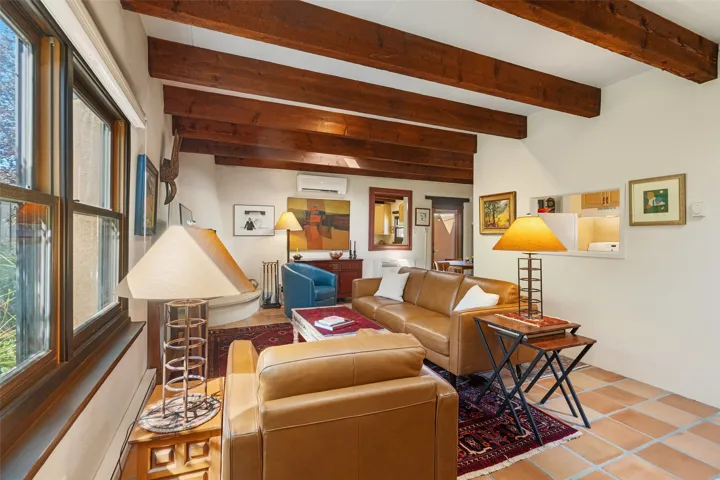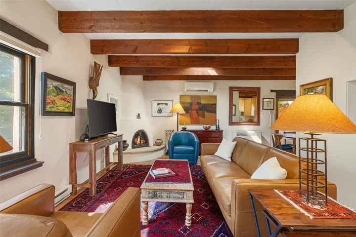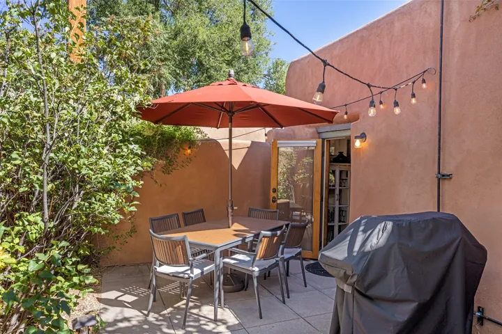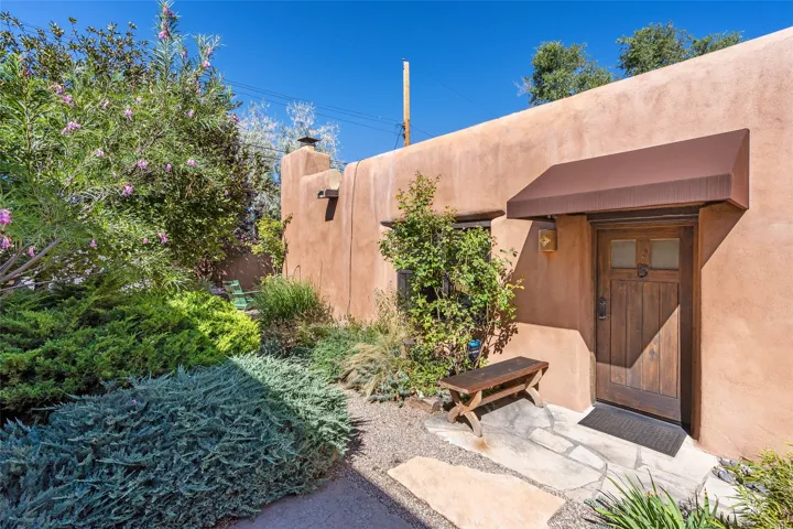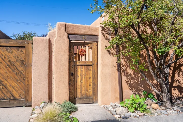 TUCKED AWAY IN THE CHARMING PLACITAS DE AGUA FRIA COMMUNITY, THIS DELIGHTFUL SINGLE LEVEL CONDO OFFERS THE PERFECT PIED-A-TERRE FOR LOCK-AND-LEAVE LIVING IN THE HEART OF SANTA FE. Just minutes from the historic Plaza, you’ll enjoy easy access to word-class dining, shopping, galleries, and cultural treasures. From the moment you enter through the private wooden gate, the home’s Santa Fe charm shines with Saltillo tile floors, wooden beams, and a cozy gas Kiva fireplace. Multiple windows and skylights fill the interiors with natural light, creating a warm and inviting ambiance. The thoughtfully designed floor plan includes 2 bedrooms, a recently updated bathroom, and a compact yet well-equipped kitchen that maximizes efficiency without compromising comfort. The true highlight is the lush courtyard oasis, perfect for entertaining or unwinding. Rose bushes, clumping bamboo, potted juniper trees, fragrant lavender, and ornamental grasses create a serene retreat ideal for evenings by the fire, dining with friends, or simply enjoying a quiet morning with coffee. Pet-friendly and easy to maintain, this home offers both personality and practicality. A true community in the city. Pride of ownership is combined here with privacy and proximity to so many amenities. Whether you’re seeking a full-time residence or a getaway, this condo blends Santa Fe style, comfort, and location into a rare opportunity in the “City Different”.