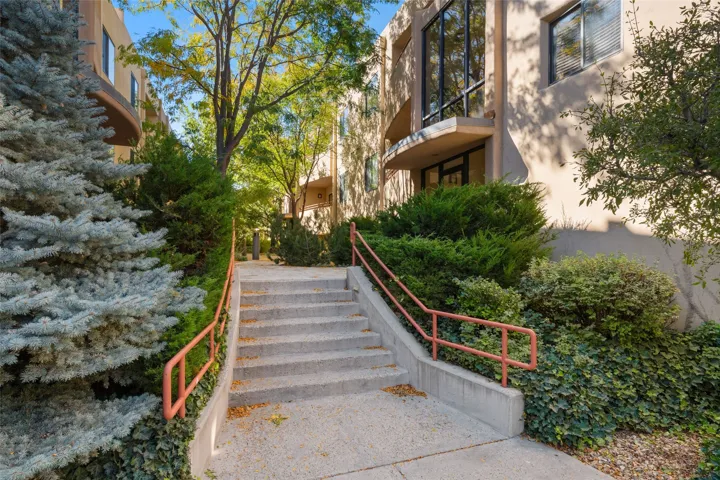 Classic urban oasis surrounded by mature trees, La Remuda Condominium is located on the edge of Midtown where you can walk to relaxed eateries featuring global cuisine and local flair. Not far from theĀ Railyard, quick stops to Trader Joe’s and Whole Foods. The central location is convenientĀ for a fast commute to Los Alamos or I-25. This bright and airy condo features an open floor plan with sliding glass doors at each end of the living/dining rooms with access to the 2 balconies. The kitchen is well designed, with exceptional storage, high quality stainless steel appliances, butcher block on one side of the counter and Italian tile on the other. Other features include: central air conditioning and heating installed in 2023, 9 foot ceilings, beautiful bamboo floors, custom drapes, custom dividedĀ closets, custom cabinets in living room and office, private storage: 5.5′ x 17′, Asko washer and dryer, whole house water filtration system installed in 2025, 2 under cover designated parking spots with direct entrance to the secure building, upper floor unit with no interior steps, new roof in 2024 and refreshed stucco in 2025. One of the two only units at La Remuda with 3 bedrooms. Seller will credit one year of special assessment dues with an acceptable offer. This condo is on the second floor and stairs are required to access it.